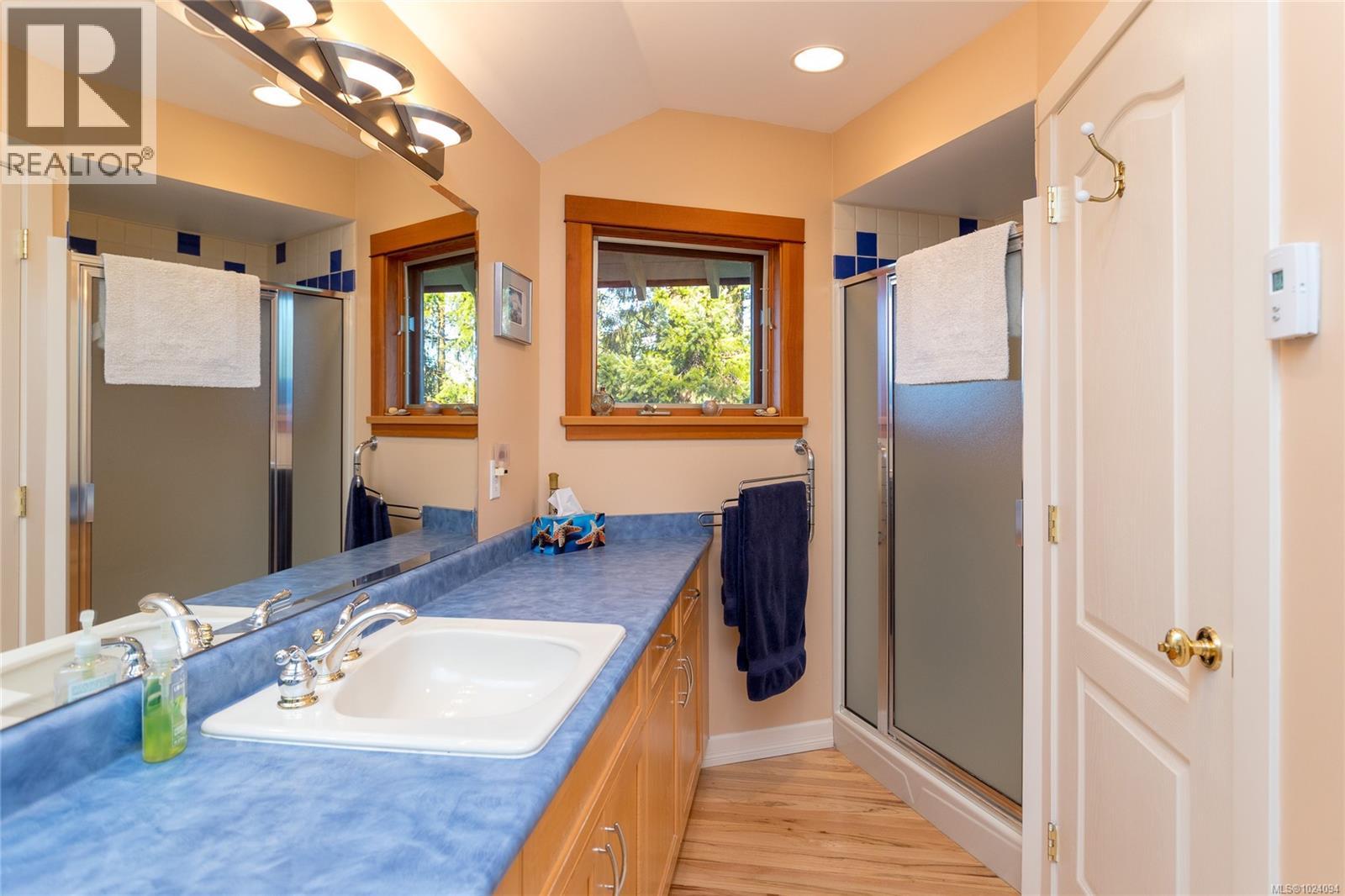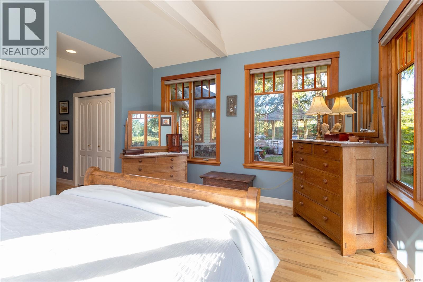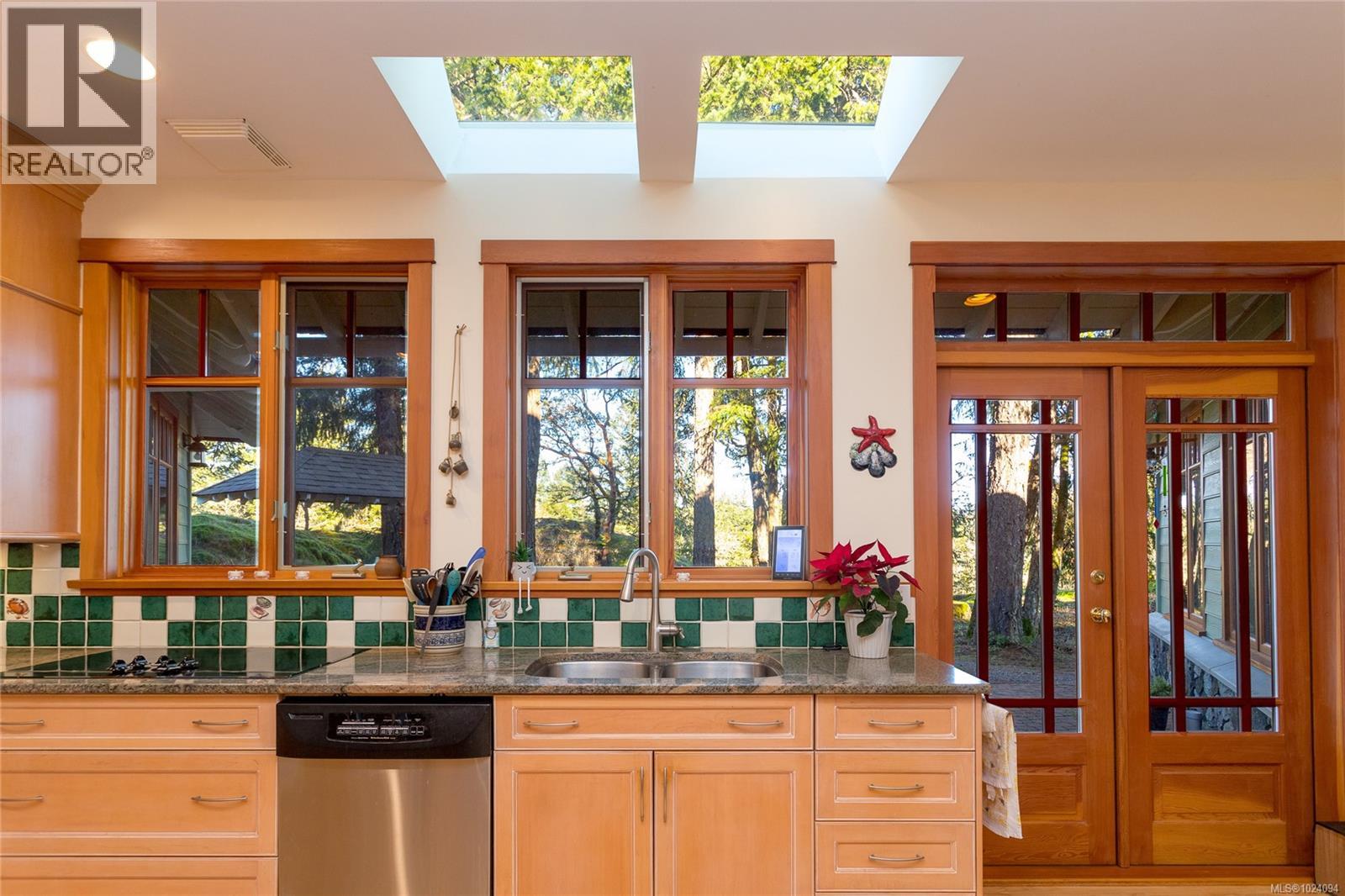 This 4 bed, 3 bath custom-built home (plus a 1 bedroom suite!) is a true showcase of craftsmanship & thoughtful design with exceptional attention to detail throughout. Set on just under 10 acres, the property offers complete privacy while remaining only minutes from restaurants, stores, bus routes, & Camosun College. The home is filled with natural light, thanks to the many wood-framed windows thoughtfully positioned so each room enjoys sunlight at different times of the day. Inside, you’ll find two inviting sitting areas, one anchored by a beautiful stone feature fireplace. A curved staircase adds architectural interest, while stunning red oak flooring extends across the main level & upstairs bedrooms. The main-level primary suite offers comfort & convenience, featuring an updated shower, electric blinds & three closets for excellent storage. Hydronic heating runs throughout the home, providing consistent & efficient warmth. The custom kitchen is both elegant and functional, highlighted by curved cabinetry that flows into a well-designed workspace with abundant storage. From here, the home opens effortlessly to an interlocking brick patio, ideal for indoor-outdoor living. The spacious dining room also connects directly to outdoor space, perfect for entertaining. Every window offers a view of unparalleled privacy and natural surroundings. Outside, the grounds are lush & serene, featuring mature greenery, a fenced garden area, a glass greenhouse, a built-in BBQ & a hot tub. Drip-line irrigation supports the beautifully maintained landscape. Upstairs are three generously sized bedrooms & a third bathroom. Additional highlights include vaulted ceilings, a generator system & a double garage with a dedicated workshop. Above the garage is a lovely one-bedroom suite with a separate entrance, its own laundry & a private deck, ideal for guests, family, or additional income. A rare offering that combines privacy, craftsmanship & convenience in a truly special setting. (30350043)