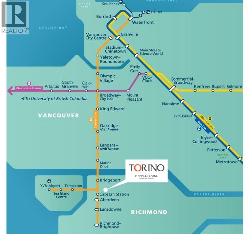 Compact 3 Bed + 2 Bath home at Torino West. Bright Northwest corner with park view. Nice efficient floorplan with 2 balconies and lots of natural light. Central heating/cooling, full-size appliances, high ceilings & laminate flooring in all living areas & bedrooms. Convenient location with services, groceries, and restaurants all within walking distance and only one block from the Capstan Canada Line Station. (32412939)