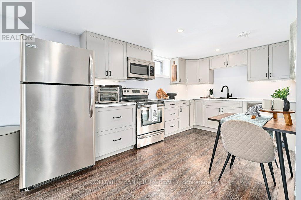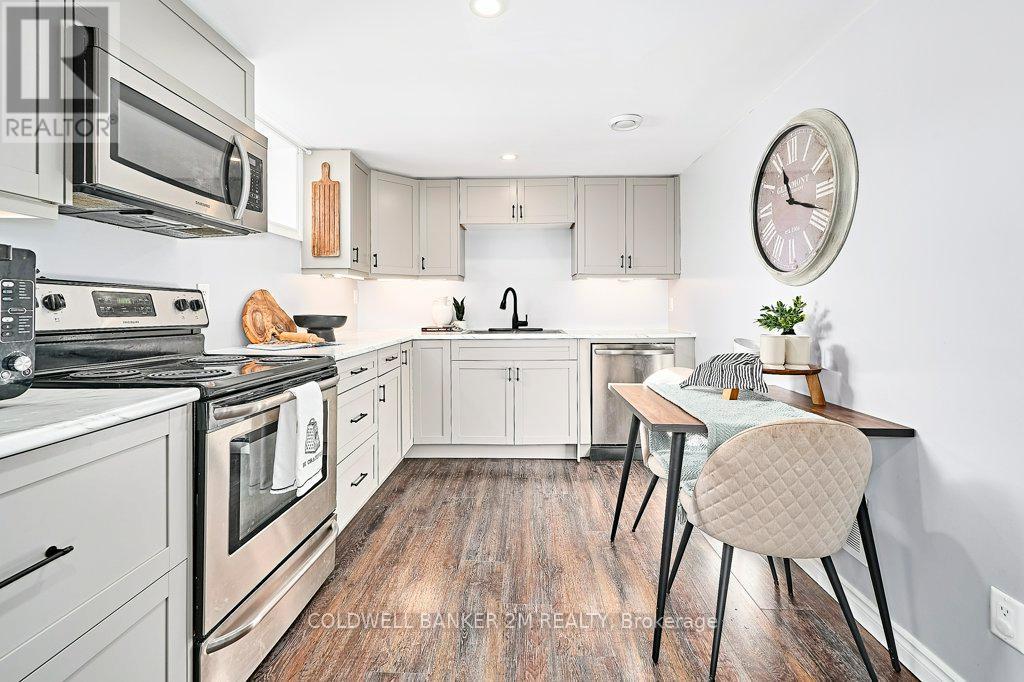 Charming 3-Bedroom Brick Bungalow with In-Law Suite. This beautifully updated brick bungalow showcases modern renovations and quality finishes throughout, including a new roof completed in 2024. The spacious main level offers a bright, open-concept living and dining area, a functional galley kitchen, a full bath, and three well-appointed bedrooms. The upstairs bathroom has been recently renovated. The fully finished lower level features large windows, an open-concept layout, and a complete in-law suite with a full kitchen equipped with stainless steel appliances, a generous living area with fireplace, and a bedroom with a pocket door and walk-in closet. Each unit enjoys a separate side entrance, with shared laundry located in a common basement area. Outside, enjoy a spacious, private, fully fenced backyard. The front bay window on the main level overlooks an open field and Lake Vista Park. Seller Does Not Warrant Retrofit Status of the basement. (42087544)