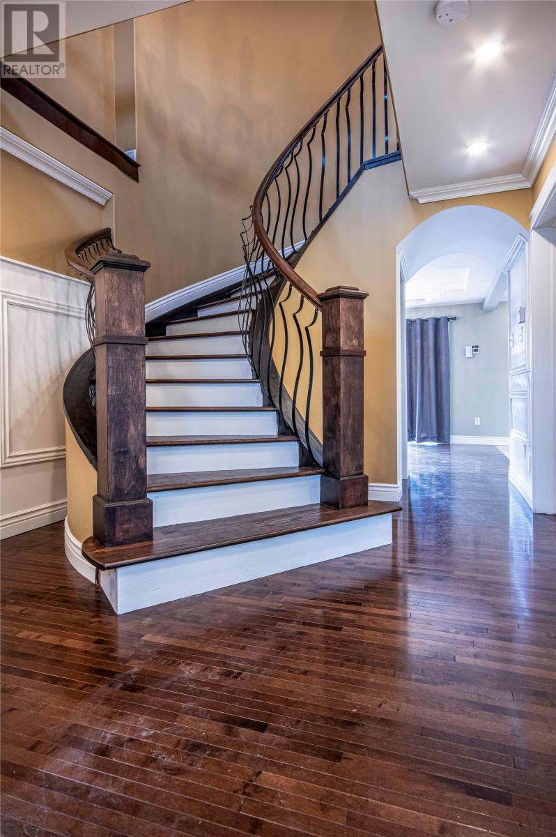 Beautiful executive home on a cul-de-sac on a mature lot with greenbelt. Home features 2 in house garages on the main floor and one in the basement at rear. Exquisite 9ft. trayed ceilings throughout and custom millwork crown moldings. Custom circular hardwood staircase. Chef's kitchen features quartz counters on the island and real copper fixtures and hood vent plus a large butler's pantry. Main level features a formal living room/office and a family room plus dining room. Upstairs level 2 features three large bedrooms each with its own private bath room and large closets. The master suite features vaulted and designed trays in the ceilings and a four 4-piece master bath with a jacuzzi and a private deck. Upstairs has a laundry complete with cabinetry and appliances. Dark stain maple hardwood throughout plus a central vacuum and a built-in stereo system are just a few of the many features this home has to offer. Semi completed basement offers a rough in for a one bedroom in-law apartment with a private entrance and rear parking. Home comes with a generator panel for quick connection and a huge private deck in the rear. Completing this property is a fenced rear yard with a 10'x20' shed. (30621598)