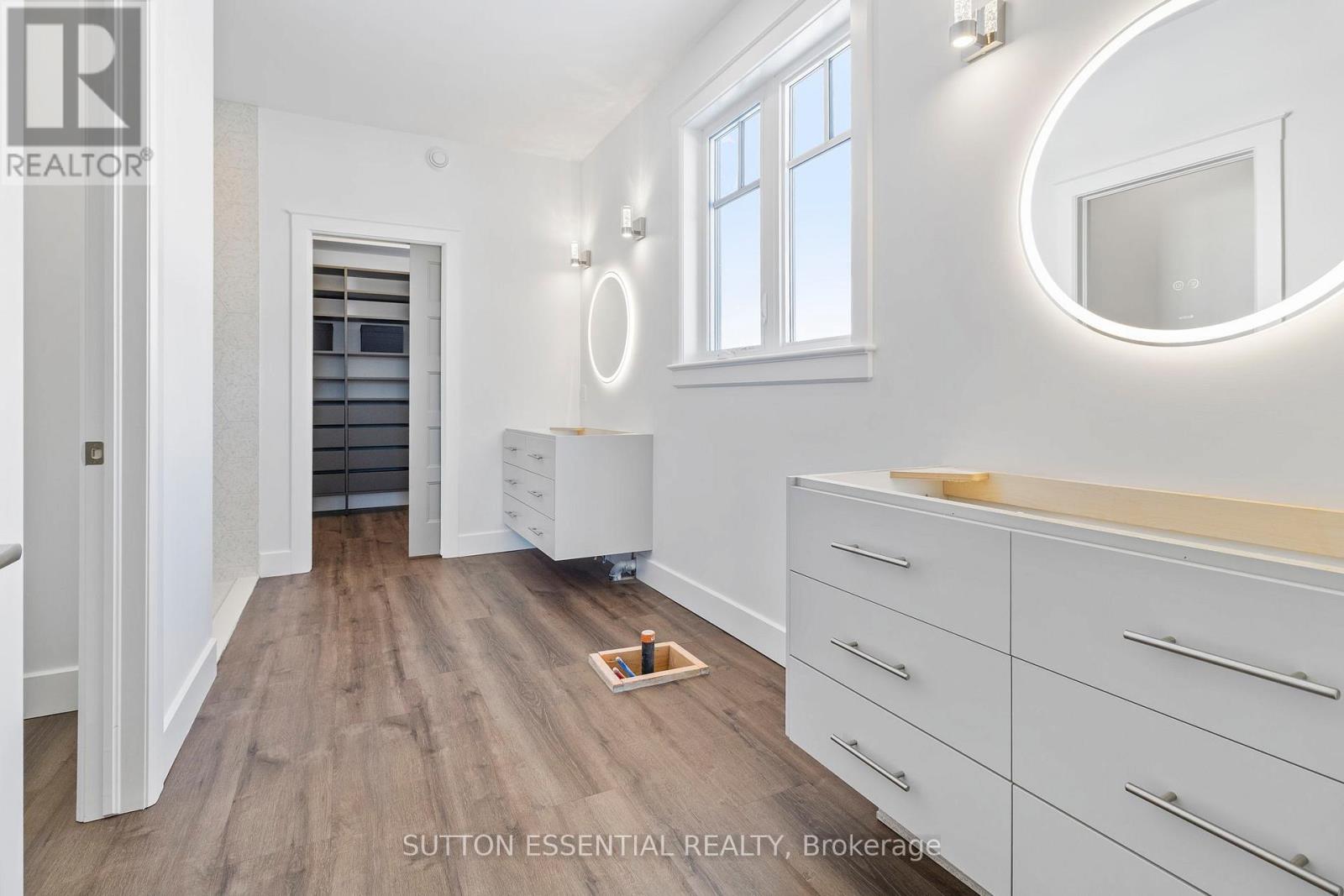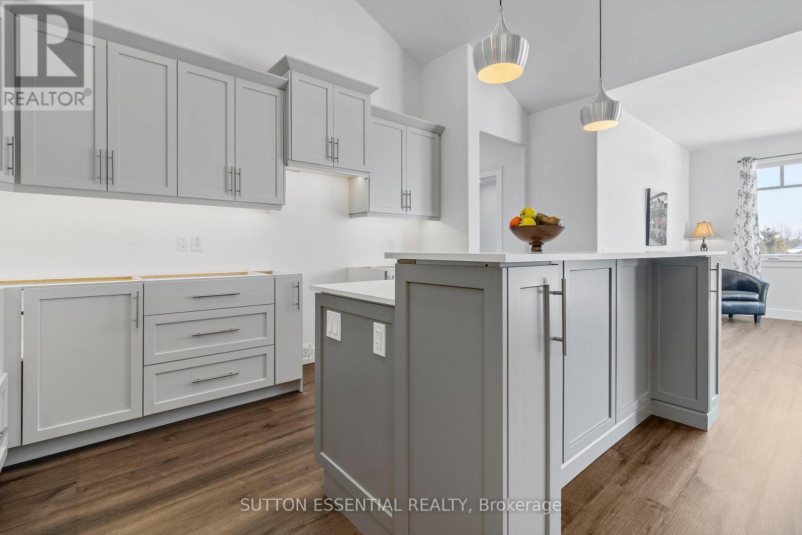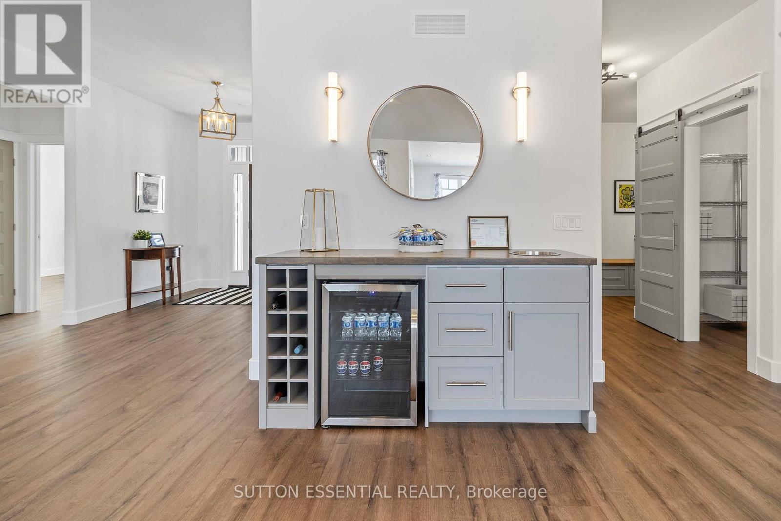 Nearing Completion! Brand-new, custom-built bungalow by Nostalgic Homes, offering refined country living with over $60,000 in value-added standard features. This thoughtfully designed 3-bedroom + office, single-storey home provides over 1,920 sf of low-maintenance, high-comfort living on a peaceful one-acre cul-de-sac lot, backed by a full Tarion Warranty. This basement-free, low-threshold home is built on a fully insulated, heated slab with radiant in-floor heating beneath luxury vinyl flooring and central air conditioning for year-round comfort. Enjoy worry-free living with no sump pumps, sewage pumps, or damp basements. The exterior showcases timeless curb appeal with dark grey board-and-batten siding, black vinyl windows, a fibreglass Craftsman door, stained custom entry trellis, and two covered porches. Inside, soaring vaulted ceilings, quartz countertops throughout, and an open-concept layout elevate the living space. The kitchen is designed for both function and style, featuring a large island and custom cabinetry, ideal for everyday living and entertaining. The vaulted great room offers a cozy fireplace and a custom wet bar, perfect for hosting happy hour or relaxing with guests. The primary suite is a private rear of the home retreat, highlighted by a tray ceiling and decorative feature wall. The spa-inspired ensuite includes dual floating vanities, LED mirrors, soaker tub, a custom low-threshold tile shower, and a private water closet. Additional features include a covered rear porch and an oversized 2.5-car attached garage that is fully insulated, drywalled and painted, providing excellent storage and convenience. Located just minutes from Brockville and the 1000 Islands, with nearby parkland, athletic fields, and a quaint new general store and café. This exceptional home offers the perfect blend of modern luxury, thoughtful craftsmanship, and serene country living. Dare to compare this exceptional level of quality, design, and value. (42088386)