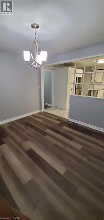 Unfurnished dining area featuring a chandelier and light wood-style floors