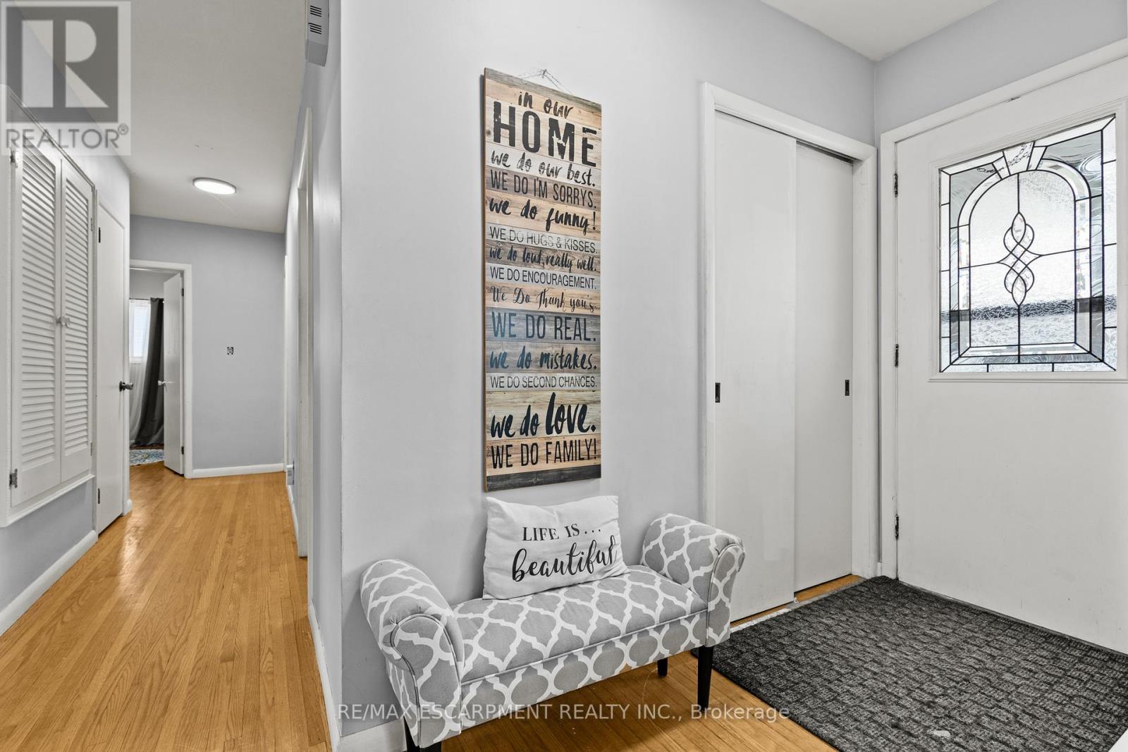 Rare bungalow opportunity in one of Grimsby's most desirable and quiet neighbourhoods, just steps from the hospital and close to all amenities. This solid 3-bedroom, 1.5-bath home features an attractive stone and brick exterior and sits on an exceptional 83 x 150 ft lot. The function alone-floor layout is ideal for young families or seniors, with the main floor showcasing beautiful hardwood floors and a cozy wood-burning fireplace. The partially finished lower level offers a spacious rec room, wet bar, gas fireplace, and separate entrance, providing excellent in-law or income potential. Enjoy outdoor living with a deck off the kitchen overlooking the expansive backyard. With just a few cosmetic updates, this home presents incredible value at an affordable price. (42088419)