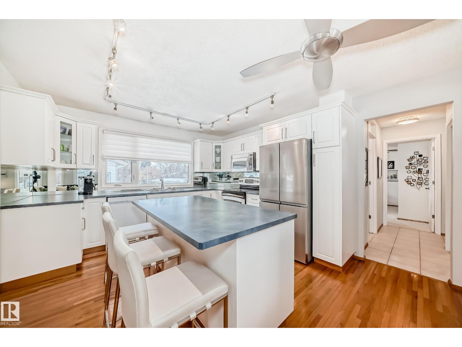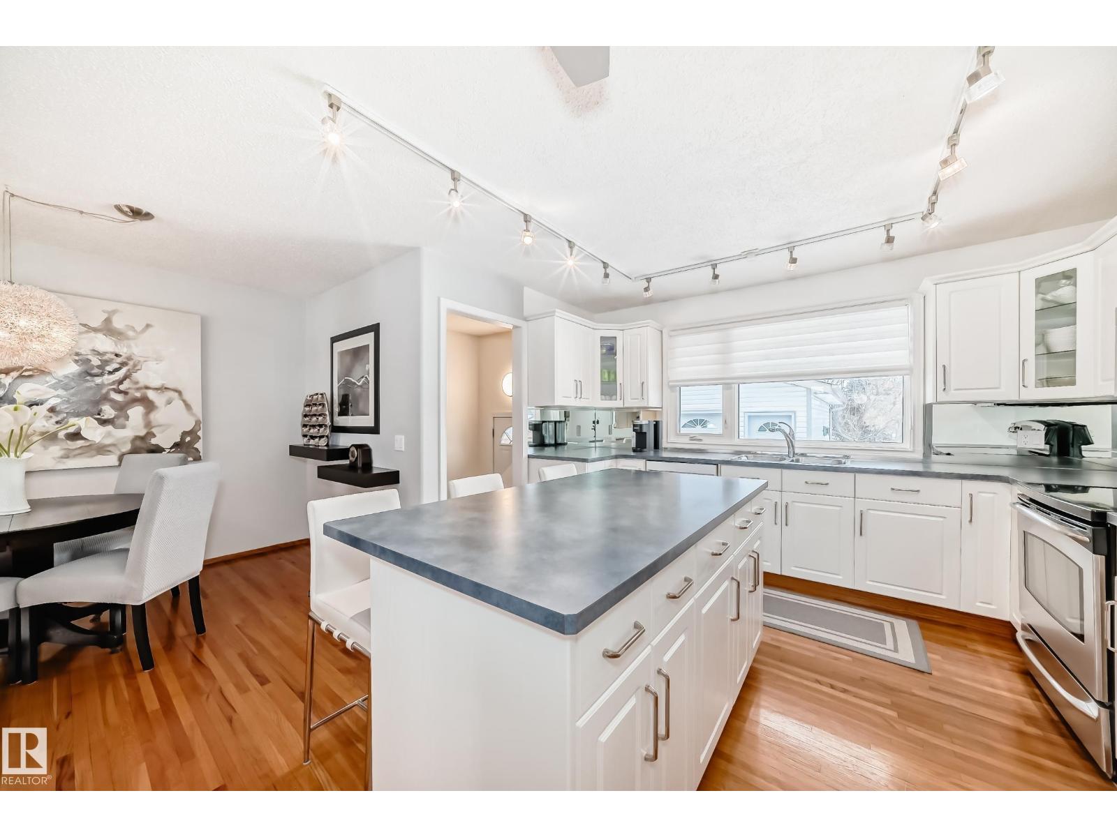 Beautifully maintained bungalow showcasing pride of ownership throughout. This inviting home features hardwood floors and a bright, open-concept layout that seamlessly connects the living room and kitchen, creating space for both everyday living and entertaining. The kitchen offers a huge island, ample cabinetry and workspace, while the adjoining living area is filled with natural light, creating a warm and welcoming atmosphere. The home features generously sized bedrooms which could be used as a home office. The large finished basement allows the perfect space for a rec room, media area, gym, or entertaining space. Thoughtful updates include improved attic insulation, siding, shingles, windows, and covered eaves which help enhance comfort and energy efficiency. The manicured back yard is complete with an over-sized heated garage, new fence, storage shed, shelter for the BBQ and paving stones to connect it together. Close to amenities, schools and walking trails, this home has it has it all. (33799892)