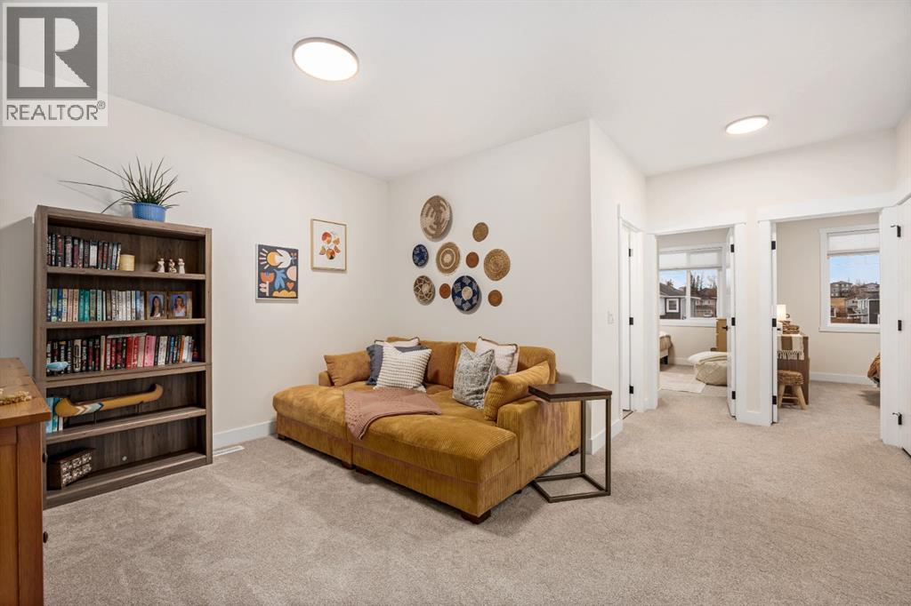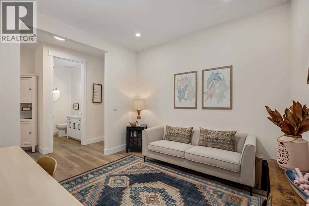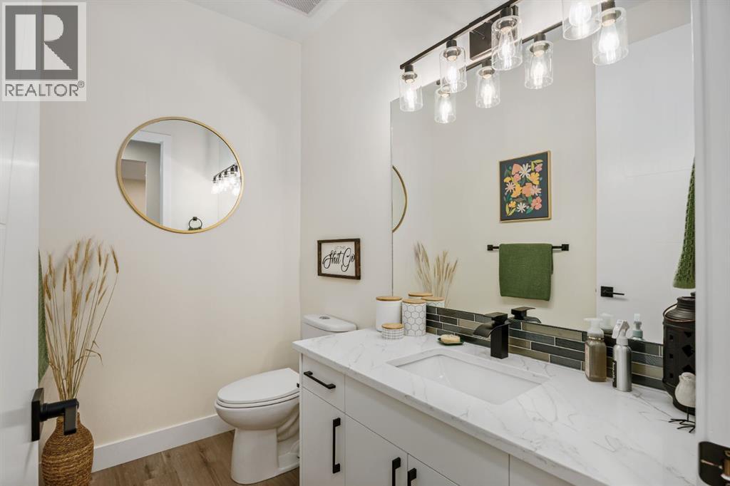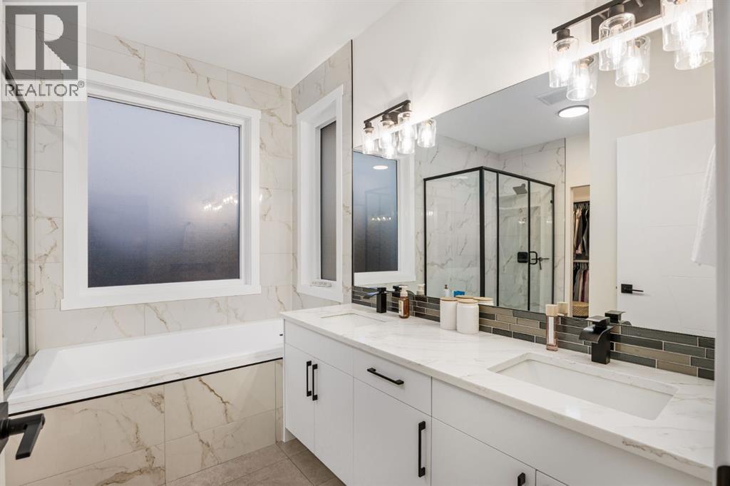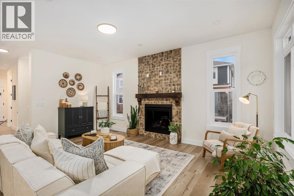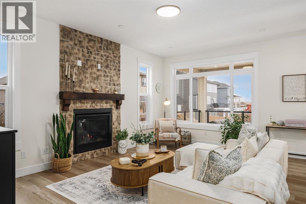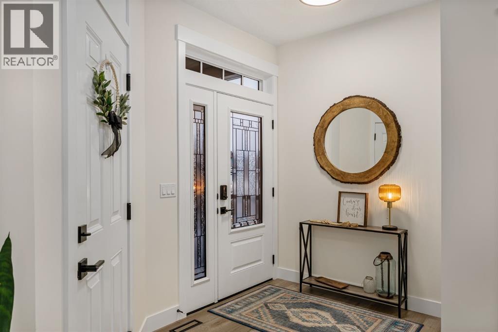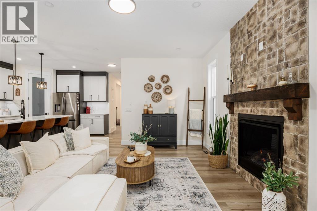 Discover refined living in this impeccably crafted 2024 custom-built two-storey walkout by Shayman Homes, located in the sought-after lake community of Lakewood in Strathmore. Backing onto a lush green space and walking path with no neighbours behind, this east-facing home offers nearly 3,000 sq.ft. of beautifully designed living space with luxury finishes throughout.The striking exterior with stone accents and extended driveway welcomes you into a bright foyer filled with natural light from oversized windows. The main floor features 9’ ceilings and luxury laminate flooring, flowing through a thoughtfully designed layout. A private main-floor office with an 8’ doorway provides the perfect workspace or flex room.The chef’s kitchen is the heart of the home, showcasing an expansive quartz island, soft-close white cabinetry with black hardware, undermount sink, and premium stainless steel appliance package including a gas range, chimney-style hood fan, built-in oversized microwave, dishwasher, and refrigerator with water hookup. A spacious pantry with built-in shelving and automatic lighting adds everyday convenience.The dining and living areas are flooded with natural light and anchored by a stunning floor-to-ceiling stone gas fireplace with custom mantel. Step outside to the covered upper deck spanning the width of the home, complete with recessed lighting, custom glass railings, and a gas line rough-in—ideal for entertaining while overlooking the landscaped yard and park.Upstairs features a vaulted ceiling opening into a massive bonus room, upper laundry with tile flooring and quartz counters, and three generously sized bedrooms. The primary retreat offers a spa-inspired ensuite with dual quartz vanity, 5’ soaker tub, floor-to-ceiling tiled shower, a private toilet room, and a walk-in closet with custom built-ins. A stylish 4-piece bathroom completes the level.The fully developed walkout basement extends the living space with 9’ ceilings, luxury laminate floorin g, a spacious family room, and a custom 10’ wet bar with quartz counters, tile backsplash, and built-in cabinetry. Two large bedrooms, a 4-piece bathroom, mechanical room, and under-stair storage complete the lower level.Outside, enjoy a covered concrete patio, fully landscaped yard, and unobstructed views of the greenspace and playground. Located minutes from schools, amenities, recreation, and golf, with Calgary just 30 minutes away, Lakewood offers a lifestyle unlike any other. Dont miss your opportunity to own this stunning family home. Book your private showing today. (31610989)