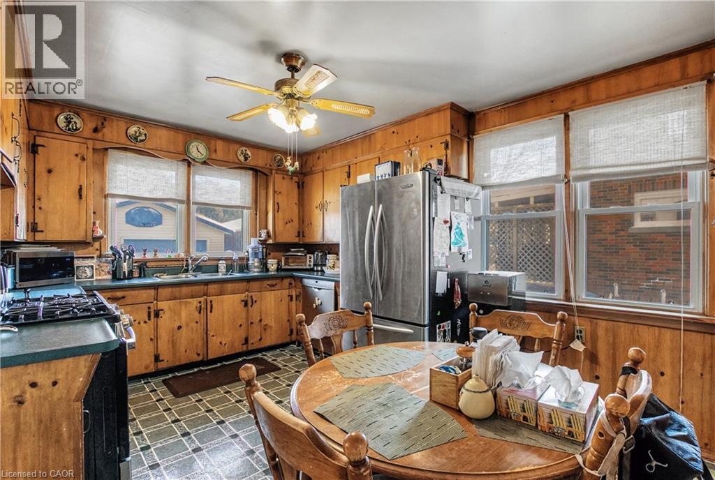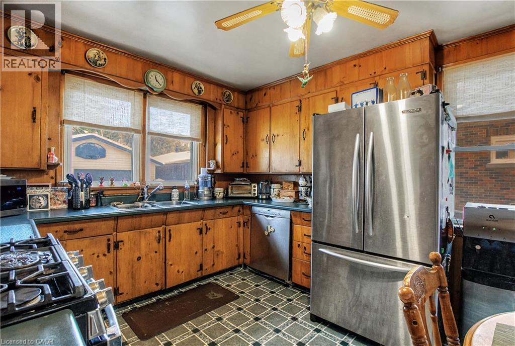 Welcome to this charming two-story home offering a cozy and comforting living space. This home is walking distance to parks, schools and downtown Galt area. The main level features a bright open-concept living and dining area with sliding doors that lead out to a stamped concrete patio, perfect for everyday living, relaxing or hosting guests. The kitchen is well equipped with ample storage, including a pantry and features a gas range (approx. 2 years old), stainless steel refrigerator and a Bosch dishwasher. Upstairs you will find three well-sized bedrooms filled with natural light and good sized closets, and a 3-piece bathroom that was renovated in 2024. The finished basement adds excellent value and flexibility for an in law suite or income potential. It is complete with a second kitchen, good sized bedroom, 3-piece bathroom and a generous sized recreation room with durable laminate flooring. This area is perfect for extended family, guests or additional living space. Oversized garage 21ft. X 21ft. with 2 storage sections. This home has had some major updates in the last two years (2024) which include: high end laminate flooring in the basement, a new driveway, a cement stamped walkway out front, a 21X19 cement stamped pad at the back, egress windows and new window wells all around, new bathroom upstairs, new drains from the main kitchen sink to the main stack in the basement. New drain from the upstairs bathroom to the main floor bathroom. From the main drain (stack) pipe there is a new drain pipe all the way out to the main flush out. The foundation was re-built 9 ft down to the footings with cement re-bar and the basement wrapped in Blueskin WP200 and sealed from the back right corner to the front left corner. With it's warm character, functional layout and income potential this home is ready to welcome its next owner. (70128489)