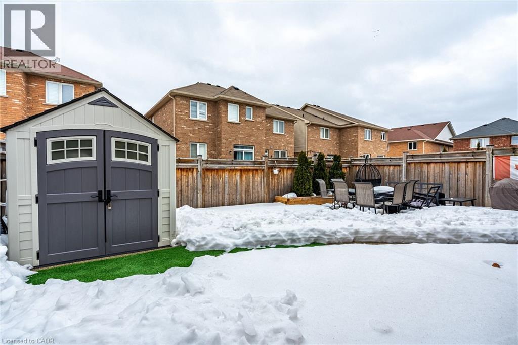 Welcome to this beautifully maintained 4-bedroom, 2.5-bath detached home in the sought-after Beaty neighbourhood in family-friendly Milton! A large grand foyer complete with beautiful updated staircase and panelled wall greets you upon entry. The main floor features a large dining room perfect for entertaining and family gatherings and an inviting family room with gas fireplace open to the kitchen with stainless steel appliances, granite countertops, ample storage, and a separate eat-in area. Upstairs you will find 4 spacious bedrooms including a large primary bedroom with walk in closet and 5 pc ensuite bathroom. This home features gorgeous hardwood floors on the main floor, and has been freshly painted throughout. Walk out to the fully landscaped backyard offering low-maintenance turf with golf putting green, a spacious exposed aggregate patio and a shed with full electrical (60 amp service) — ideal for a workshop, studio, or extra storage. The basement includes an extra large cold room and a 3-piece bathroom rough-in offering potential for future living space. Move-in ready on a quiet crescent and ideally located close to schools, parks, shopping, and highways, this home is the perfect blend of comfort and convenience! (70131022)