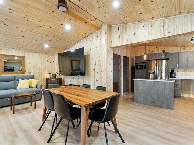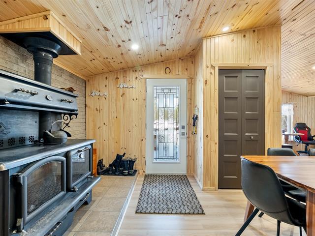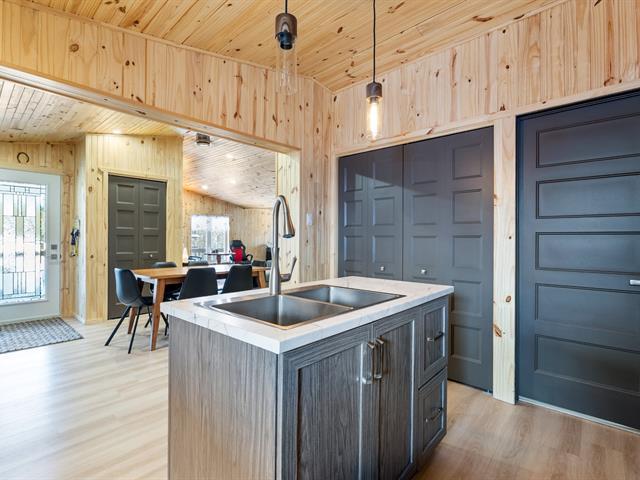 Bungalow reconstruit à neuf, Lac Etchemin, bord de la rivière Etchemin, accès direct à la rivière, la maison n'est pas dans la zone inondable, reconstruite complètement à neuf en 2025 suite à un incendie, une chambre à coucher avec grande verrière avec sept portes patio, deux garages dont 1 chauffé, un carport, cuisinière au bois, poêle à bois, sans voisin arrière, un cadre idyllique très rare sur le marché, rue privée tranquille. Voir détails de la fiche. (41630173)