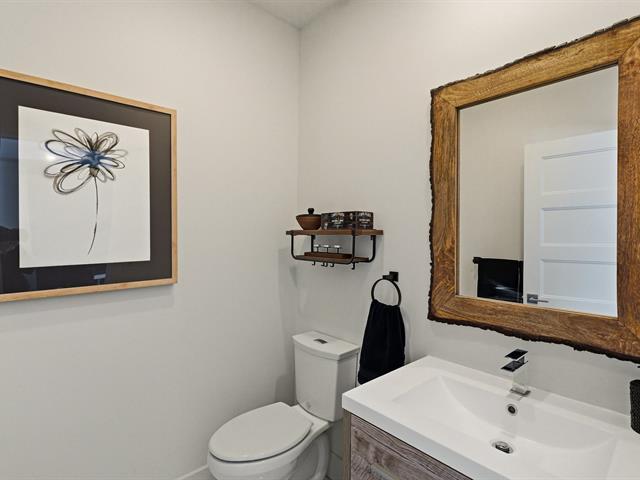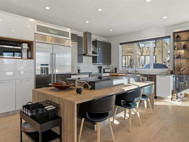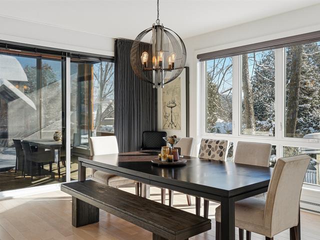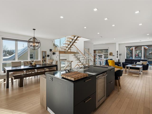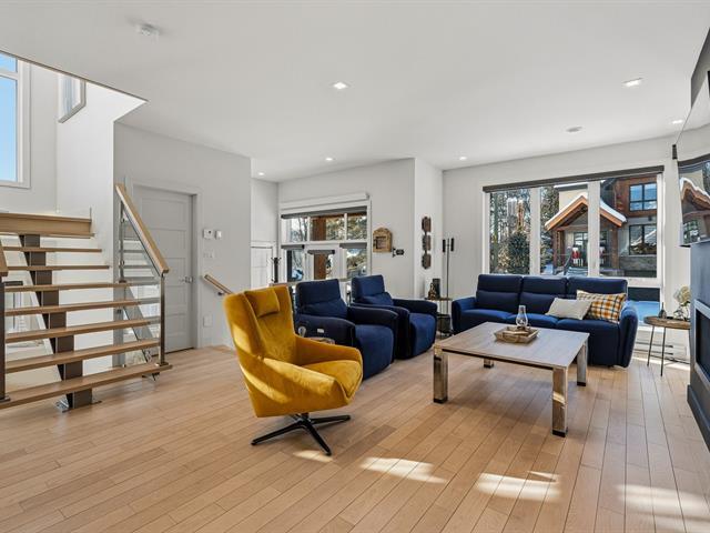 In harmony with its natural surroundings, welcome to this corner-unit townhouse offering a refined, bright, and private living environment with views of the ski slopes of Mont-Saint-Sauveur. The inviting open-concept main floor seamlessly connects the living room, dining area, and kitchen, featuring a large island and quartz countertops. The property offers 3 bedrooms, 3 bathrooms, a powder room, and a laundry room. Upstairs, two bedrooms include ensuite bathrooms with heated floors for added comfort. An integrated garage, outdoor parking space, and covered terrace complete the home. Ideally located close to the village and services. (48110078)