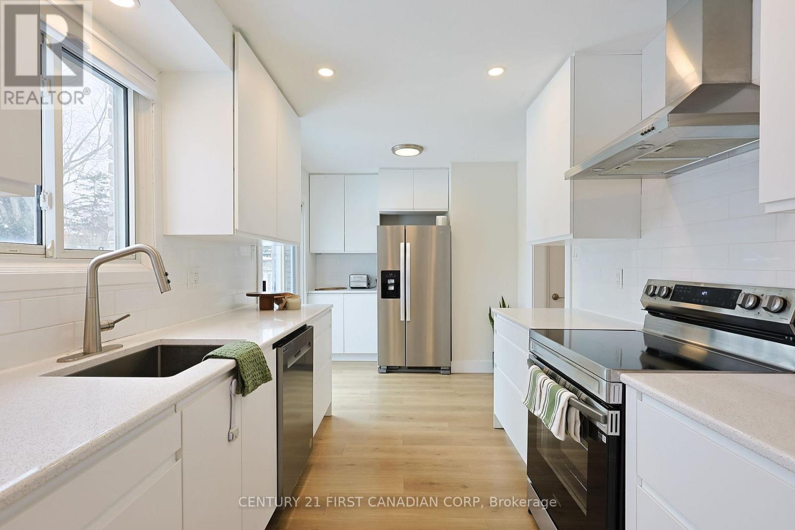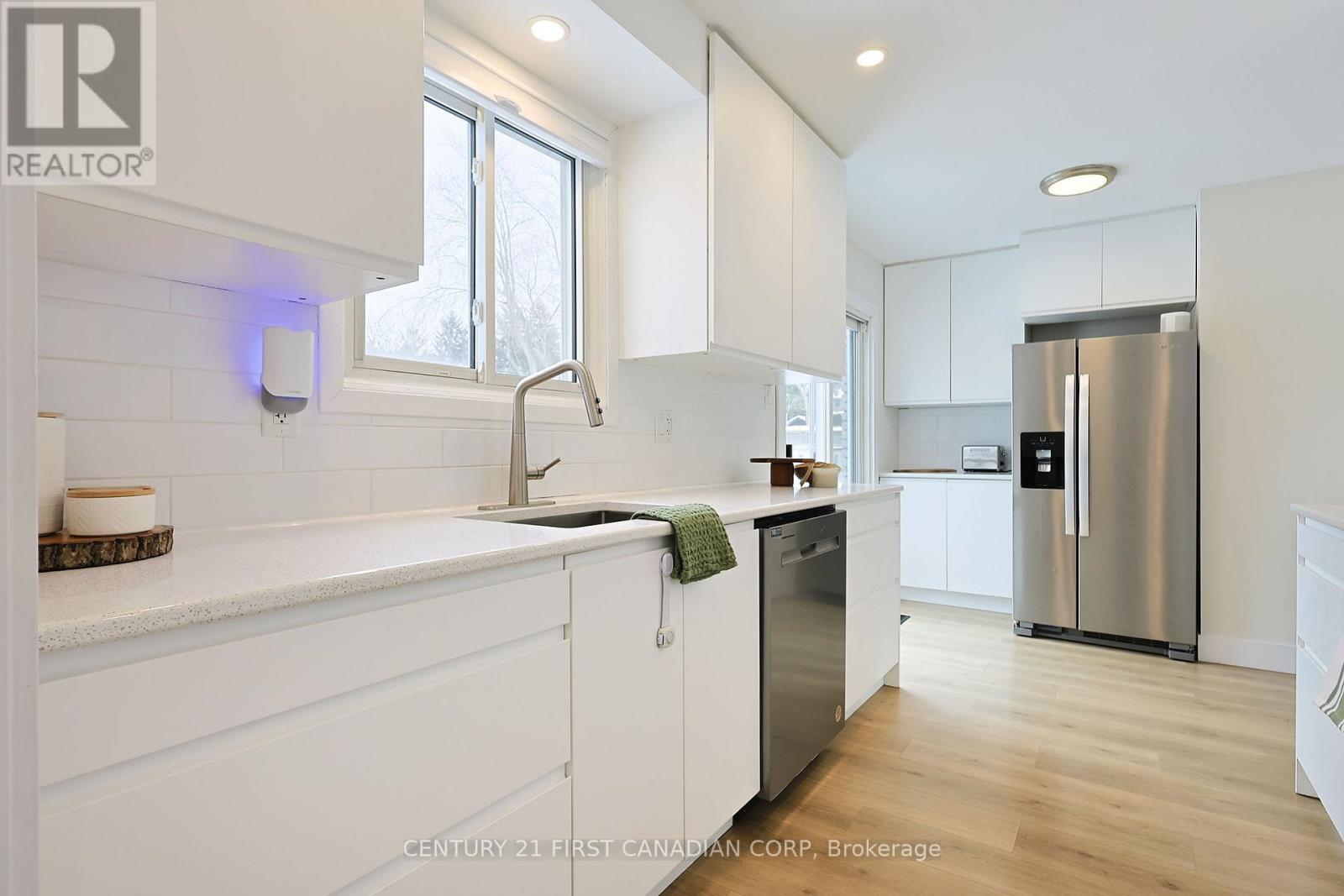 Located in Byron, this charming 2 Story has been recently upgraded with luxury vinyl throughout main floor with pot lights in living room, dining room and kitchen. Bright and Spacious Living and Dining areas are perfect for entertaining with easy access to large kitchen with upgraded kitchen cabinets and newly installed quartz kitchen counter tops (2025). Double patio door in kitchen leads to outdoor deck, and patios. Makes it easy access to the backyard in all seasons. The real unique feature of this home is Main Floor Bedroom, which can be used for Den, In-law Suite or home based business. Main floor 3 pc bathrooms has been recently updated with new vanity and overhead storage (2025) for fresher look. All 4 Bedrooms upstairs have no carpet and all rooms are bright and spacious. Lower level is also finished with Large rec-room which has gas fireplace,(2019), and ample room for kids to play. Tucked on the side is huge laundry room with tons of storage areas, and door that leads to the back yard with Separate Entrance !!!This homes has all the features one requires to move in, and call it a home !!!. Recent updates in the home includes Shingles 2017, Gas Fireplace 2019, Dishwasher 2019, AC 2023, Luxury Vinyl floors (2025), Pot lights (2025), quartz counters (2025), Bathroom vainity and overhead storage (2025). Close to all amenities and ranked elementary schools !!! This home will not last long... Flexible closing... Why buy condo and pay condo fees... Move into this Large, Spacious and Bright home and enjoy living...You and kids can walk to the BOLER MOUNTAIN to SKI or year around activities.. Truly family friendly neighbourhood !!! (42089466)