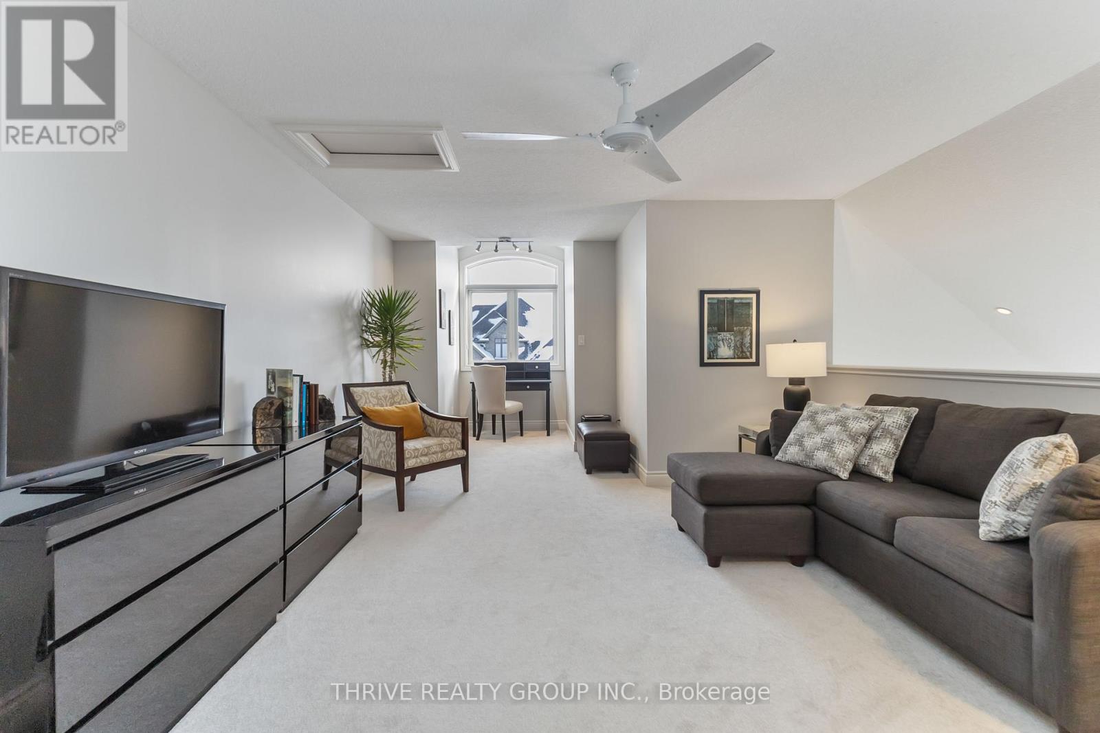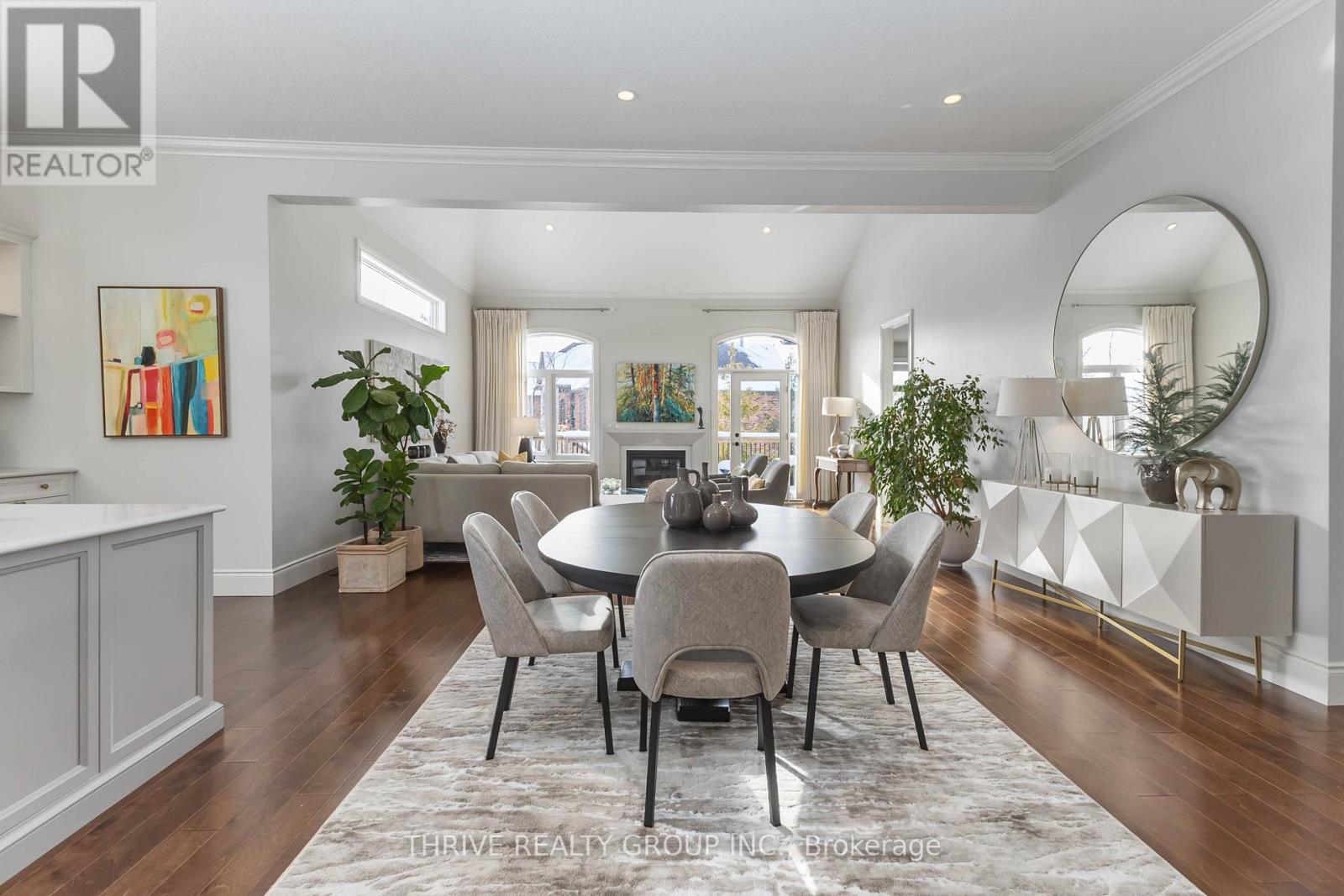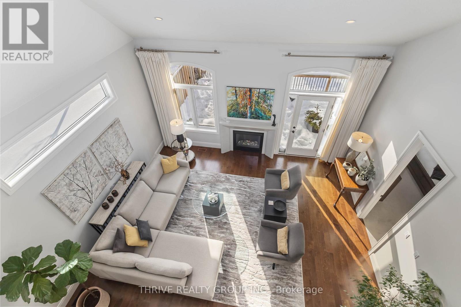 Rarely offered end-unit condo near Sunningdale Golf Course, offering exceptional space, privacy, and a truly pristine presentation, with a quiet outlook over mature greenery and a natural water feature, the perfect backdrop for watching evening sunsets. This impeccably maintained residence offers a rare sense of space and calm within the community. The main floor is thoughtfully designed for effortless living, featuring a primary bedroom with ensuite, main-floor laundry, and a flexible den or home office. Soaring ceilings - 10 feet on the main level and an impressive 18 feet in the great room, create a bright, elegant atmosphere, complemented by a beautifully designed kitchen that anchors the home with both style and function, ideal for everyday living and entertaining. The upper level includes a spacious loft area, perfect for additional lounge space, a home office, or a quiet retreat along with a bedroom and additional bathroom. The fully finished lower level adds incredible versatility with a bedroom, kitchenette, family room, sauna, bathroom, and bonus space, perfect for guests, extended family, or hobbies. With 3 bedrooms and 4 bathrooms, rare double car garage, and no rental items, this home delivers comfort, quality, and ease. Ideally located close to golf, trails, shopping, and everyday amenities, and within excellent school catchments including Masonville PS, A.B. Lucas SS, Louise Arbour FI, Sir Frederick Banting SS, as well as Catholic options St. Catherine of Siena and St. Andre Bessette. A rare opportunity to enjoy spacious, refined, low-maintenance living in one of North London's most desirable communities. (42089839)