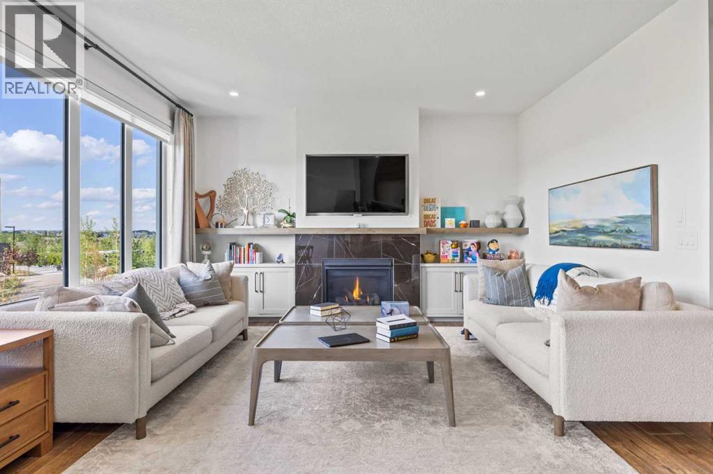 Welcome to this exceptional 30 ft wide former showhome, backing directly onto the scenic Bayview Park, in a vibrant community featuring a tranquil canal system, expansive green spaces, and a future school just steps away. Thoughtfully designed and meticulously upgraded with over $150,000 in high-end finishes, this award-winning residence blends sophistication, comfort, and modern functionality.Over 3600 Sq ft. developed area, the main level impresses with two-tone cabinetry, stacked flooring, and two-tone quartz countertops, beautifully accented by white oak railings and elegant boxed-up ceiling details. The custom kitchen is both stylish and practical, seamlessly connecting to open-concept living and dining areas. A large spa-inspired ensuite bathroom and comfort-height vanities bring a touch of everyday luxury, while triple-pane windows ensure quiet and energy efficiency throughout the home.Upstairs, a generous bonus room with 9 ft ceilings offers a perfect space for relaxing or entertaining. Every bedroom is pre-wired with TV and data ports, reflecting the home’s forward-thinking design. The laundry room is roughed in for a future sink, offering additional convenience.The fully developed basement adds an additional 810 sq ft of living space with 9 ft ceilings, and features a spacious recreational area, a large bedroom, and a full bathroom, perfect for guests, teens, or multi-generational living. In-ceiling speakers are installed on every level, delivering a seamless audio experience throughout the home.Modern amenities continue with a dual-zone furnace system, central air conditioning, and an upgraded 200 AMP electrical panel. The heated garage with an 8 ft overhead door is EV-ready with charging rough-in already in place. Exterior upgrades include Gemstone permanent lighting, an irrigation system, and a hot tub control panel, enhancing the outdoor lifestyle.This is a rare opportunity to own a turnkey luxury home in a premier location—designed to impress and built to last. (31612304)