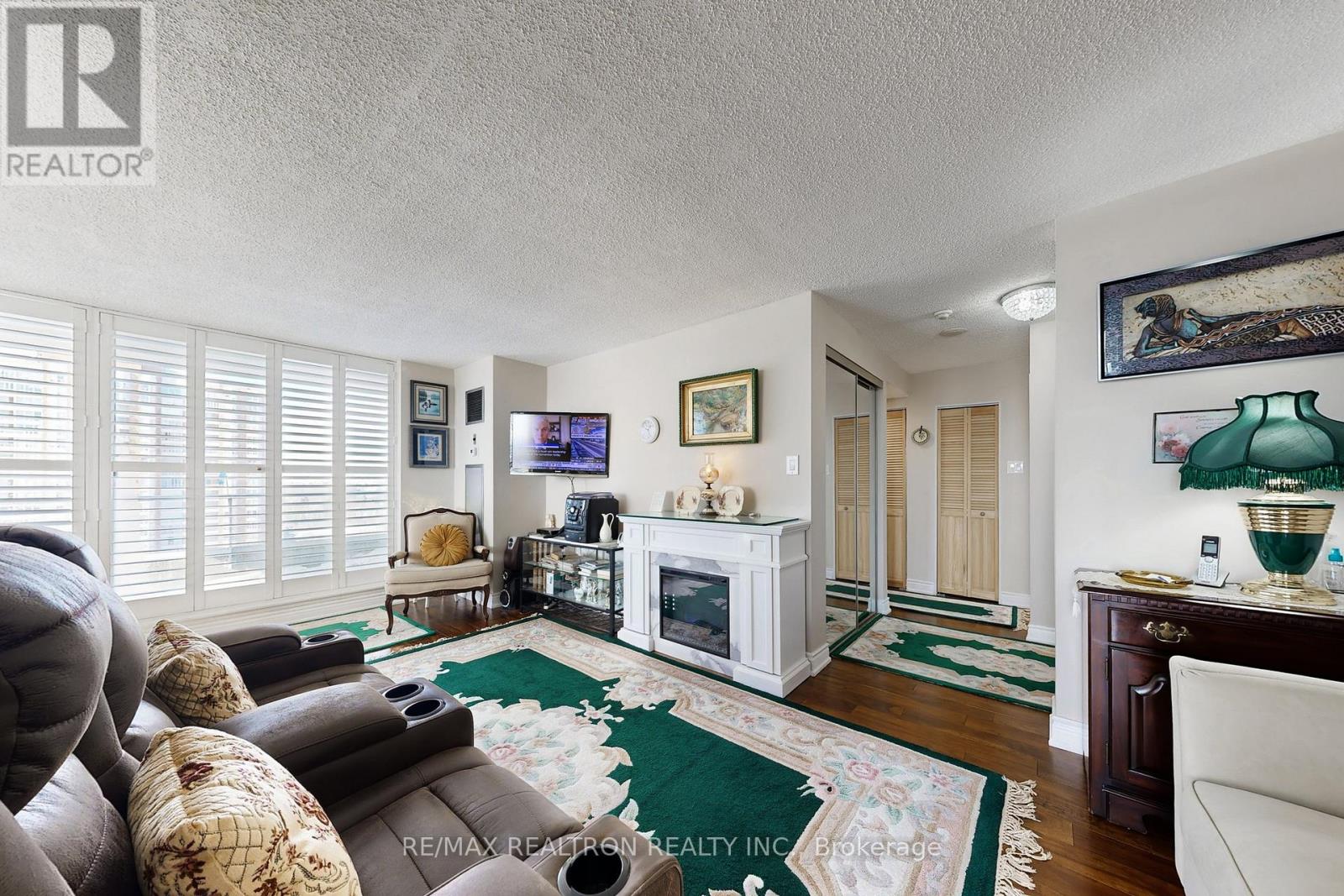 Welcome to this spacious, fully upgraded, sun-filled corner unit offering over 1,200 sq. ft. in the highly sought-after Mayfair on the Green community. Featuring a formal open-concept living and dining area with a walkout to an open corner balcony, this home showcases spectacular panoramic, unobstructed views. The den has been converted into a bright eat-in breakfast area. The spacious primary bedroom offers his & hers walk-in closets and a 4-piece en-suite. Enjoy engineered hardwood flooring, granite kitchen countertops with IKEA cabinetry in the kitchen and bathrooms, and California shutters throughout. Located in a desirable neighborhood with exceptional amenities, including a gym, indoor pool, squash and tennis courts, party room, and 24-hour gated security Walking distance to medical buildings, shopping mall, Shoppers Drug Mart, No Frills, library, elementary, and high schools. TTC at your door and minutes to Highway 401.Move in and enjoy! (42089896)