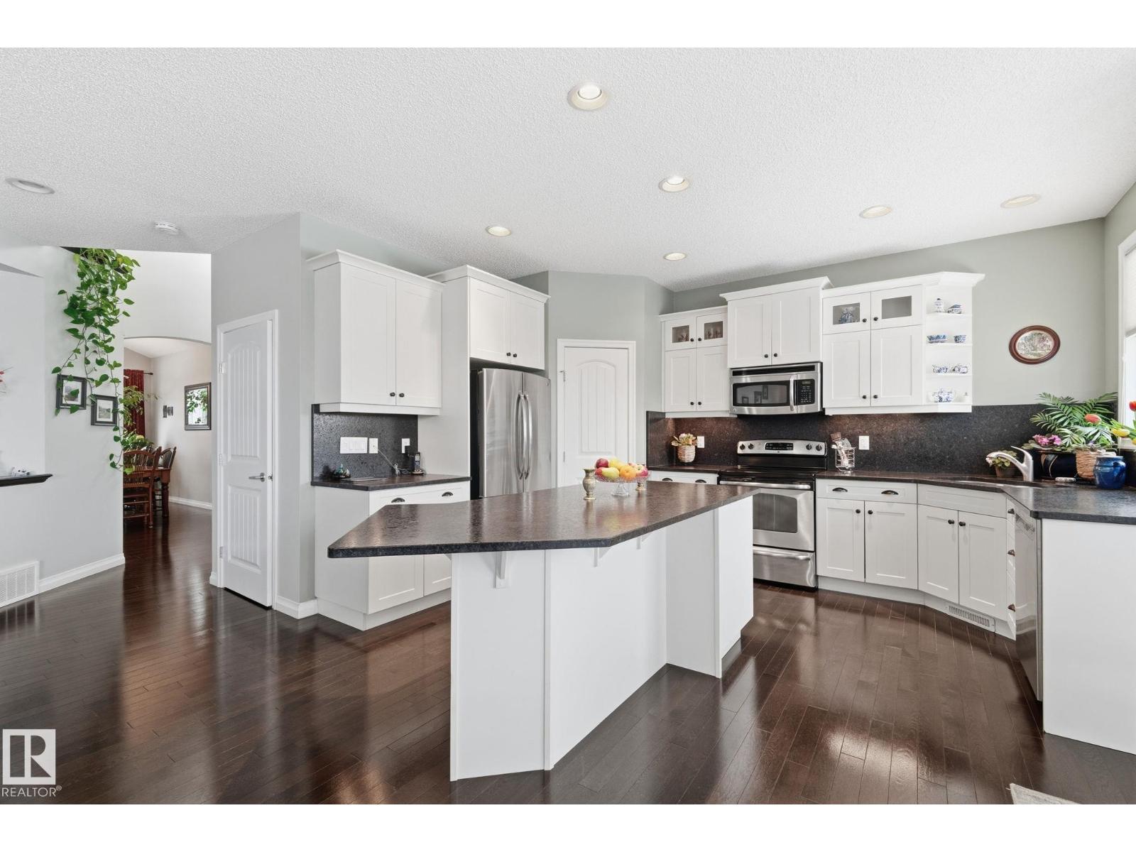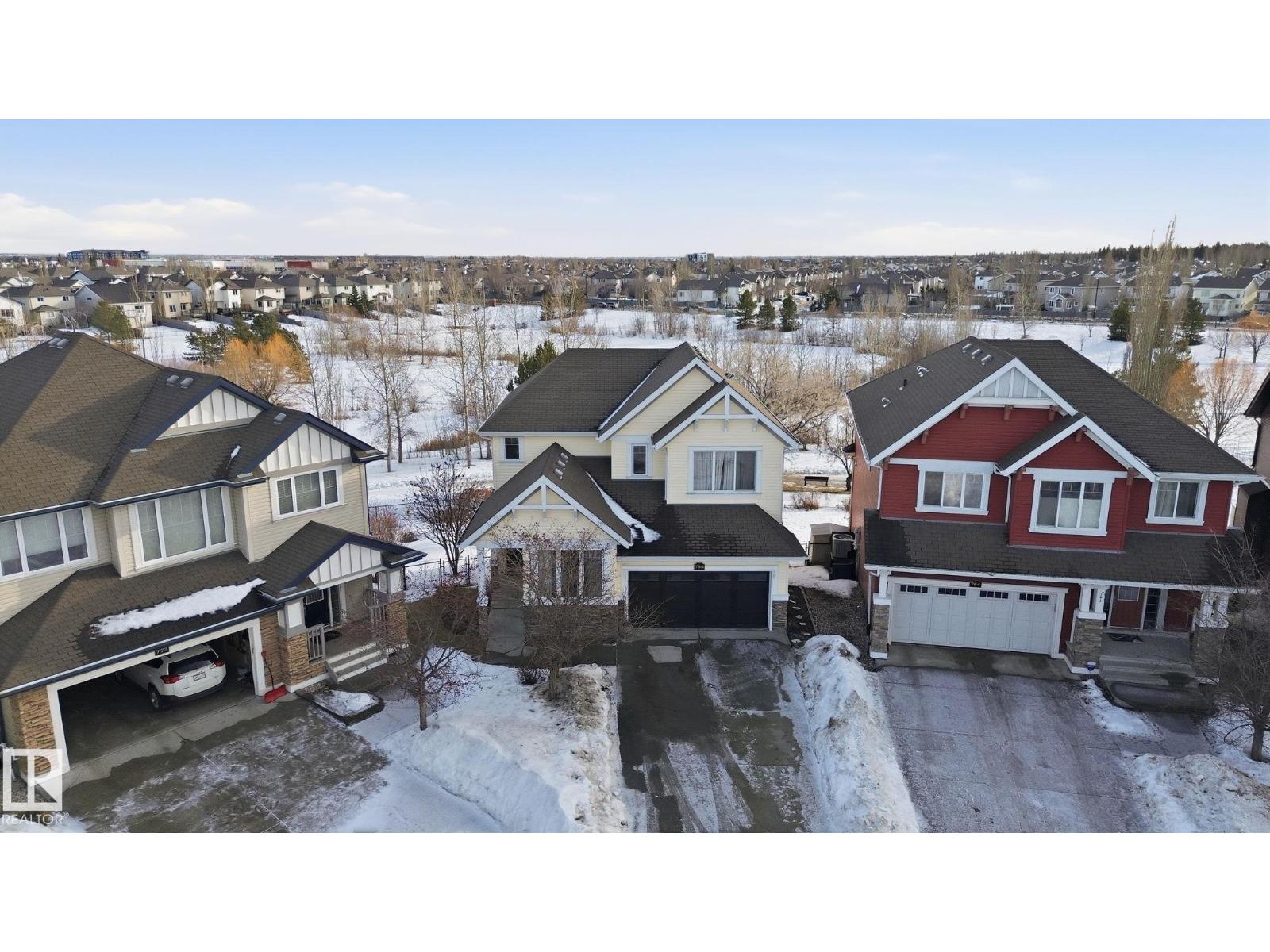 Backing directly onto a protected natural reserve with 3 interconnected ponds, this original owner home is set on one of The Hamptons’ most exclusive no through streets, where homes rarely come to market. Positioned on the best lot, the property offers south east views of water, trees, and walking paths. The main floor features 9’ ceilings and an open bright layout with generous living and dining spaces. Upstairs offers three bedrooms, including a spacious primary retreat and a built in office. The full unfinished basement with 9’ ceilings provides excellent future development potential also drenched in sunlight. Additional features include central A/C, a finished double attached garage, mature landscaping, flagstone patio, fenced yard, deck with living wall, and an HOA-maintained community. Walking distance to multiple schools, playgrounds, and 5 min to COSTCO, this is a RARE opportunity to secure a long-term home in one of West Edmonton’s most tightly held natural settings. (33800689)