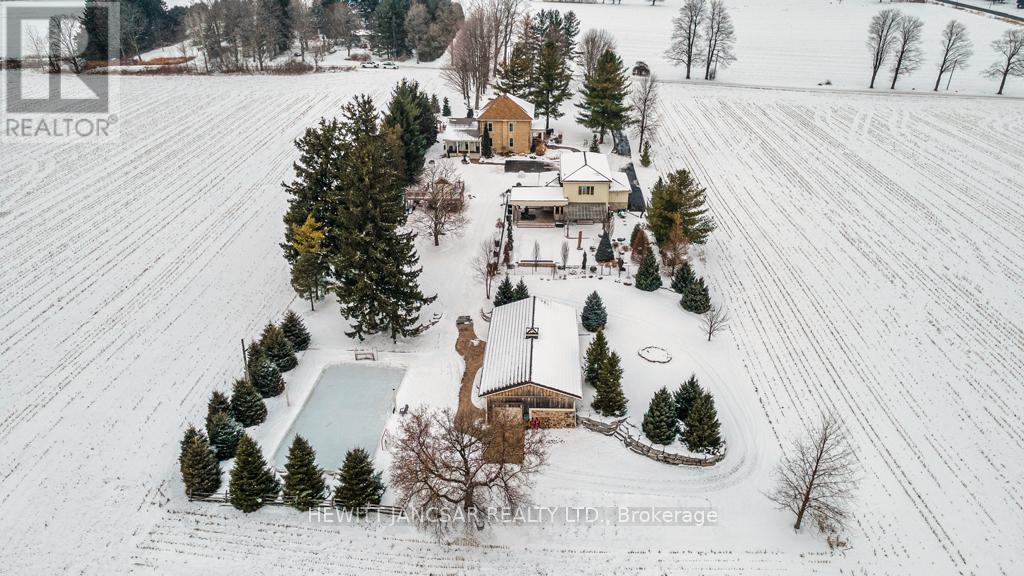 Welcome to Innerkip Oasis, a stunning 3000 sq ft century home situated on 2.26 acres on a tranquil dead-end road just outside the charming village of Innerkip. Discover this perfect sanctuary, a beautifully remodeled residence that masterfully combines historic charm with modern luxury. Imagine stepping into your dream home, where refinished original floors greet you and lead you to updated bathrooms and a state-of-the-art kitchen. Gather around the cozy stone fireplace with family and friends as you create lasting memories. This meticulously landscaped 2.26-acre property is designed for families who cherish outdoor living. Lush gardens create a serene, park-like setting, while the paved driveway opens up endless possibilities for sports like pickleball games or basketball shootouts right in your backyard! The impressive 3200 sq ft four-car garage isn't just for parking; it comes equipped with a full kitchen and 3-piece bathroom, making it an ideal space for a second family or an in-law suite. Picture hosting friends in your amazing man cave or turning it into the ultimate entertainment area complete with a golf simulator! Relax in the covered sitting area surrounded by the stunning spa inspired inground pool, featuring an outdoor kitchen and kegorator perfect for summer barbecues or quiet evenings under the stars. An additional detached building offers professional-grade potential that can be tailored to fit your lifestyle needs. Don't miss out on this unique opportunity to own Innerkip Oasisa remarkable blend of luxury, comfort, and functionality awaits you (42089881)