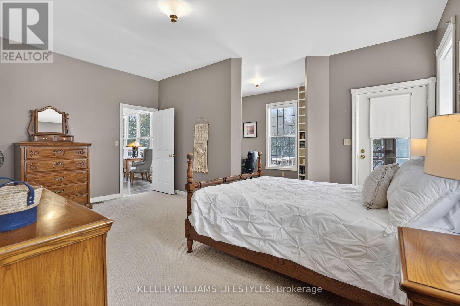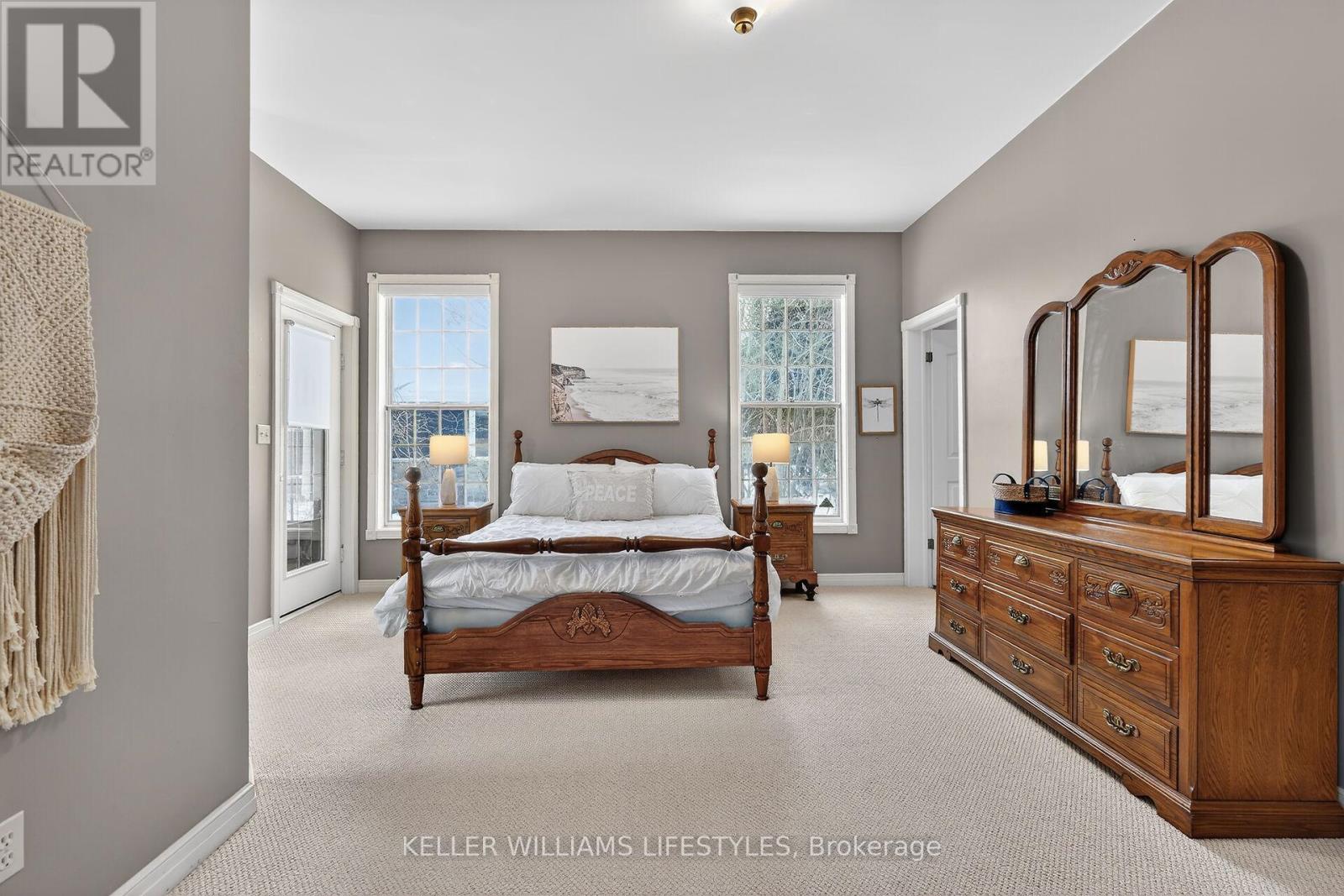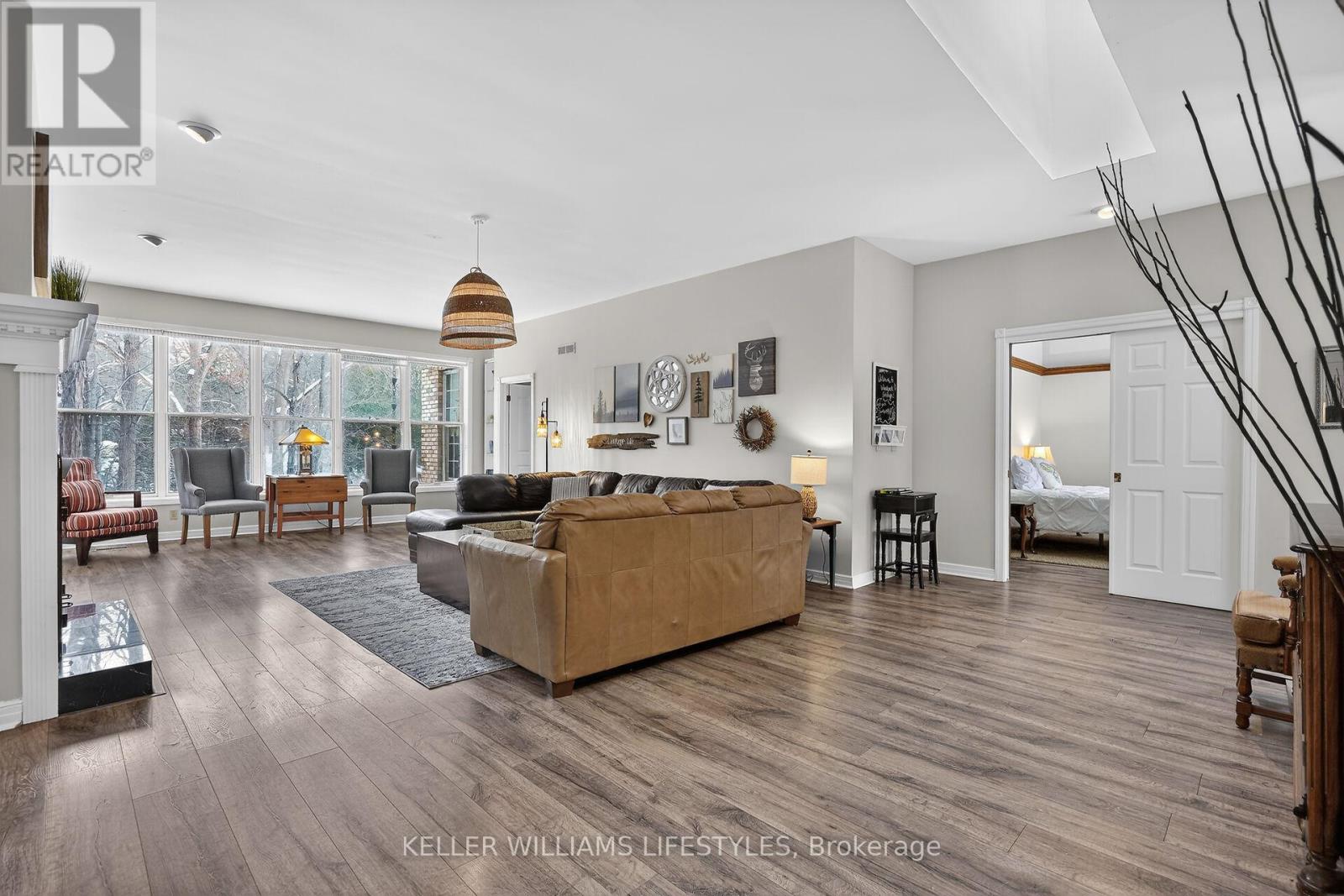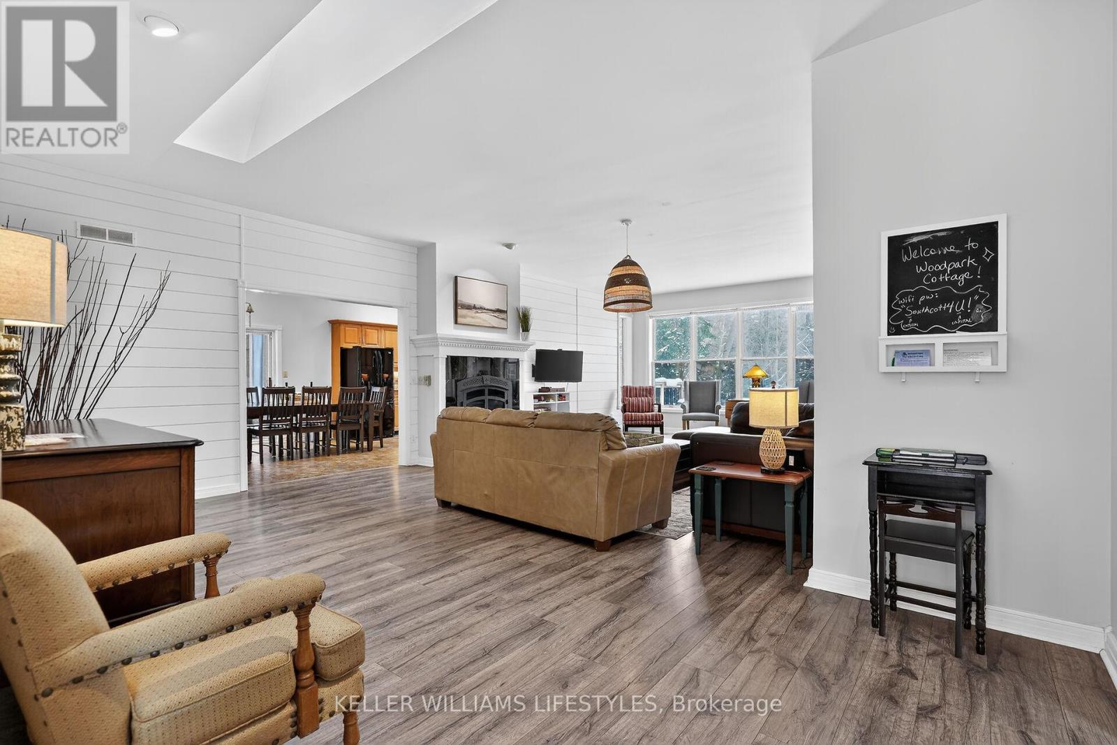 A rare opportunity to own a private riverfront retreat with 7 bedrooms, well suited as a family cottage, a multi-generational escape, or a strong income-producing property. Located on a quiet cul-de-sac in the heart of Southcott Pines, this 4,175 sq ft walk-out bungalow offers exceptional privacy while being just steps from Southcott's private beach & an easy walk to downtown along the scenic river trail. Backing directly onto the Ausable Channel & surrounded by mature trees, this exclusive setting is tranquil & naturally suited to relaxed cottage living. Built by respected builder, Doug Geoffrey, the brick home features bright, open-concept principal rooms with 9'4" ceilings & large windows showcasing a river and forest views. The living room has a cozy fireplace & flows into a generous kitchen & dining area with access to a screened-in porch & sun deck. The main level also includes a spacious Primary Suite with a private entrance, walk-in closet, sitting area, ensuite, & its own screened-in porch overlooking the river. With 2 additional bedrooms, a full bathroom, and laundry for convenience.The mostly above-grade lower level walk-out adds exceptional flexibility, offering a large family room with heated floors & a separate entrance, a full bathroom with heated floors, & 4 large bedrooms. With 7 spacious bedrooms & a prime Southcott location, rental potential is significant. This property generated approx $110,000 in gross rental income in 2025 while only renting it out 38% of the year. Repeat renters are already booked for 2026, providing immediate established revenue, with bookings cancellable if the buyer requires personal use.The oversized, treed lot is larger than most in the subdivision & sits about 700 metres from the lake, combining beach access, riverfront living, & walkable downtown amenities. Offered fully furnished with appliances, kitchenware, website, and client database, this is a turnkey opportunity in one of Southcott's most desirable settings. (42090355)