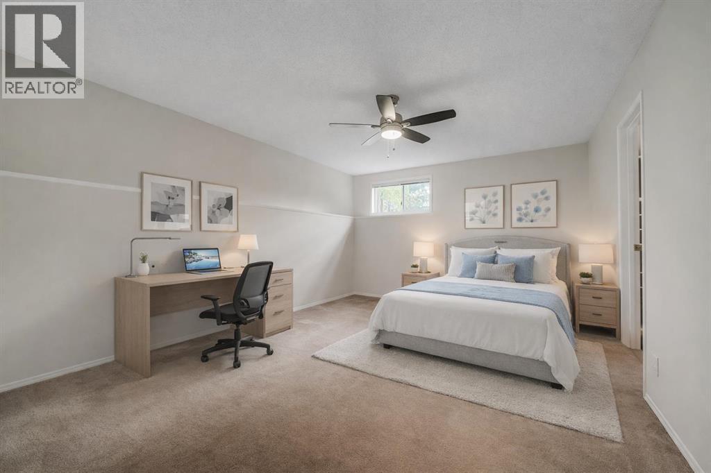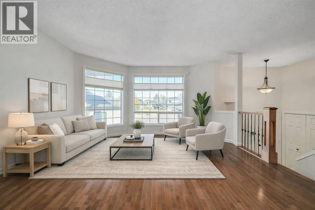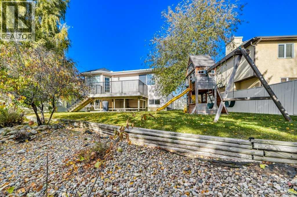 Located in the desirable community of Diamond Cove and tucked into a quiet cul-de-sac just steps from the Bow River and Fish Creek Park pathway system, this well-maintained home offers five bedrooms, two and a half bathrooms, central air conditioning, and an attached heated garage with epoxy flooring. Set on a 6,700+ sq. ft. lot, the southwest-facing backyard features mature trees, no direct neighbours behind, and backs onto a small greenspace and lane, creating a private and peaceful outdoor setting. The main level includes a bright living room with bay windows and hardwood flooring, a kitchen with stainless steel appliances and a breakfast bar, and a dining area that opens to the large balcony. The balcony is finished with composite decking and has stairs leading directly to the expansive backyard. Three bedrooms are located on this level, including the primary with a four-piece ensuite and walk-in closet, along with a two-piece bathroom with a rough-in for a shower. The fully developed lower level offers large windows, two generously sized bedrooms with walk-in closets, a full bathroom, and a spacious recreation room with a gas fireplace. There is excellent storage throughout, including a dedicated storage closet and a large laundry/mechanical room. Recent updates include fresh interior paint, blown-in insulation in the garage attic, and plumbing upgrades throughout the home. A move-in ready property in a sought-after location close to parks, pathways, schools, amenities, and major routes. (31610690)