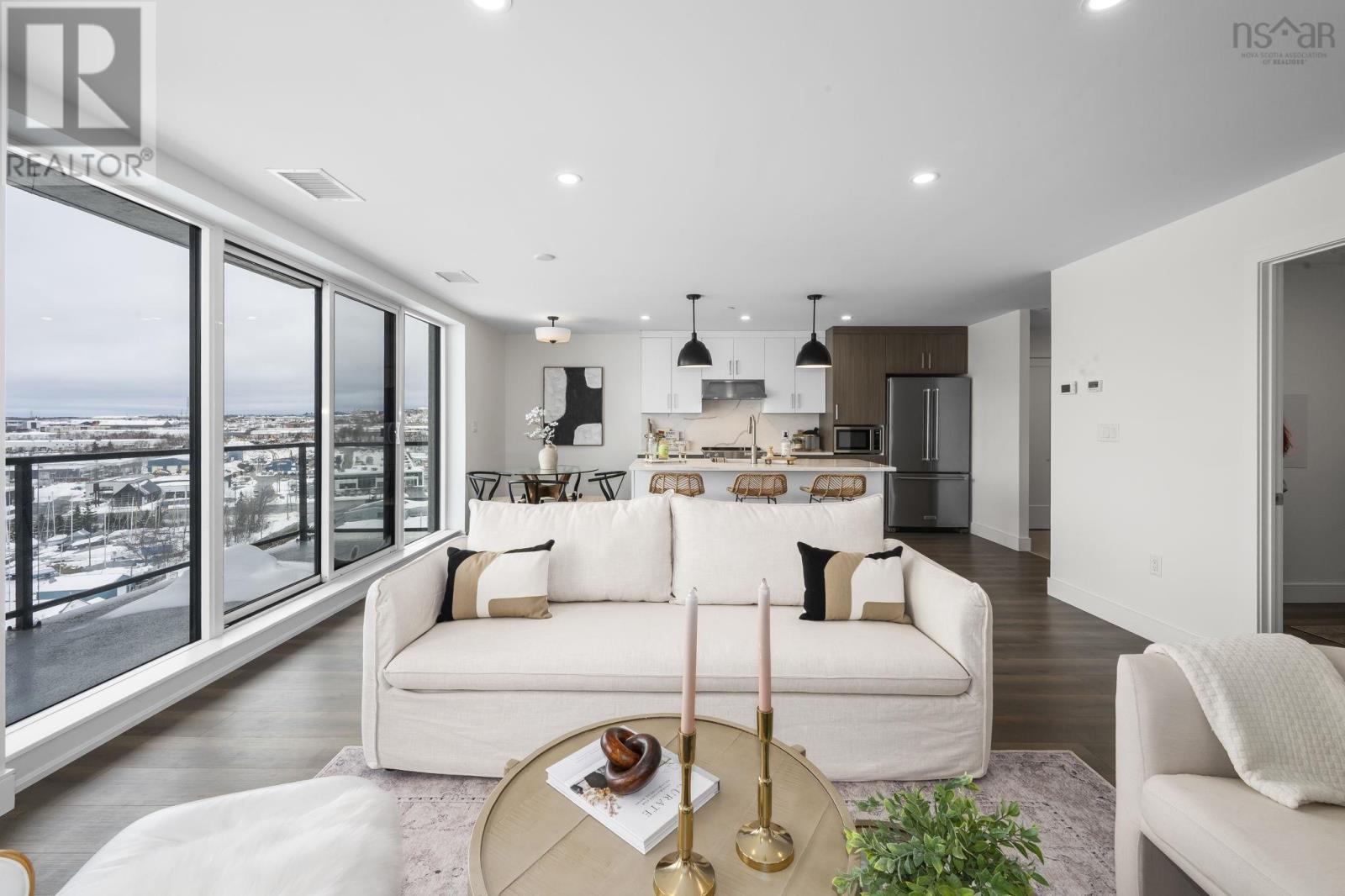 Welcome to Seapoint Condominiums where the view isnt just a feature, its the headline! This one-bedroom plus den brings relaxed nautical vibes that turns everyday living into a stay-cation by the water. Step inside to an open-concept layout where floor-to-ceiling windows pour in natural light and capture magical sunset views over the marina of the Dartmouth Yacht Club. The kitchen features timeless granite countertops and a matching backsplash anchored with a center island and premium Kitchen Aid appliances, inviting you to explore your culinary passions. The den flexes easily as a home office, reading nook or creative space. The bedroom offers direct access to the balcony so harbour views greet you first thing in the morning. An oversized walk-in closet off the bedroom ensures ample storage space, allowing you to keep the living area clutter-free. The ensuite bath boasts custom herringbone tile and a beautifully designed shower. Step onto the impressive 30-foot balcony and let indoor living spill seamlessly outdoors, your front-row seat to open skies and the harbour shimmering below. Your condo is thoughtfully equipped with extra pot lights and a fireplace, elevating the overall ambiance. The building's layout is optimal, with only six condos per floor and a dedicated resident manager to address your needs. Convenience continues with access to underground parking, a wash bay and a generous 8x12 storage locker- perfect for storing all your seasonal items, sports gear or just extra belongings. Plus, the low condo fees include heat, making this seaside abode even more appealing. Stay in shape with a fully equipped gym and unwind in the professionally furnished amenity room overlooking the adjacent marina. Pet-friendly building welcomes your lifestyle and your furry companions without compromise. With Starbucks and popular eateries right onsite and Dartmouth Crossing, major bridges, and highways just minutes away, convenience comes standard here. (231930697)