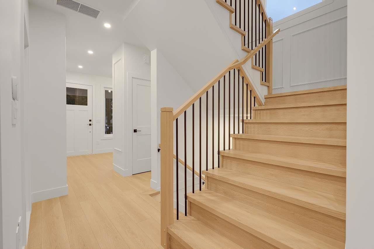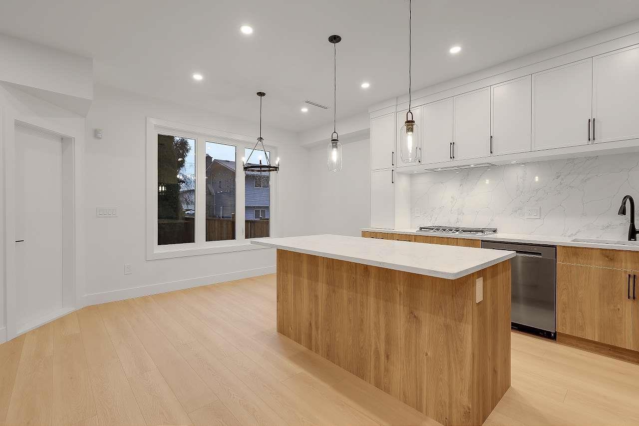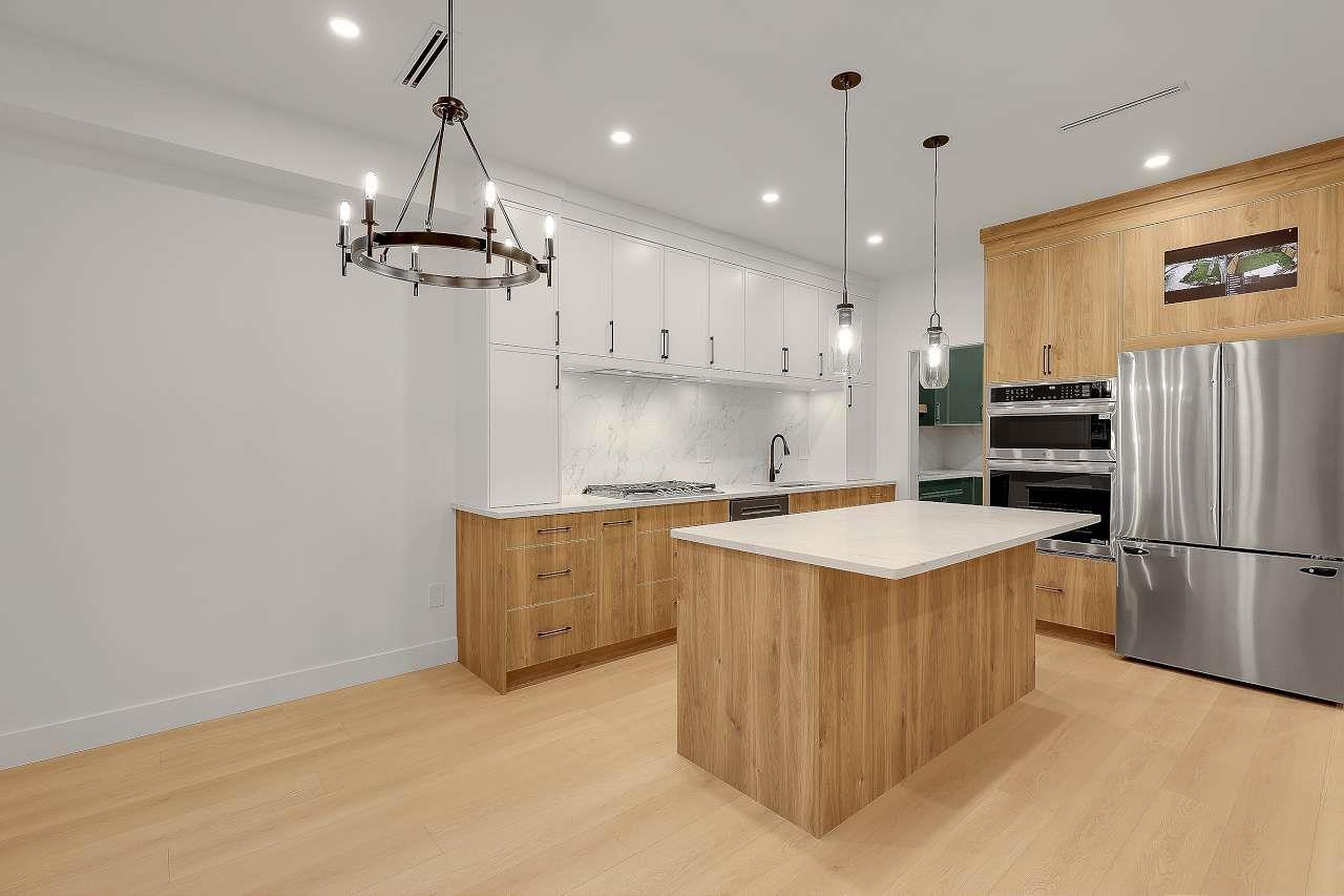 Brand New Duplex (BOTH SIDES FOR SALE) in one of North Delta's most central locations, close to Schools shops major routes and transit! w/ Legal suite and no strata fee! This stunning home w/full AC features 3 (or 4?) spacious bedrooms up, including a master bedroom with a private balcony and gorgeous en-suite. There is an office/formal lvgrm and generous famroom on the main, and a media room in the basement-ideal for a home theatre: extra living space. The chefs kitchen boasts large island, a separate spice kitchen! Finished w/name brand light plumbing fixtures. designer colors plenty of wall paneling this is the perfect home! *****OPEN HOUSE 230PM-4PM ON SAT FEB 7TH***** (32415595)