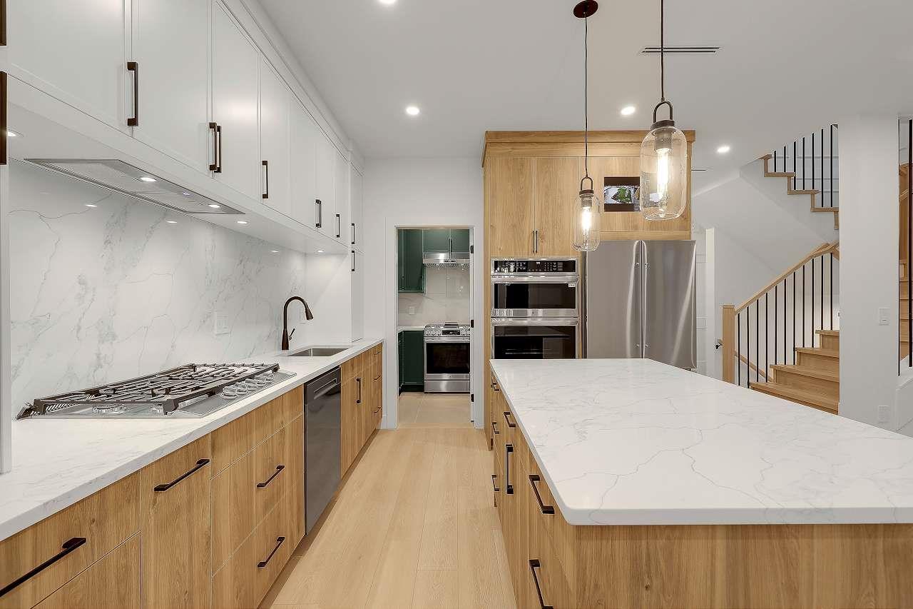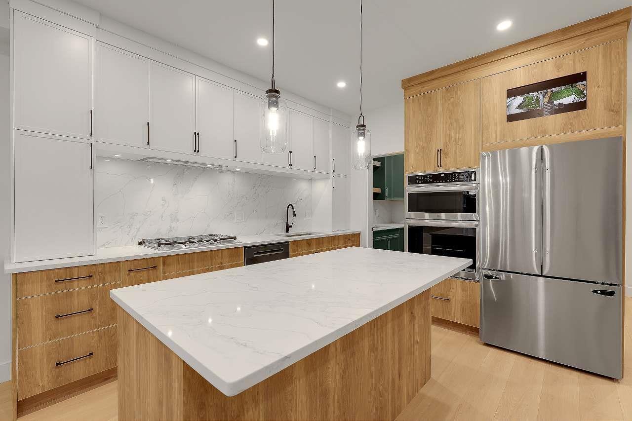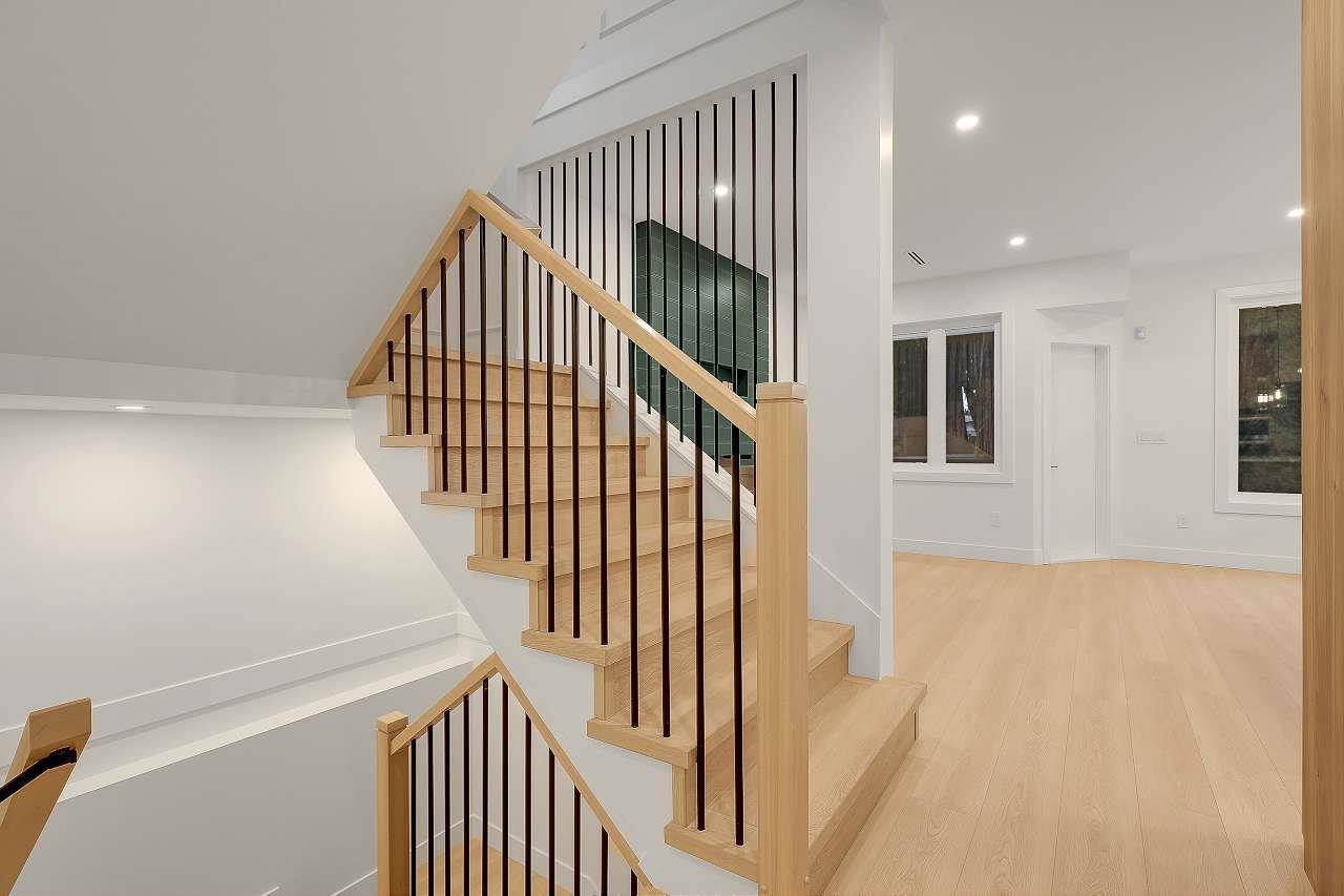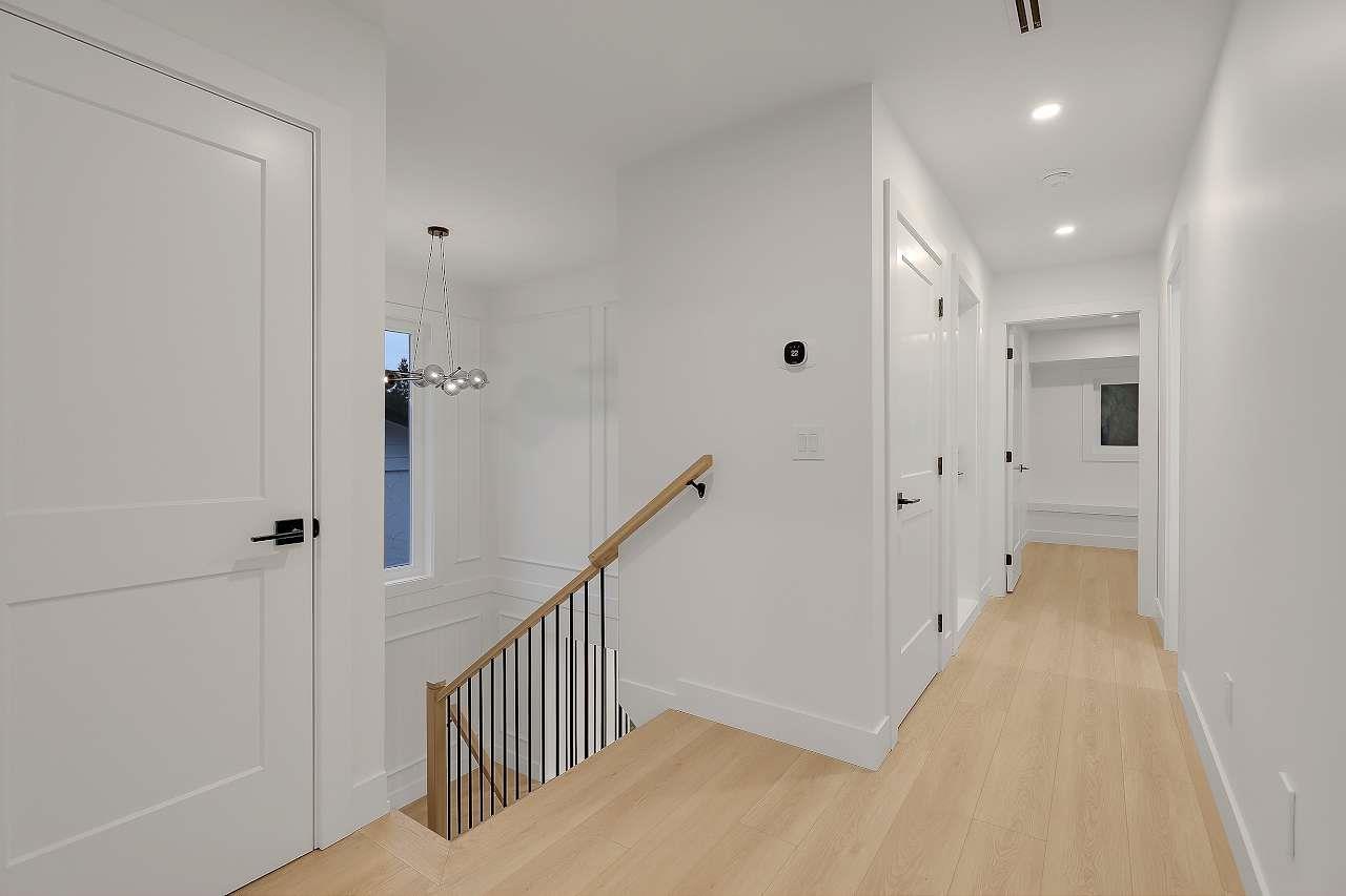 Brand New Duplex (BOTH SIDES FOR SALE) in one of North Delta's most central locations, close to Schools shops major routes and transit! w/ Legal suite and no strata fee! This stunning home w/full AC features 3 (or 4?) spacious bedrooms up, including a master bedroom with a private balcony and gorgeous en-suite. There is an office/formal lvgrm and generous famroom on the main, and a media room in the basement-ideal for a home theatre: extra living space. The chefs kitchen boasts large island, a separate spice kitchen! Finished w/name brand light plumbing fixtures. designer colors plenty of wall paneling this is the perfect home! *****OPEN HOUSE 230PM-4PM ON SAT FEB 7TH***** (32415595)
