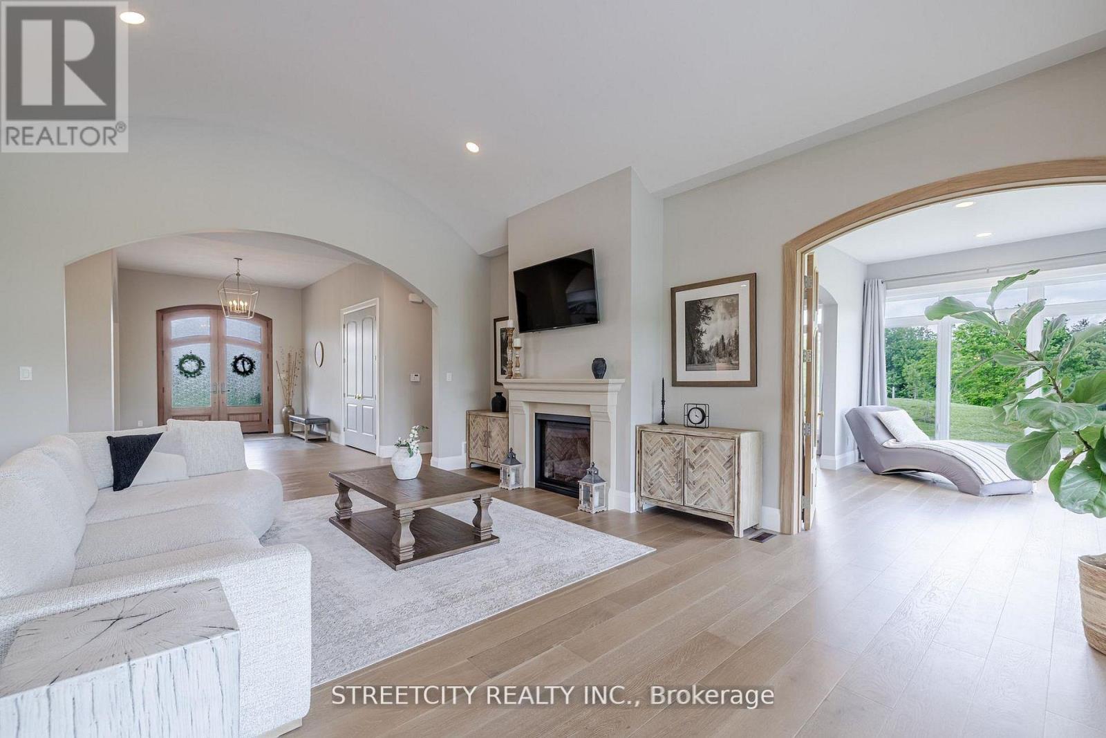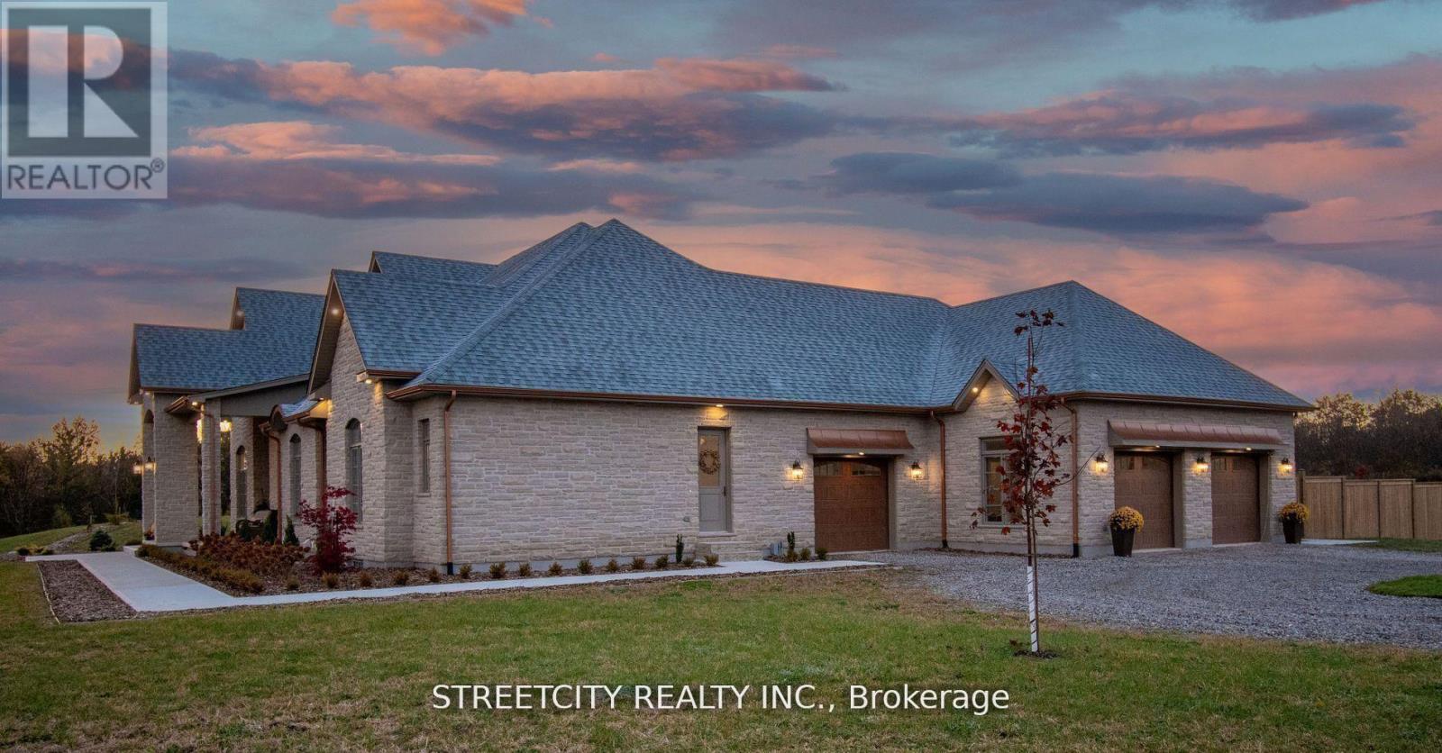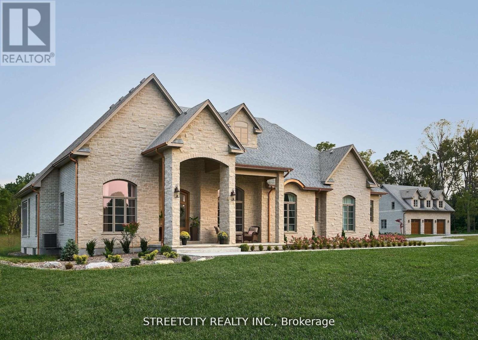 Endless possibilities await in this extraordinary custom-built estate, offering the rare combination of 6.9 acres of countryside privacy within the city, just minutes from Hyde Park Shopping Centre and Western University. This architectural masterpiece blends Old-World charm with modern luxury and includes a private guest house, ideal for extended family, visitors, or rental income. The main residence is thoughtfully designed for multi-generational living, featuring a recreation room with bar/kitchen, two additional bedrooms, a full bath, and laundry facilities. An inviting entrance opens to a stunning open-concept layout with 10-foot ceilings and in-floor heating on both levels, delivering refined comfort throughout. An elongated dining room sets the stage for memorable gatherings, while a cozy gas fireplace with stone mantle adds warmth and character. A striking barrel ceiling extends from the great room to the covered rear porch, seamlessly connecting indoor and outdoor living. The chef-inspired kitchen is anchored by a custom stone-cast range hood and a 48-inch professional gas stove with eight burners and dual ovens. Patio doors from the dinette and a convenient pass-through window from the fully equipped pantry lead to the rear porch dining area, making entertaining effortless. Secondary bedrooms offer custom closets and private ensuites for exceptional comfort and privacy. With over 6,573 sq ft of finished living space, this home is as functional as it is impressive. Outdoors, enjoy a resort-style setting with a covered porch, stone gas fireplace, and views of the 18' x 40' in-ground pool with sun ledge-perfect for relaxing or hosting unforgettable gatherings. A rare offering of luxury, space, and versatility, this estate is designed for elevated family living. (42091013)