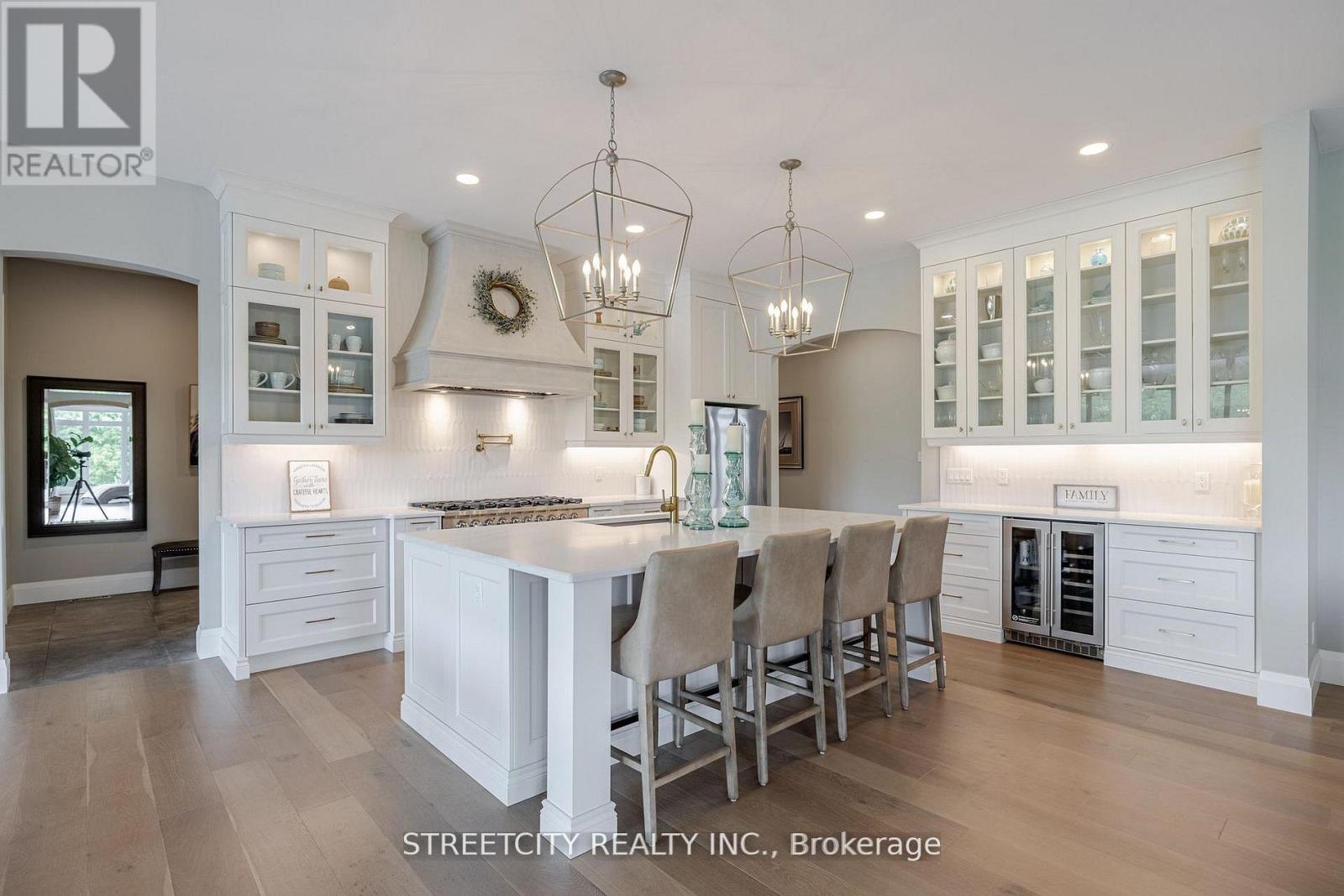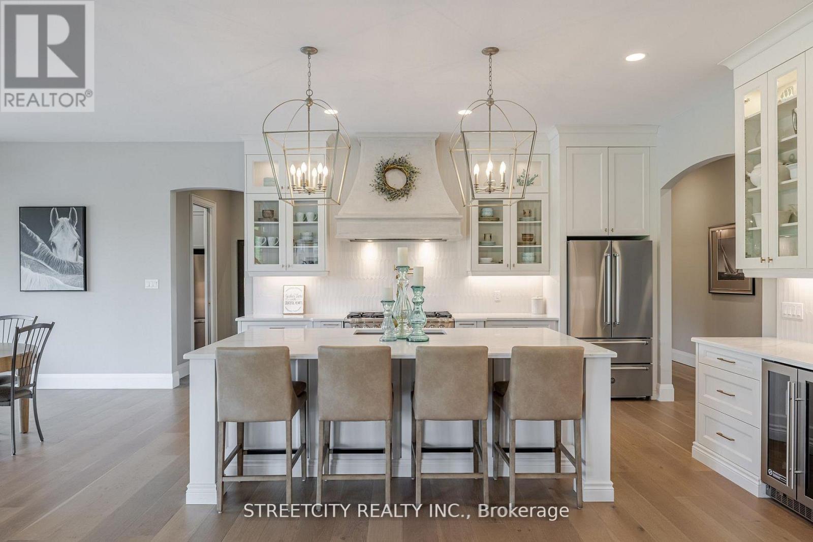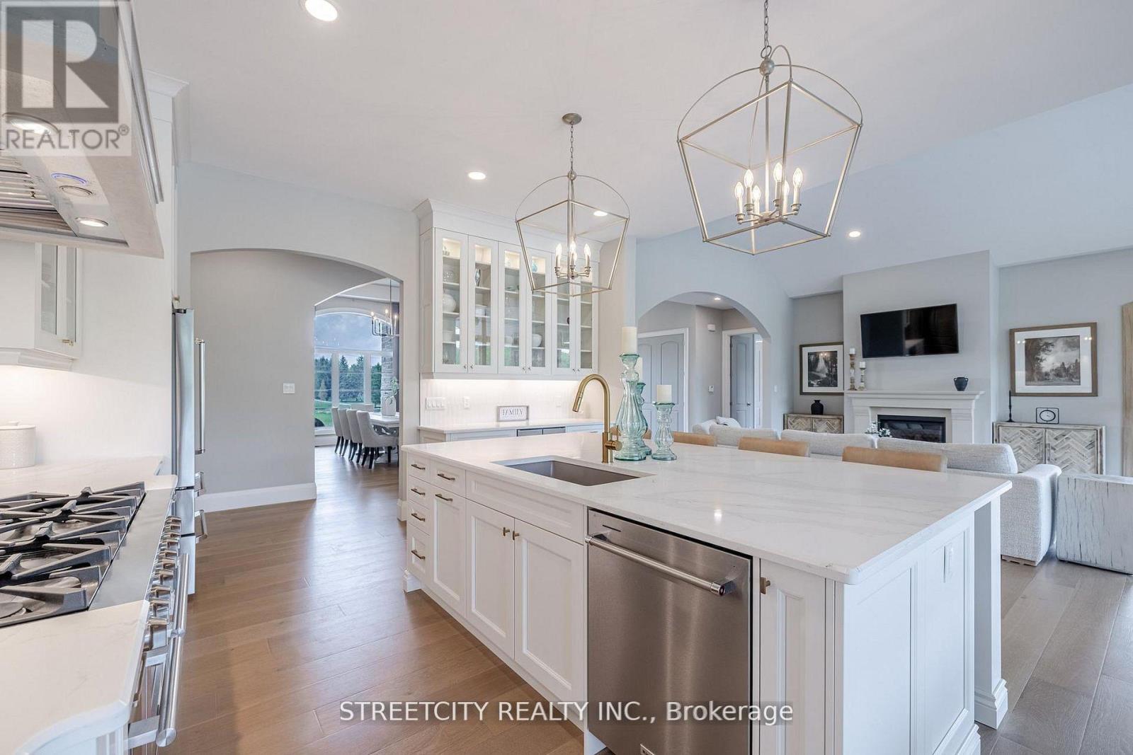 Endless possibilities await in this extraordinary custom-built estate, offering the rare combination of 6.9 acres of countryside privacy within the city, just minutes from Hyde Park Shopping Centre and Western University. This architectural masterpiece blends Old-World charm with modern luxury and includes a private guest house, ideal for extended family, visitors, or rental income. The main residence is thoughtfully designed for multi-generational living, featuring a recreation room with bar/kitchen, two additional bedrooms, a full bath, and laundry facilities. An inviting entrance opens to a stunning open-concept layout with 10-foot ceilings and in-floor heating on both levels, delivering refined comfort throughout. An elongated dining room sets the stage for memorable gatherings, while a cozy gas fireplace with stone mantle adds warmth and character. A striking barrel ceiling extends from the great room to the covered rear porch, seamlessly connecting indoor and outdoor living. The chef-inspired kitchen is anchored by a custom stone-cast range hood and a 48-inch professional gas stove with eight burners and dual ovens. Patio doors from the dinette and a convenient pass-through window from the fully equipped pantry lead to the rear porch dining area, making entertaining effortless. Secondary bedrooms offer custom closets and private ensuites for exceptional comfort and privacy. With over 6,573 sq ft of finished living space, this home is as functional as it is impressive. Outdoors, enjoy a resort-style setting with a covered porch, stone gas fireplace, and views of the 18' x 40' in-ground pool with sun ledge-perfect for relaxing or hosting unforgettable gatherings. A rare offering of luxury, space, and versatility, this estate is designed for elevated family living. (42091013)