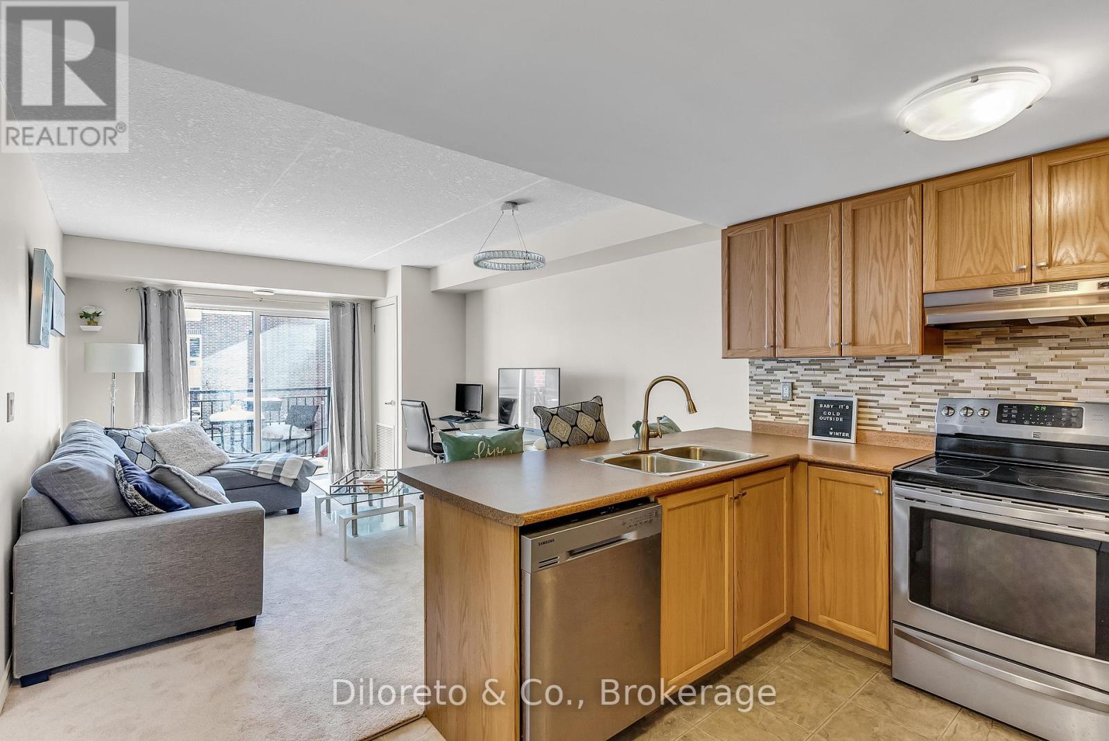 Welcome to Suite 309 at 39 Goodwin Drive, a bright, thoughtfully maintained one bedroom, one bathroom condo ideally situated in Guelph's desirable south end. This move-in-ready unit has been freshly painted and finished with brand-new carpeting, offering a crisp, modern feel throughout. The open-concept layout features a well-appointed kitchen complete with stainless steel appliances, a stylish backsplash, and ample cabinetry, making it perfect for both everyday living and entertaining. The sun-filled living area flows seamlessly to a private balcony overlooking the complex, an ideal spot to relax with your morning coffee or unwind on warm summer days. The generously sized bedroom offers great natural light and closet space, while the 4 pc bathroom is clean, functional, and well maintained. A major highlight is the newly installed furnace and air conditioning combo, providing added comfort and peace of mind. Additional conveniences include in-suite stacked laundry, one dedicated parking space, and a storage locker. With flexible closing available, this condo is a fantastic option for first-time buyers, downsizers, or investors seeking a turnkey opportunity. Enjoy being within walking distance to top south-end amenities such as grocery stores, coffee shops, restaurants, banks, a movie theatre, and the public library. Easy access to public transit, parks, Highway 401, and Highway 6 makes commuting and daily errands effortless. This is low-maintenance condo living at its best. (42090809)