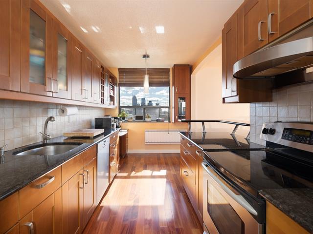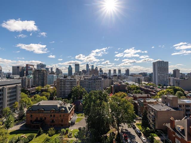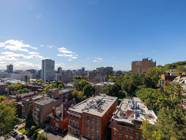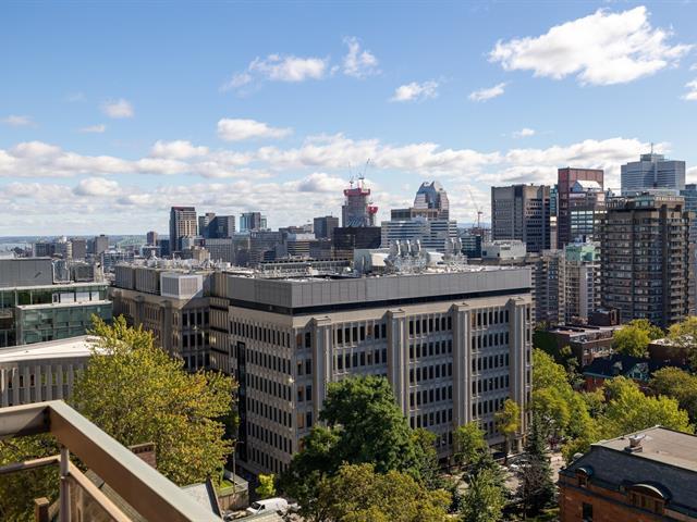 This is a large sun filled 2-bedroom corner penthouse facing South West, located in the heart of Golden Square Mile, steps from Mount Royal and the vibrant downtown area. It offers incredible panoramic city views up to the Jacques Cartier bridge, high ceilings, generously sized bedrooms, 1 garage, 24H doorman, an indoor pool and sauna. (41065016)