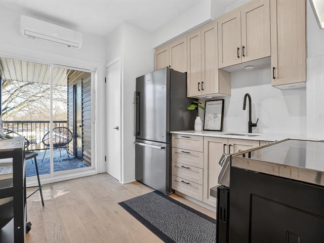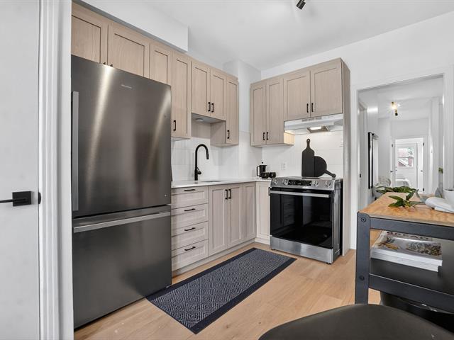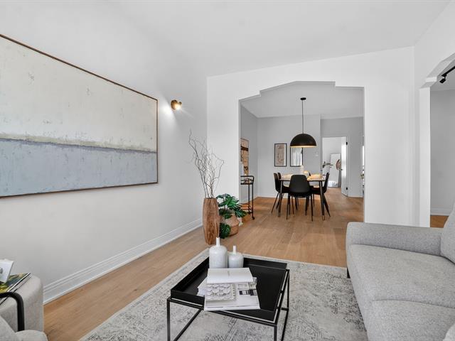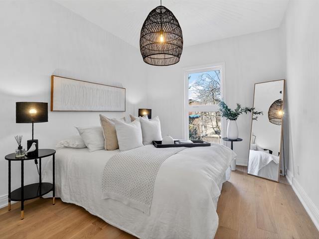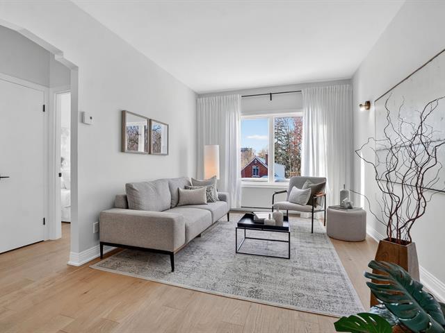 Renovated 2025 condo on the top floor with private entrance and parking. Open-concept living area between the living and dining rooms, bright with large windows, kitchen with quartz countertops. Outdoor space adjacent to the kitchen, large 8 x 12 private terrace with storage. 2 bedrooms. Heat pump, skylight, engineered white oak flooring. Located across from Beurling Park and at the corner of Wilson Park with tennis courts and a library. In a beautiful neighborhood with mature trees. Close to services, schools, shops and amenities, bike paths, metro, and the banks of the St. Lawrence River. (45202440)