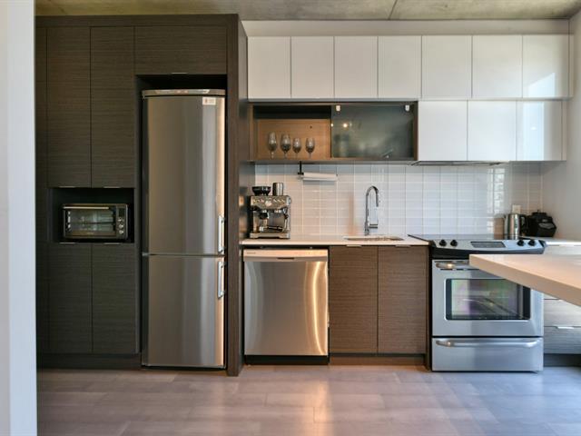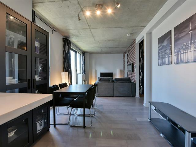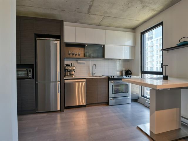 Welcome to your top-floor urban oasis! This modern penthouse unit offers an airy open-concept layout, bathed in natural light, with elevated ceilings and sleek finishes throughout. Enjoy a stylish kitchen, spacious bedroom with double wardrobe, and a brand-new bathroom with a glass walk-in shower. Step out onto your private balcony for sweeping city views. The building features premium amenities including indoor and rooftop pools with BBQs, sauna, gym, yoga room, game room, and a chic urban chalet. Located steps from the Lachine Canal, bike paths, trendy cafés, shops, and public transit--including the upcoming REM. (51135173)