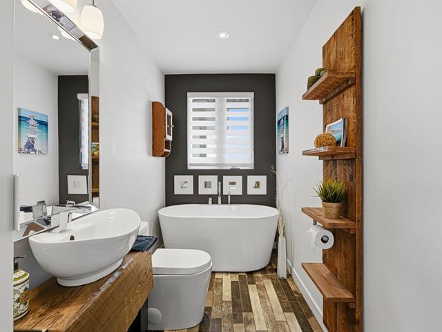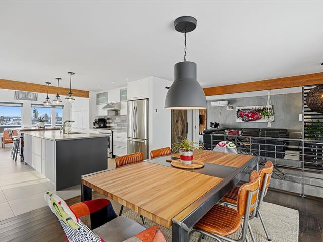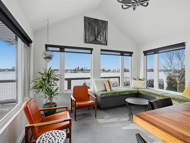 Unique riverside property with private dock, completely renovated in 2015. It offers exceptional natural light and spectacular views of the Richelieu River and its sunsets. No neighbors in front, ensuring privacy and unobstructed views. Distinctive detached triple garage with three independent doors and a converted living space upstairs, ideal as a playroom, relaxation area, or office. A truly turnkey property, combining timeless design, tranquility, and remarkable views, in the heart of one of Quebec's most beautiful villages. (57308063)