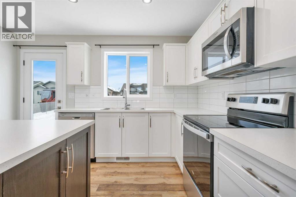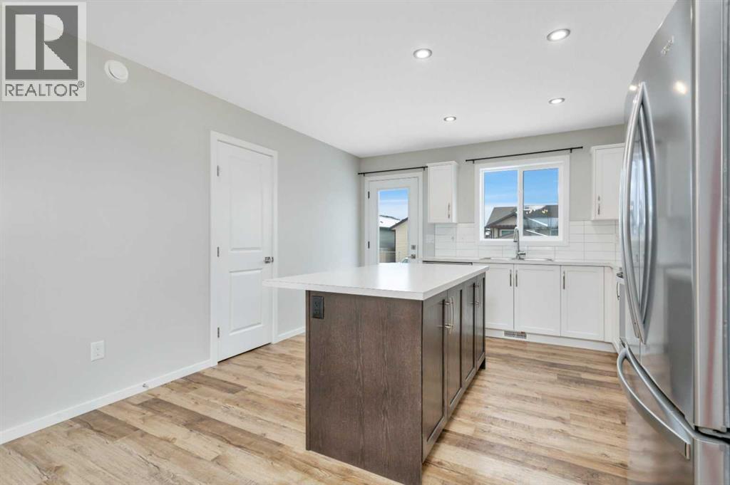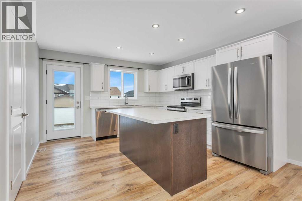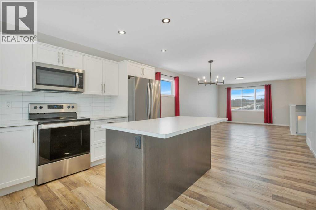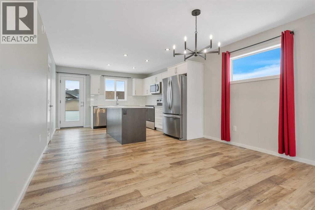 Welcome to this 2-year-old, 2024 Leabon-built bi-level located at 4424 53 Street in the desirable Creekside community of Rocky Mountain House. This home features an attached garage and a modern open-concept main living area encompassing the kitchen, dining, and living room. The kitchen is finished with white cabinetry, solid stone countertops, a central island, stainless steel appliances, a pantry, black light fixtures, and durable luxury vinyl plank flooring throughout the main level.The main floor offers three bedrooms and a 4-piece bathroom. The primary bedroom, situated at the rear of the home with west-facing exposure, includes a spacious walk-in closet and a 3-piece ensuite.The basement is unfinished to vapour barrier and provides laundry hookups along with rough-ins for a third bathroom, offering excellent potential for future development. The backyard and rear deck are not yet completed, presenting an opportunity to customize the outdoor space to suit your needs. Rear alley access adds convenience and flexibility.A well-designed newer home with room to grow in a family-friendly neighbourhood. (31613438)