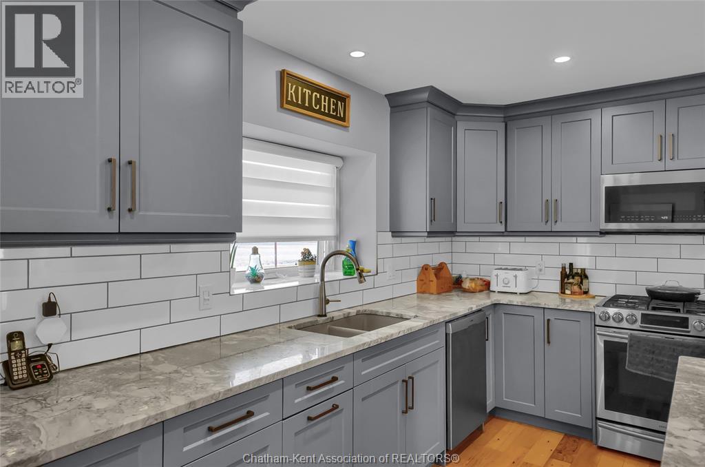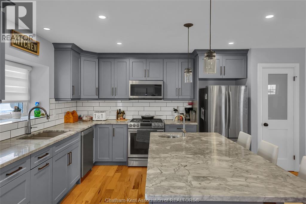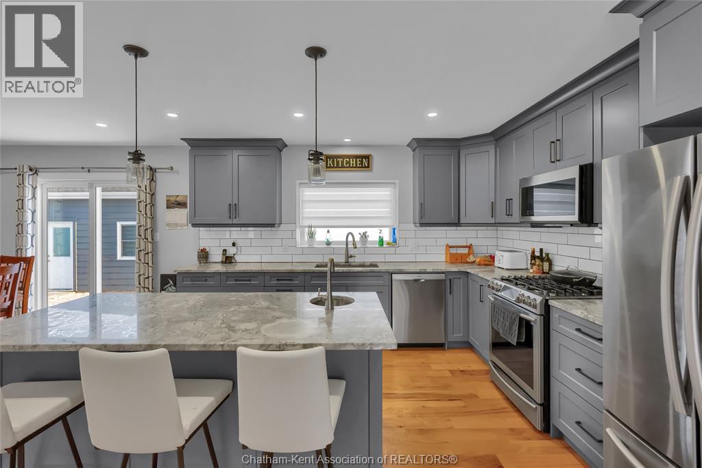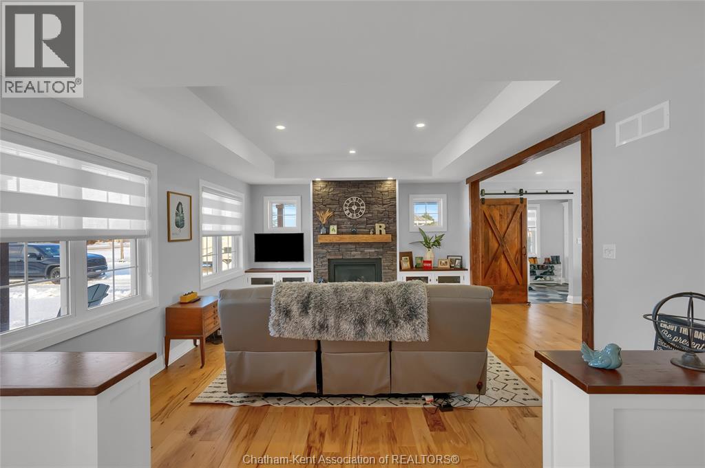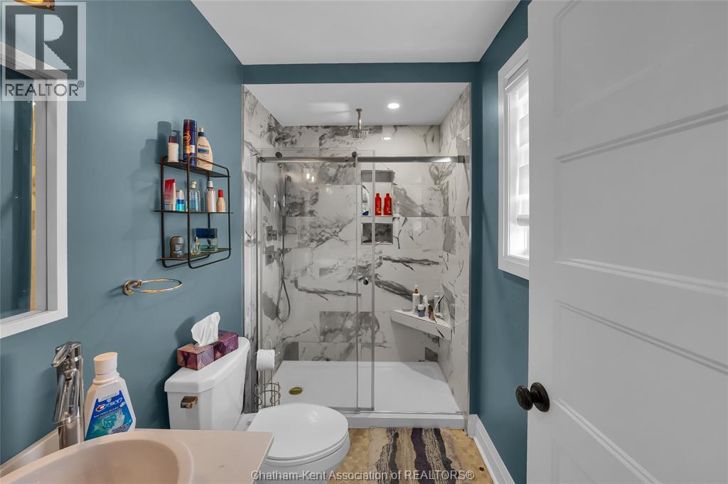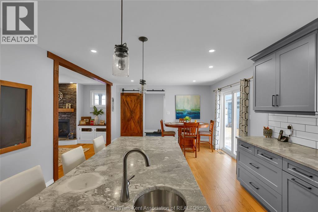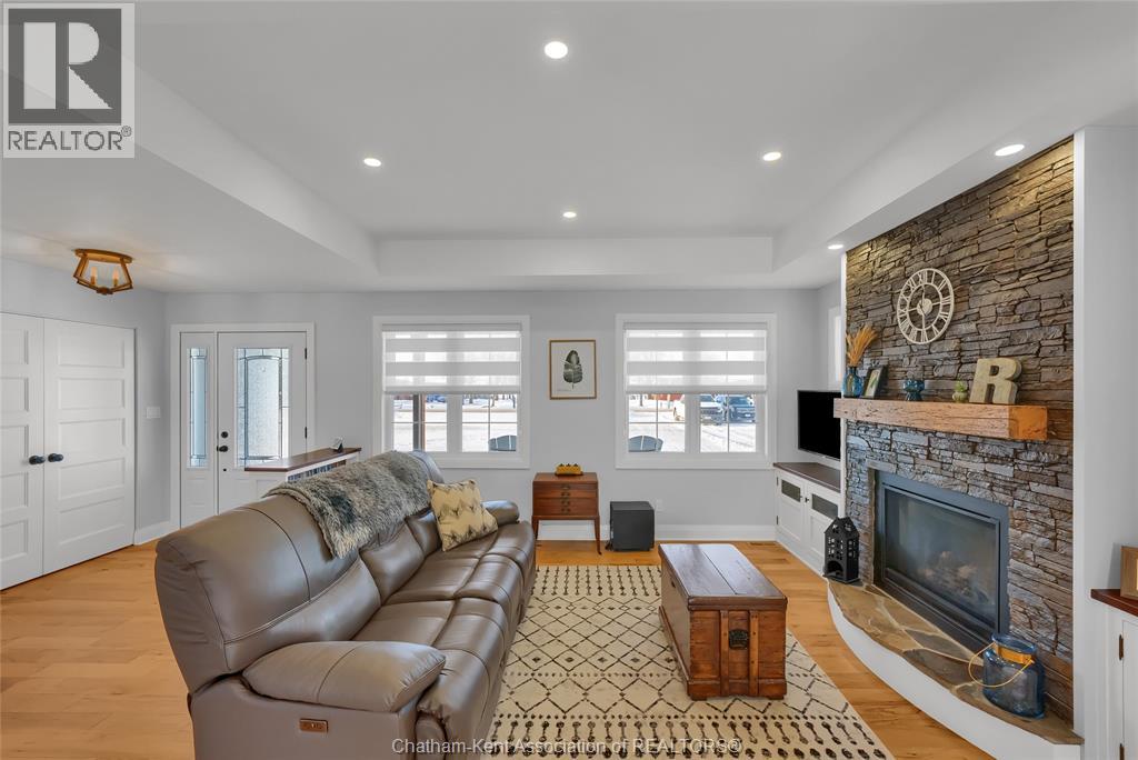 Get out of town! Seriously, take advantage of low taxes with full municipal services including sanitary sewer. This 2017 custom built 1600 sq ft ranch is a great alternative to urban living. Situated on an 85 x 154 ft lot, this 3+1 bedroom ranch has a 32x40 (1280 sq ft) insulated shop with heated floors and fully finished den area. Inside the house you will appreciate the partially open concept kitchen, dining and living area with stone surround gas fireplace and built-in cabinetry. Full tiled mudroom with custom coat rack and storage. The main floor is complete with hardwoods throughout living area and all three bedrooms. Primary bedroom has its own 3pc ensuite bathroom. Well appointed kitchen with custom backsplash, pantry, breakfast bar style island with sink and high-end ""superwhite"" quartzite countertops. Dining area is open to kitchen with sliding door to backyard. The fully finished basement adds approx 1350 sq ft of living space with large rec room, bedroom, laundry and 4 pc bathroom. Enjoy the benefits of semi-rural living with only 35 min drive to Costco in Windsor or 12 mins to Sobeys in Blenheim. Full 360° virtual iGuide tour of home and shop with floor plans and measurements. (55331957)