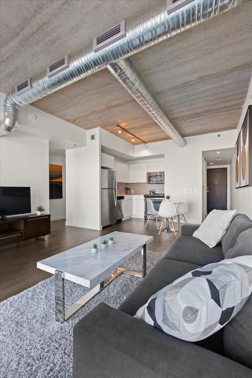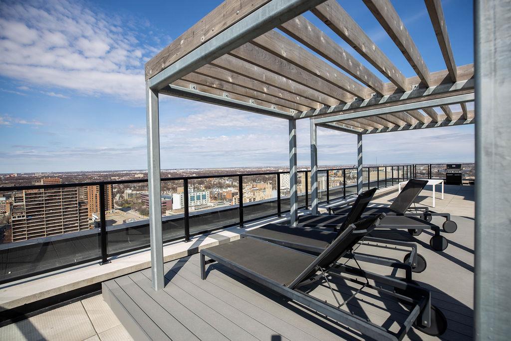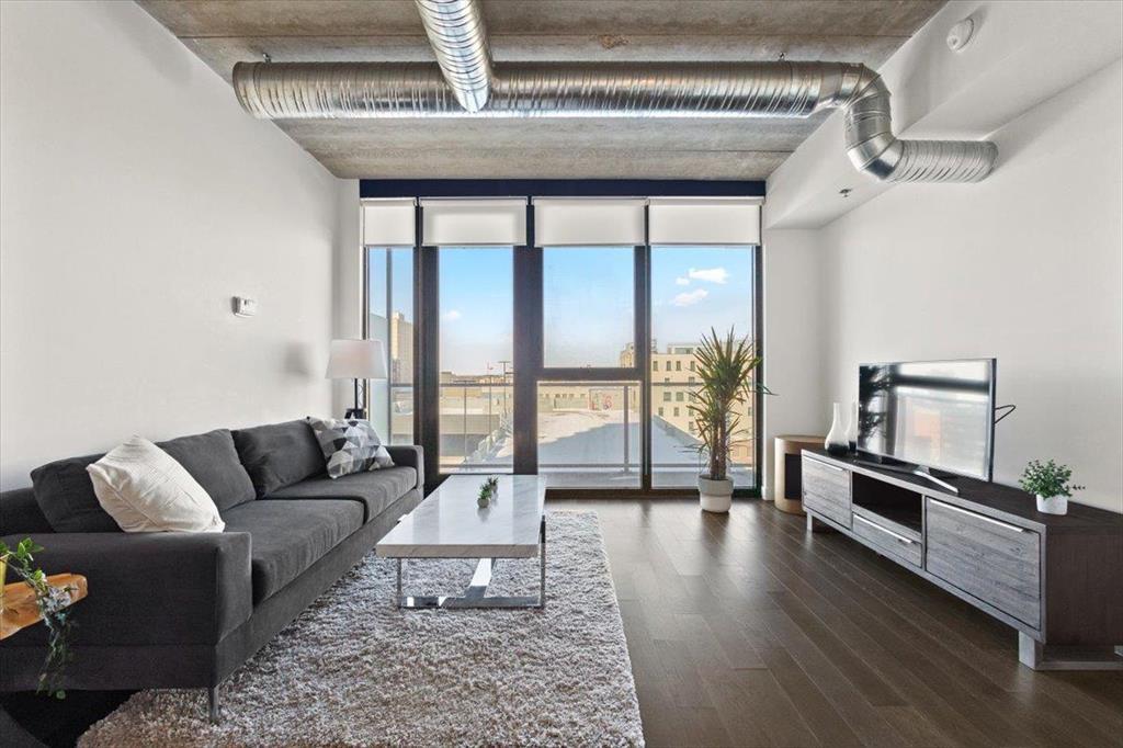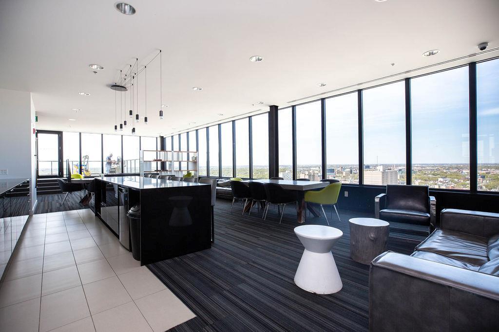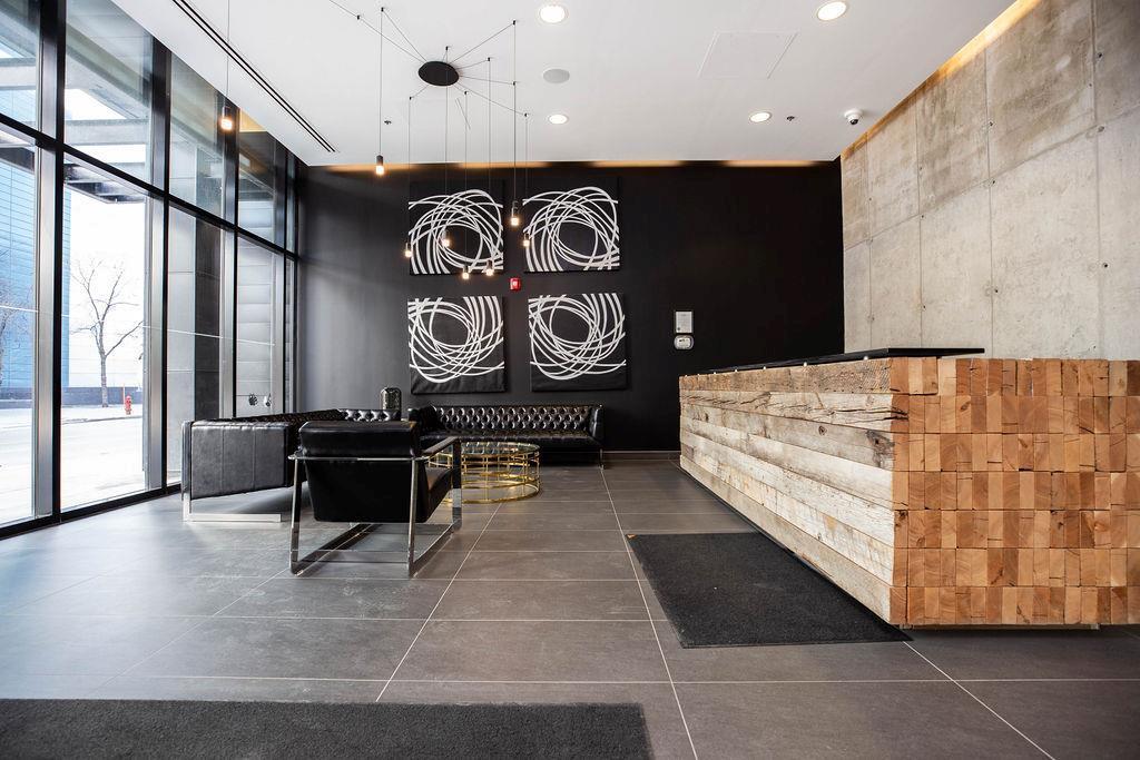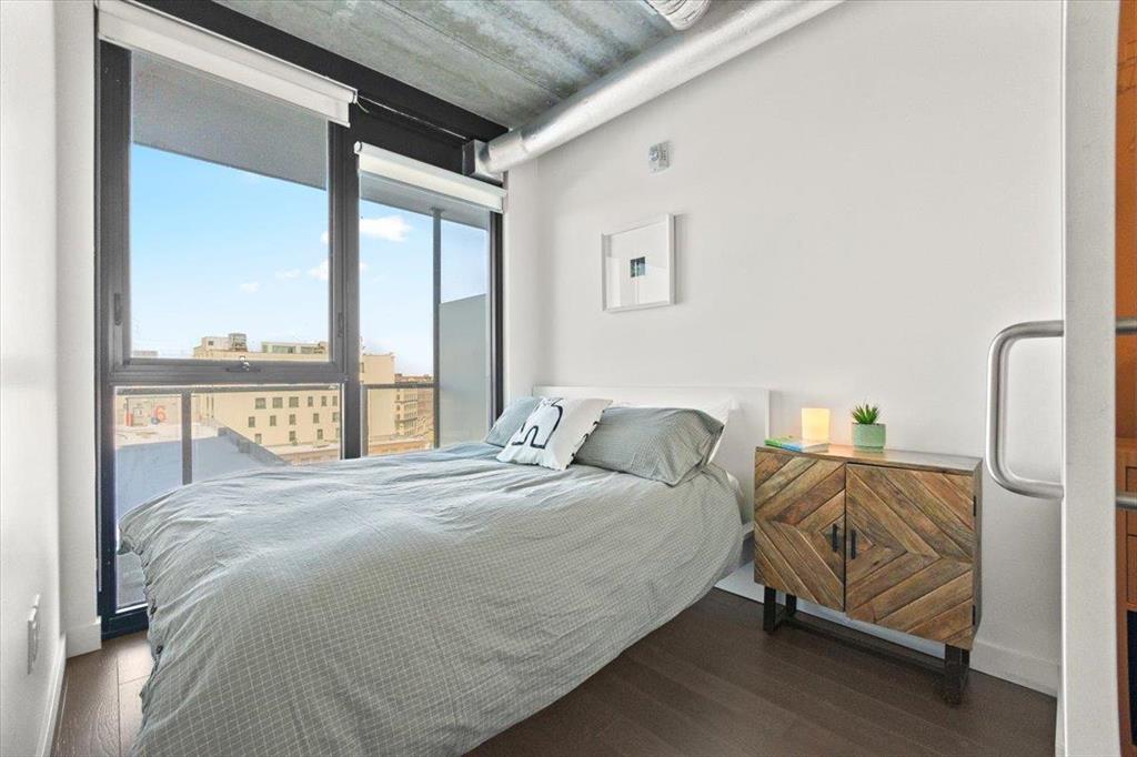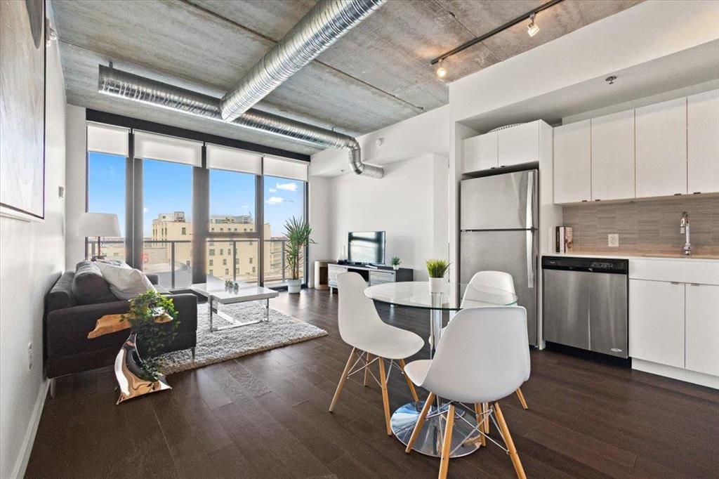 9A//Winnipeg/Stunning views from this 15th floor 1 bed/1 bath condo with a great layout and a huge balcony at Glasshouse Lofts! Floor to ceiling windows, high end finishings - engineered hardwood flooring, ceramic tile in the bathroom, high gloss cabinets, and stone countertops. Stainless steel whirlpool appliances in the kitchen, and in suite washer and dryer. Unbelievable building in the heart of Winnipeg's downtown, the ultimate of urban living. 21 floors with amazing amenities - rooftop patio and pavilion, 24-hour gym, theatre room and on site security personnel truly make this building one of a kind in all of Winnipeg. Whether you are looking for an investment, 1BR or 2BR suite, Glasshouse Lofts has something for everyone! Parking available to rent. Ask for details.*Photos are of similar unit, with similar finishings. Actual unit has slightly lighter floors. Photos will be updated asap* (231931639)