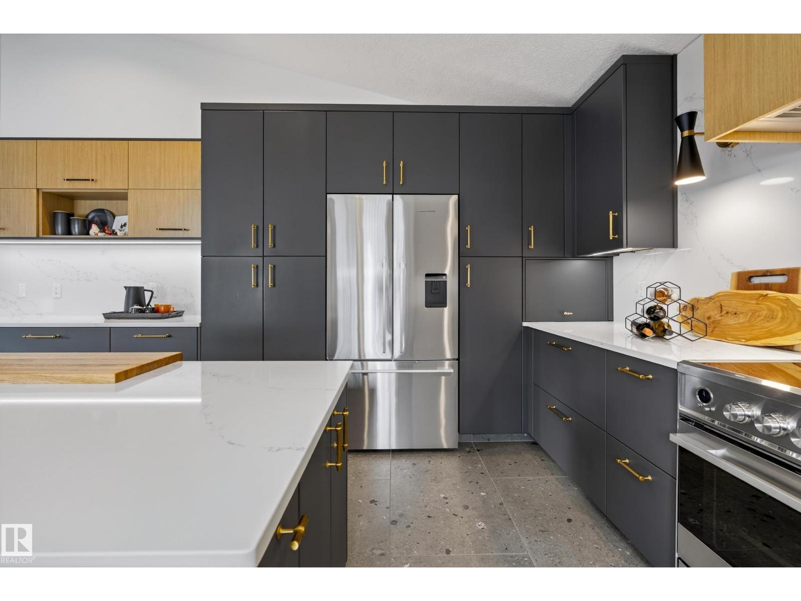 Fully renovated 1901 sqft home in the heart of Heritage Hills, offering a modern layout w/ 4 bedrms & 3 baths. Large windows and open living spaces centre around an award-winning Cucina Bella kitchen (2022) featuring Sollera cabinetry, pull-out storage, quartz countrs, Hanstone backsplash & Fisher & Paykel appliances, w/ porcelain tile flooring on the main floor. The primary bedrm occupies its own private level & includes a custom oversized WI closet & a 5pc ensuite w/ double sinks, deep soaker tub, & shower. The fully finished basement adds a 4th bedrm, bath, & rec room with in-floor heating. Outside, the landscaped backyard features a golf putting green, fruit trees, & gated access to walking trails leading to Heritage Hills School, playgrounds, soccer fields, and outdoor ice rinks, all within walking distance. Major upgrades include roof, gutters, exterior doors, furnace, AC, HWT, updated flooring, renovated baths, interior painting, and gemstone exterior accent lighting—making this home move in ready. (33801968)