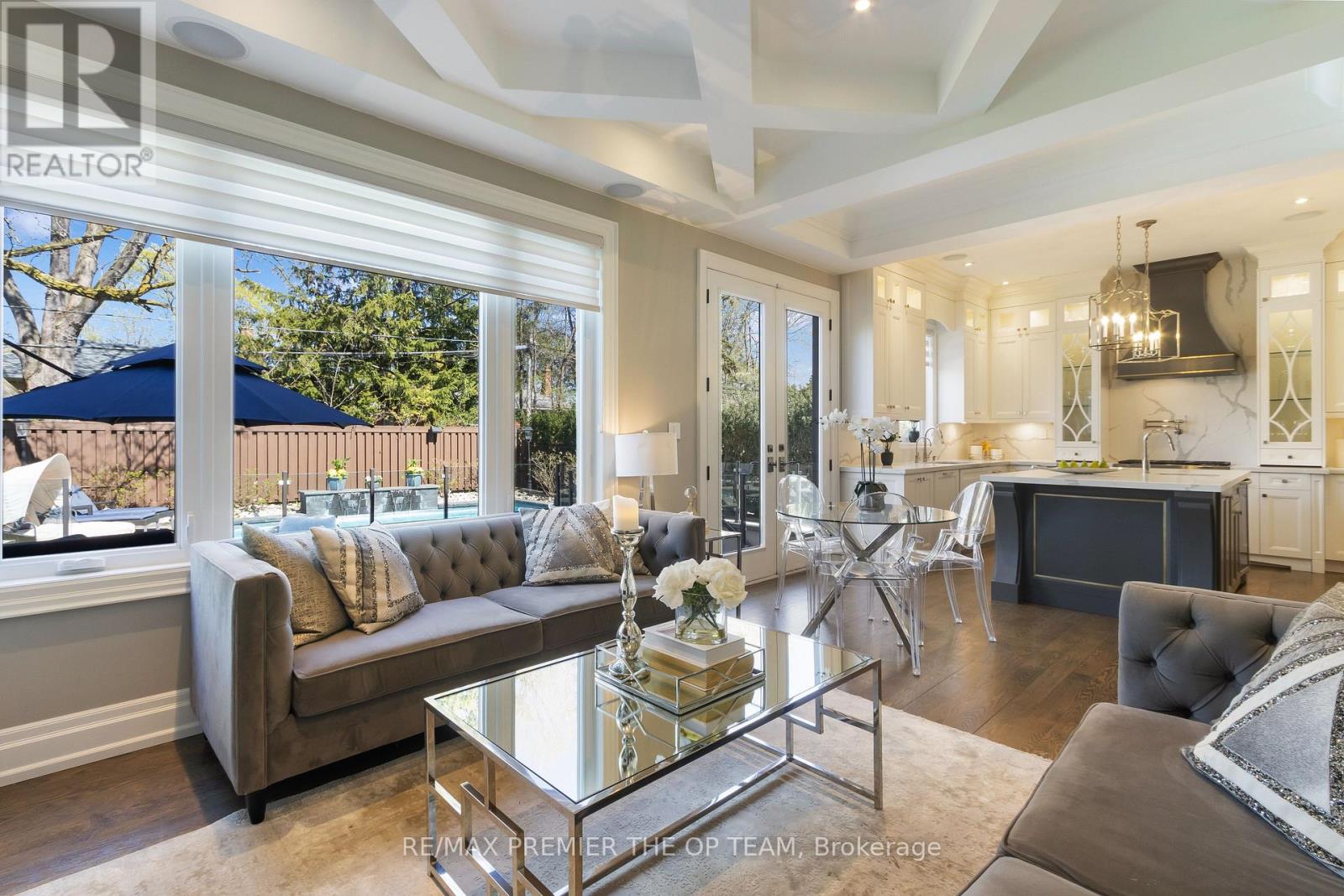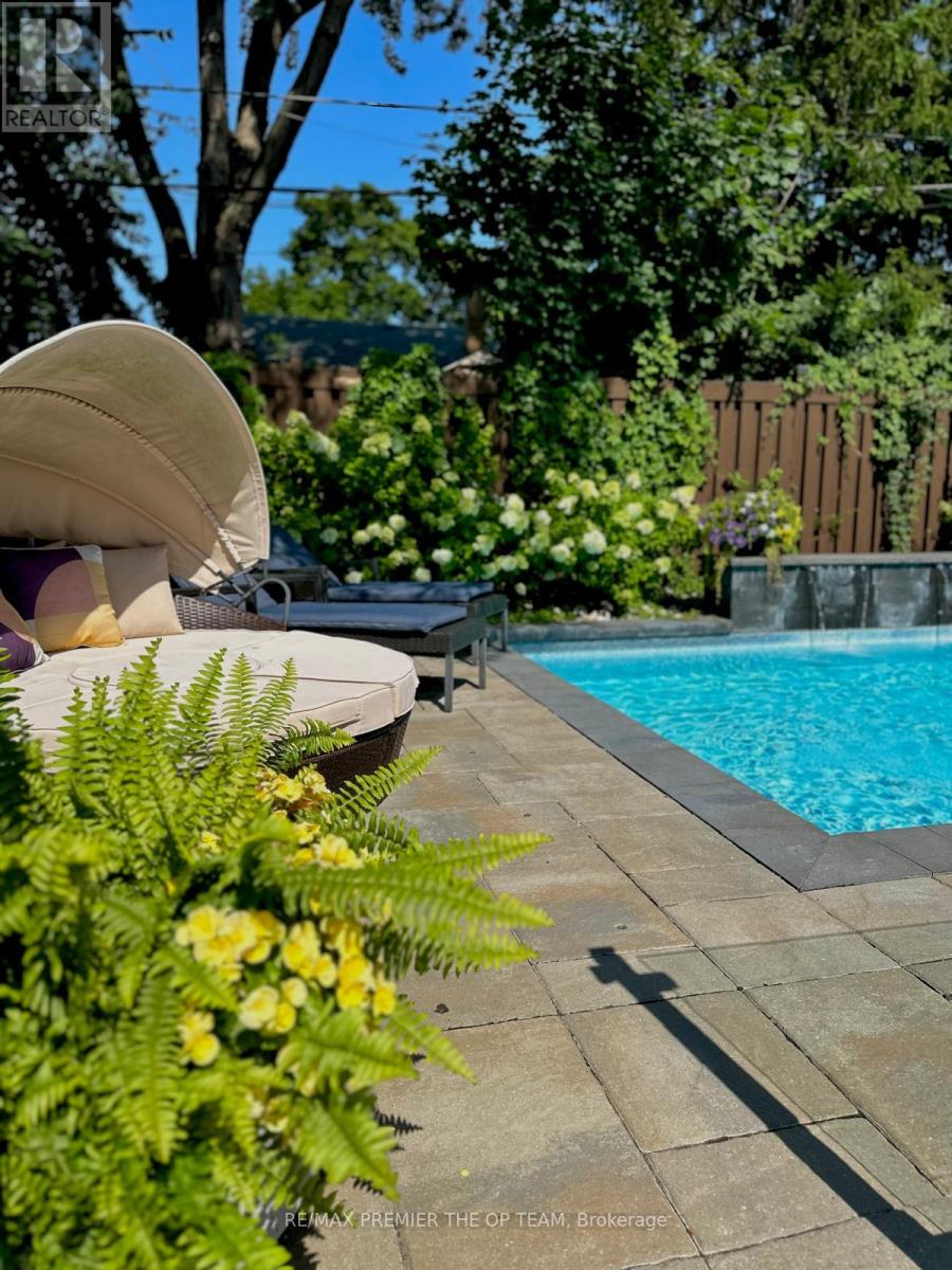Discover refined luxury in this stunning custom-built home with 3500 sf of living space in Etobicoke's sought-after West Deane neighbourhood. Featuring elegant limestone accents and impeccable craftsmanship throughout, this residence offers 10' ceilings on the main level, 9' ceilings on both the second floor and finished basement, and soaring 11' coffered ceilings in key areas. Enjoy rich hardwood floors, custom drapery, and a sun-filled skylight over the staircase. The chef-inspired kitchen boasts quartz countertops, premium appliances, and is perfect for both everyday living and entertaining. The primary suite features heated floors for year-round comfort, while the walk-out basement adds functional living space for relaxation or gatherings around the In-ground saltwater pool. Smart upgrades include recessed ceiling speakers with a 5-zone amplifier on the main level, as well as integrated speakers in the primary suite and basement. The home also offers a 2-car garage with EV charging, and a gas BBQ hookup for outdoor enjoyment. Ideally located close to top-rated schools, parks, trails, golf courses, major highways, and shopping. This home blends luxury, comfort, and convenience in the heart of Etobicoke. (42092414)