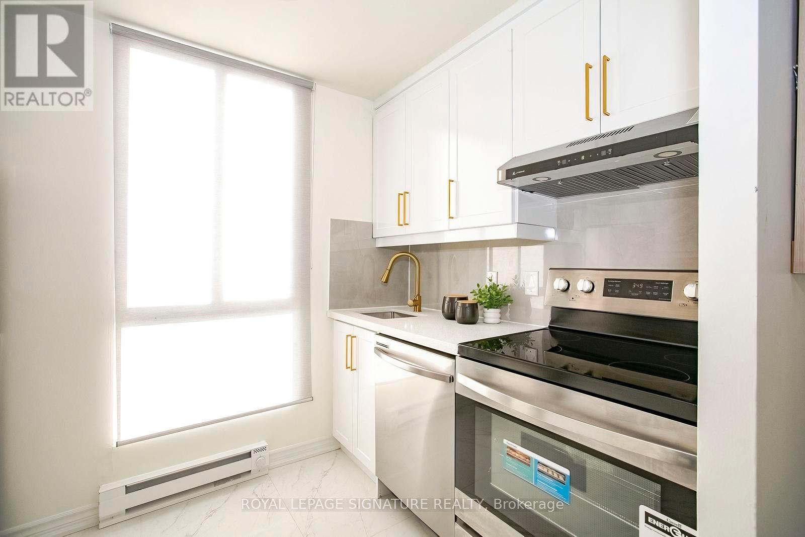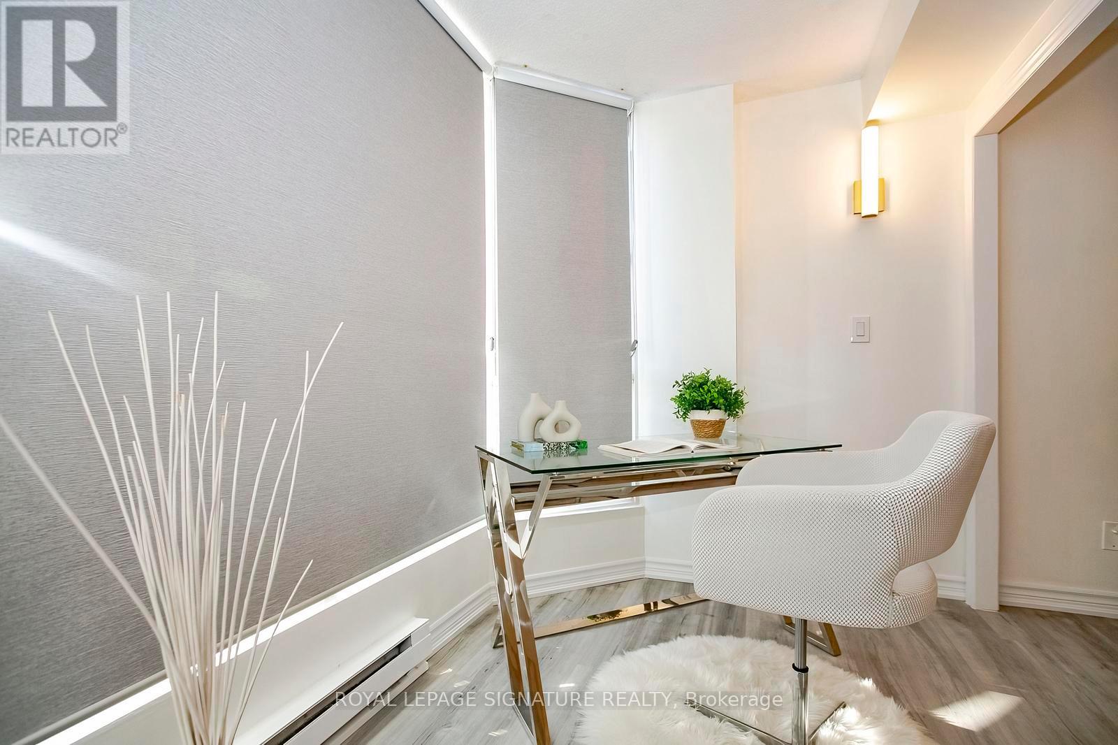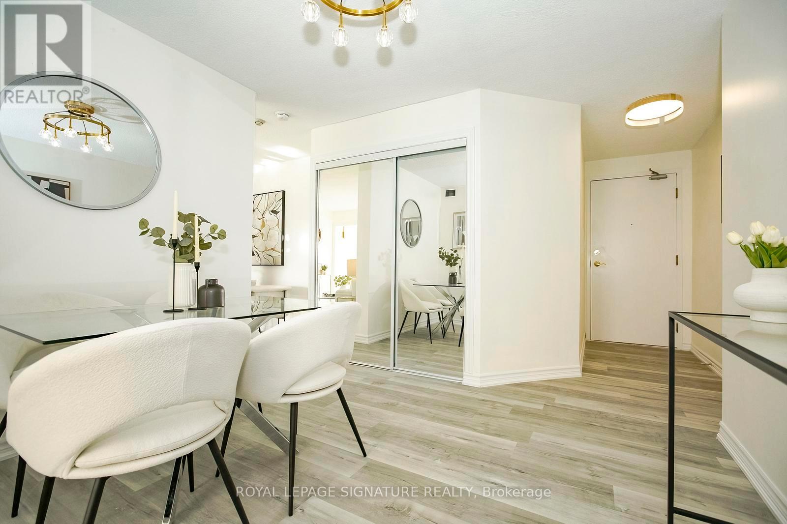 Step into elevated condo living in this stunning, fully renovated 1+1 bedroom with solarium, showcasing spectacular unobstructed views in one of Mississauga's most desirable communities. Thoughtfully redesigned and freshly painted in premium Benjamin Moore colours, this like-new condo features a bright, modern layout with separate living and dining areas and a versatile solarium ideal for a home office or second bedroom. The brand-new chef-inspired kitchen impresses with quartz countertops, soft-close cabinetry, elegant gold hardware, stainless steel appliances, porcelain flooring, and a designer backsplash. A spa-inspired bathroom, modern roller blinds, and mirrored closets complete there fined interior. Enjoy premium building amenities including 24-hour concierge, fitness centre, sauna, rooftop deck, party room, tennis and squash courts. Low maintenance of $427 includes parking, offering exceptional value. Located just steps to Cooksville GO Station with a 20-minute express train to Union Station, excellent GO bus access, and walking distance to the upcoming Hurontario LRT. Close to Square One, top schools, parks, Trillium Hospital, shopping, groceries, and more. Be the first to enjoy this beautifully renovated, move-in-ready condo - a rare opportunity for first-time buyers and savvy investors alike. (42092591)