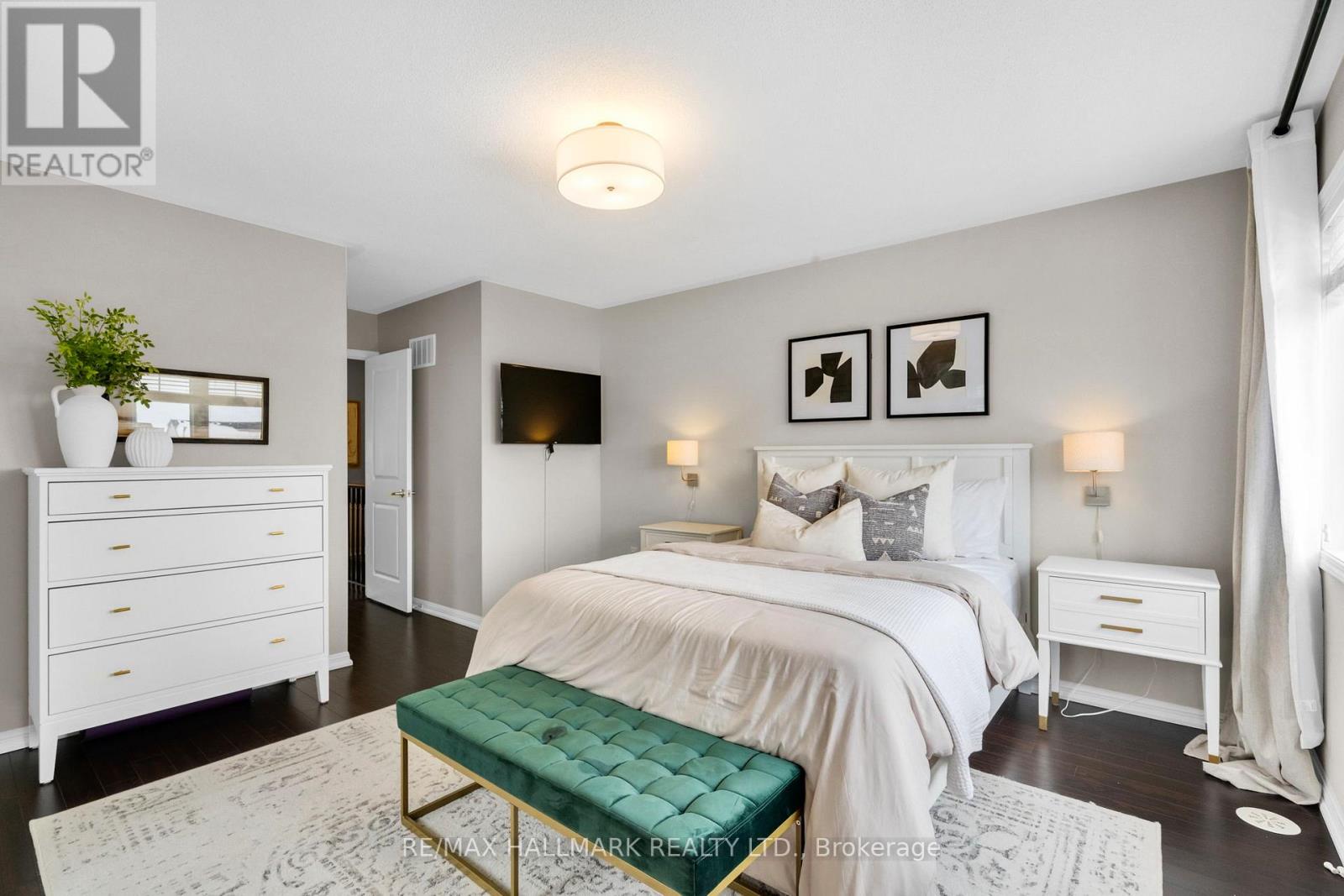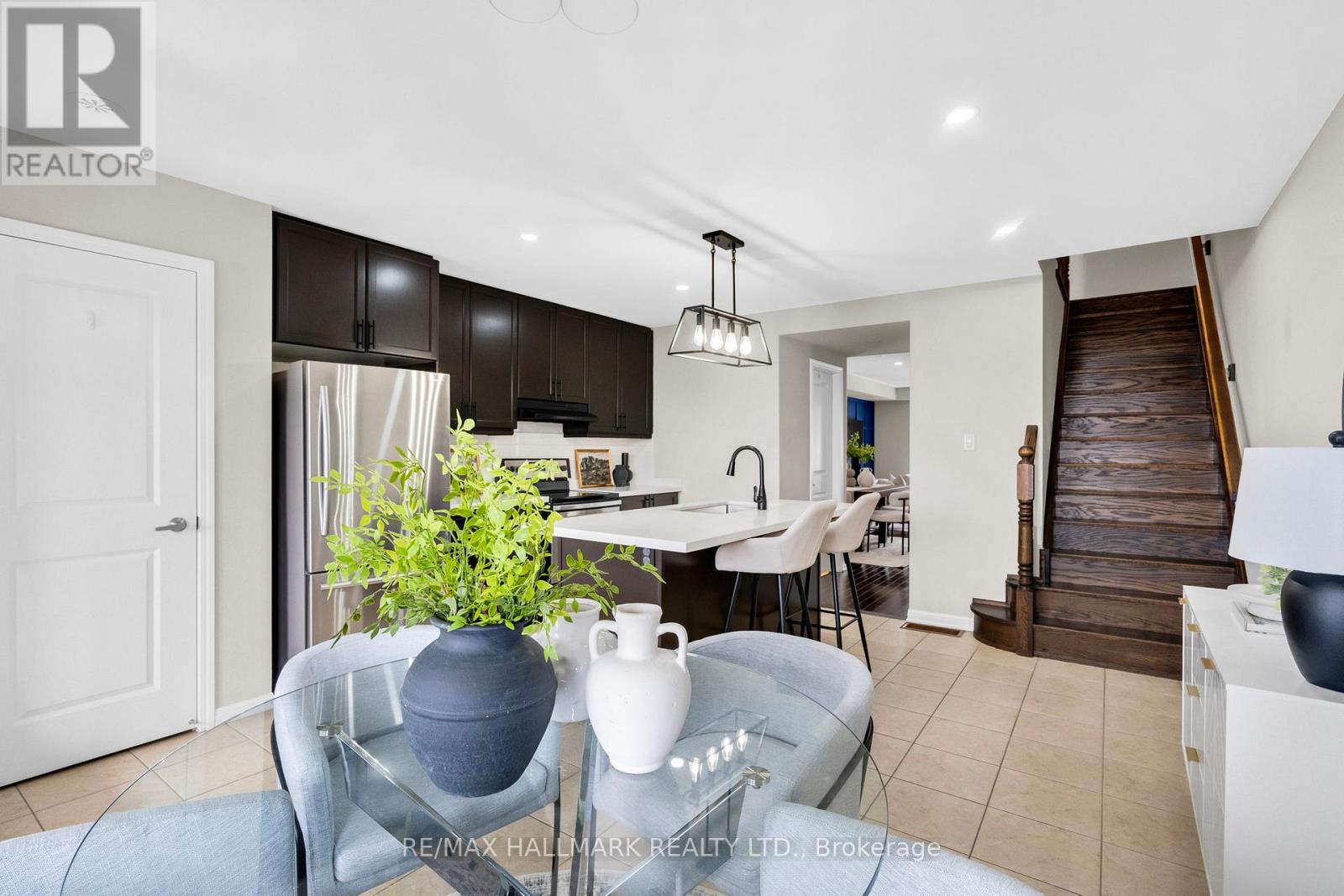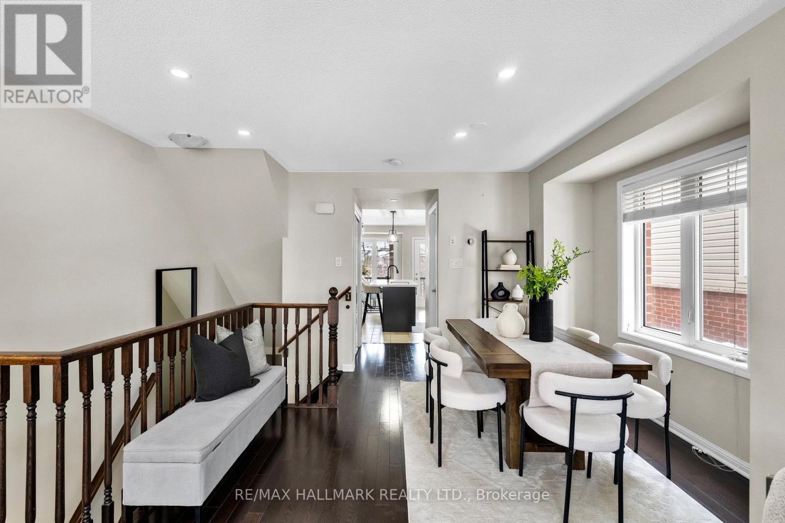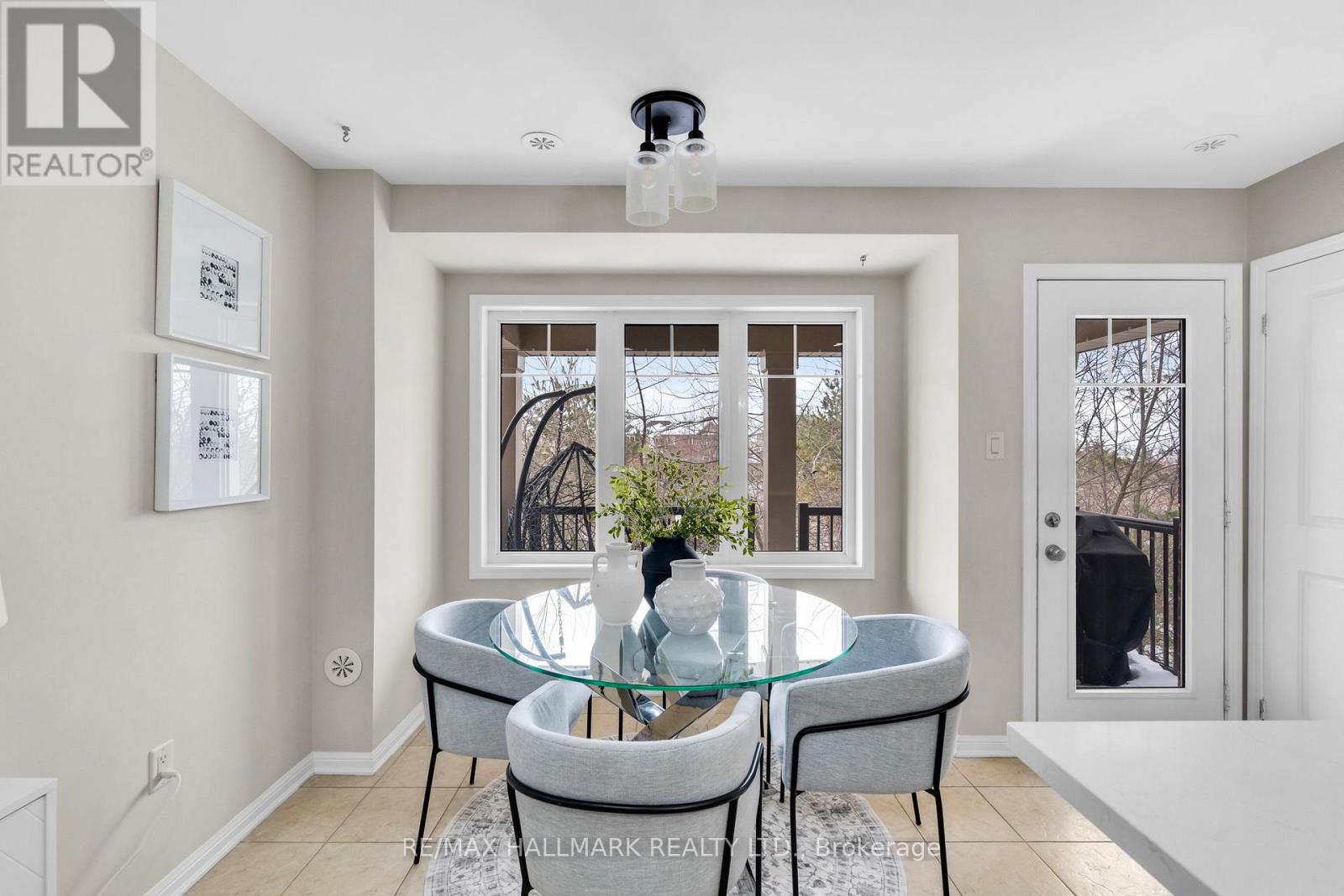 A bright and beautifully positioned end-unit townhome backing onto ravine greenery! A rare layout that feels more like a semi. Flooded with natural light from its many windows, this home offers tranquil views of the Niagara Escarpment. This 3 bedroom, 3 bathroom home features a bright, open-concept living and dining area, the perfect space to relax or entertain. The main floor is finished with hardwood flooring and a beautiful oak staircase. The kitchen is both functional and inviting, featuring quartz countertops, stainless steel appliances, solid wood cabinetry, and a pantry. A rare covered balcony through the kitchen makes BBQing effortless, with easy indoor-outdoor flow. The primary bedroom offers his and her closets and a charming getting-ready nook, ideal for a desk or vanity. Both additional bedrooms enjoy direct access to a bathroom, with upgraded flooring in all the bedrooms, renovated second-floor bathrooms, and plenty of storage throughout the home. The main level also features a cozy backyard, a rare bonus and the perfect private outdoor space to unwind. Conveniently located near schools, parks, grocery stores, Milton District Hospital, Milton GO, Wilfrid Laurier University Milton Campus (coming soon), Rattlesnake Point, Sherwood Community Centre, and the future Tremaine Rd 401 ramp (Fall 2026). A peaceful setting, a hard-to-find layout, and a home that truly doesn't come up often. (42092596)