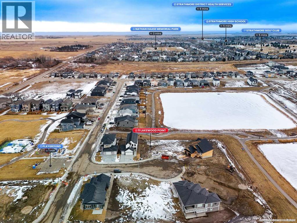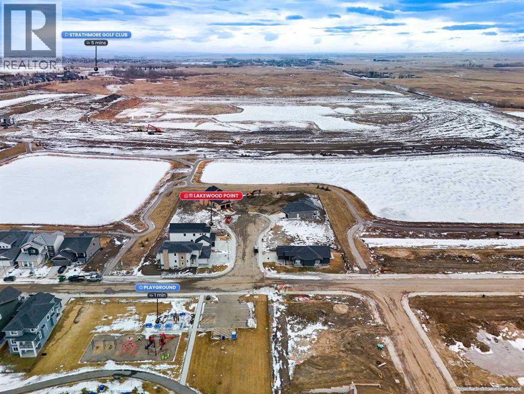 Welcome to an exceptional opportunity in Lakewood, one of Strathmore’s most picturesque and thoughtfully designed communities. Built by Dhaduk Homes, this future bungalow sits quietly in the cul-de-sac of Lakewood Point, backing directly onto the pond with peaceful east facing water views and west facing curb appeal out front. Life in Lakewood is centered around connection and the outdoors, with scenic walking paths, beautiful canal and water views, playground, and community spaces including pickleball courts, all designed to make it easy to enjoy fresh air, movement, and time with neighbours and family. A welcoming front porch sets the tone, inviting you into a home designed for both comfort and connection. The spacious foyer offers an immediate sense of arrival, with a bedroom and full bathroom nearby that is perfect for guests, family, or a home office. As you move into the heart of the home, the space opens into a bright and airy living room. The living room, kitchen, and dining area flow seamlessly together, creating an ideal setting for everyday living and entertaining. The kitchen features a large island, a generous walk in pantry, and easy access to the dining area, where patio doors lead out back toward the pond, making indoor outdoor living feel effortless. Tucked privately at the rear of the home, the primary suite is designed as a relaxing retreat. It includes a walk in closet and a beautiful ensuite with an enclosed shower and a freestanding tub, offering a spa like experience at the end of the day. The double attached garage gives you flexibility for storage, hobbies, or larger vehicles. The basement will be fully developed, with 3 additional bedrooms, 2 bathrooms, a full bar area, a utility room, and a large entertainment area that connects to a covered patio. Construction has not yet begun, with an estimated build timeline of 6 to 8 months to possession once underway. This is a rare chance to get in early, personalize your selections, and build a home that perfectly matches your lifestyle in a quiet, water backing location, surrounded by the best of Lakewood living. (31611741)