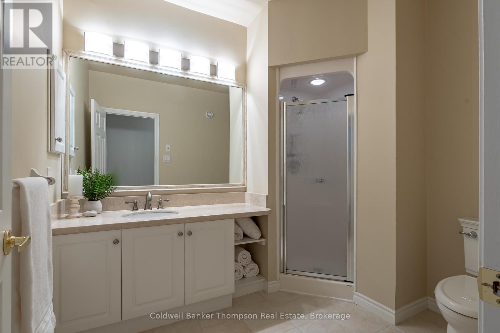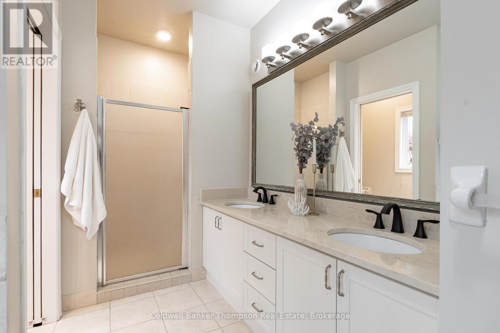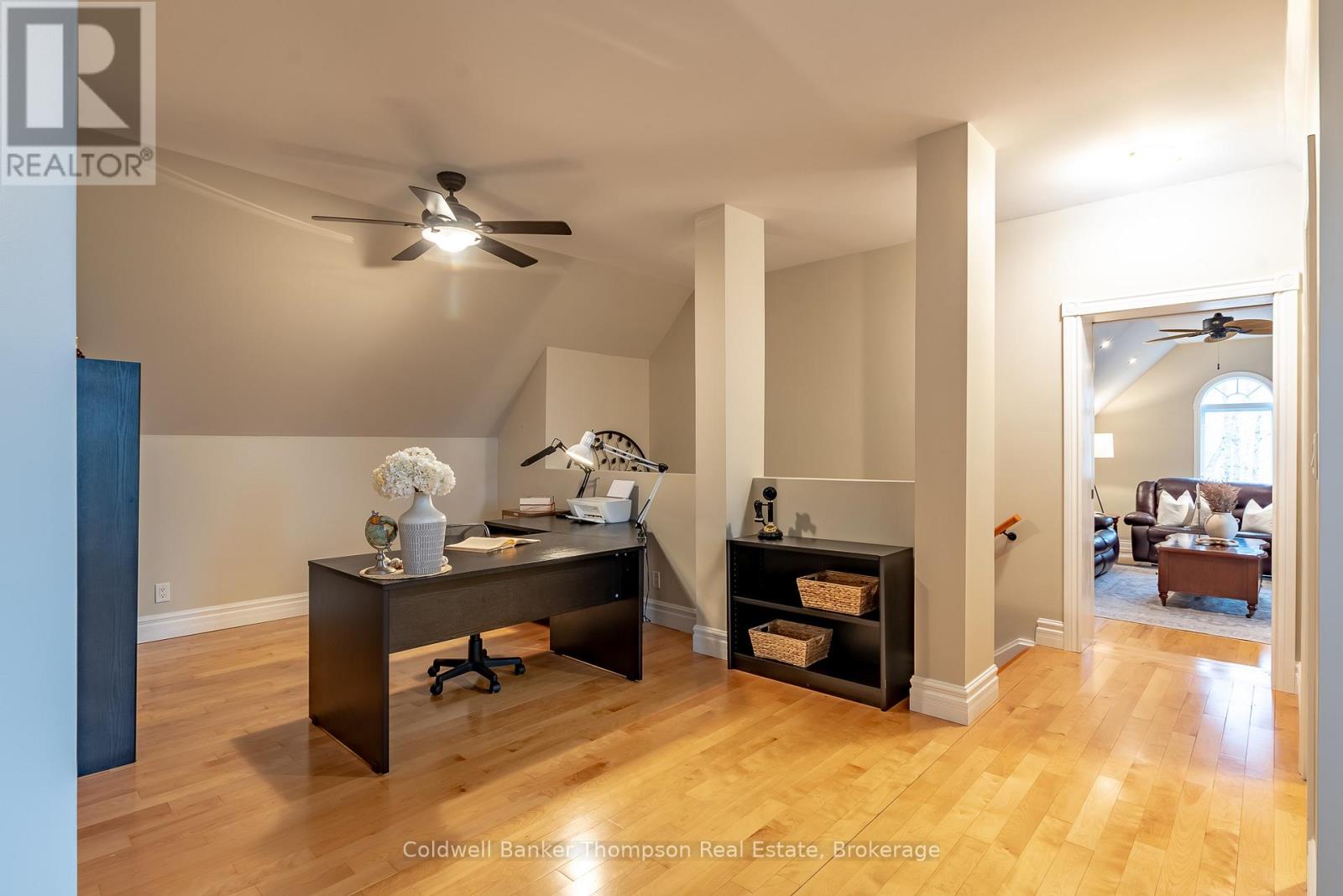 At the end of a quiet cul-de-sac, a meandering driveway leads through the trees to a stately home, accented by a covered front porch & classic dormer windows. Inside the spacious foyer, the formal dining room sits to the right, while the living room opens ahead, featuring a stone-accented wood-burning fireplace & a vaulted ceiling with faux wood beams. The kitchen offers granite counters, a propane cooktop, a built-in raised oven & microwave, & ample cabinetry, perfect for everyday cooking & entertaining. From the living room, two separate hallways extend to the guest bedrooms, creating excellent privacy. One hallway leads to a guest suite with a walk-in closet & 4pc ensuite. The other hallway connects to a second bedroom with an adjacent 3pc bathroom & a nearby den, ideal for quiet work or reading. On the opposite side of the main floor, the large primary suite feels like its own retreat, complete with a walk-in closet, faux-beam-accented vaulted ceilings, & a 5pc ensuite featuring a jetted soaker tub, shower stall, water closet, & double-sink vanity. Upstairs, the family room, with its propane fireplace, offers a comfortable gathering space, complemented by a convenient 2pc powder room. Beyond this, a generous open area is currently arranged as two separate office spaces, perfect for work-from-home flexibility or creative pursuits. Bell Fibre is installed at the property, providing excellent connectivity. Outdoors, the property enjoys private, deeded access to Peninsula Lake, shared with only two neighbouring properties, via a private, cleared hiking trail. The trail leads to a hard-packed sand entry & a private dock, offering a simple, convenient spot to launch a canoe or kayak, or even to dock your boat. The northeast boundary of this property adjoins the protected Pen Lake Farms Nature Reserve, creating a peaceful natural buffer & enhancing the quiet surroundings. This home offers thoughtful design, privacy, & a rare opportunity for private waterfront access. (42092751)
