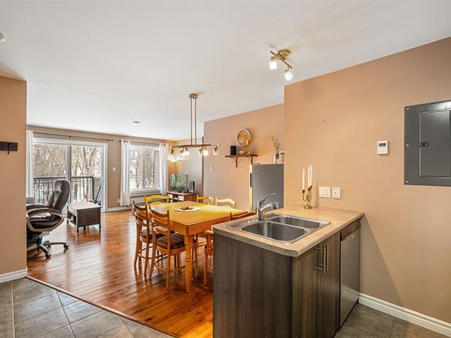 Magnifique condo situé au 3e étage, offrant un emplacement dans un quartier prisé et recherché, à distance de marche de tous les services essentiels. L'aire de vie ouverte, chaleureuse et lumineuse, crée une ambiance conviviale et moderne. On y retrouve 2 chambres de belles dimensions, idéales pour une famille ou un couple. La belle et grande salle de bain comprend un bain podium et une douche en céramique. Planchers de céramique chauffants dans la cuisine et la salle de bain pour un confort ultime. Balcon privé, 1 espace de stationnement (poss. de location d'un 2e) et rangement intérieur complètent ce condo soigneusement entretenu! (45336108)