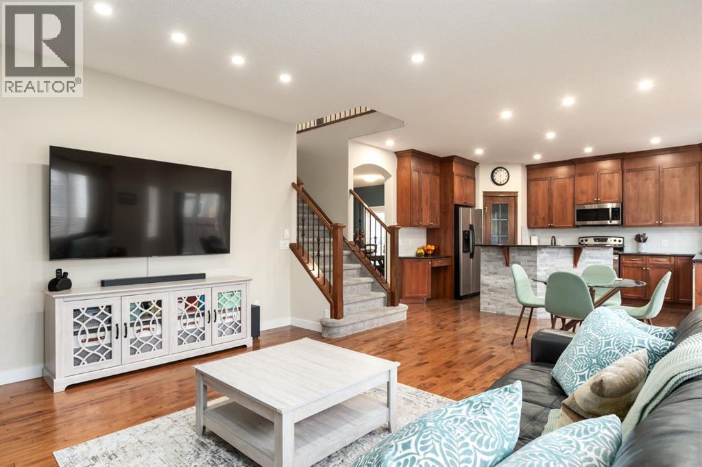*OPEN HOUSE SATURDAY FEB 7TH 12:00-3:00PM & SUNDAY FEB 8TH 11:00-2:00* Beautiful family home seeking new owner! Located on a quiet and well established street in Rainbow Falls, within walking distance to all amenities. You will be immediately impressed by the spacious entrance and bright, natural light. The main floor boasts HARDWOOD FLOORS, an open floor plan, and a cozy GAS FIREPLACE with floor-to-ceiling tile. The kitchen is set up perfectly for cooking and entertaining, with ample cabinet space, GRANITE COUNTERTOPS, STAINLESS STEEL APPLIANCES and a spacious pantry. RENOVATED 2pc guest washroom, dining room and laundry room complete the main floor. Head upstairs and you will find 3 spacious bedrooms and a large bonus room. Primary bedroom has an awesome walk-in closet and 5pc ensuite, equipped with dual vanities and a relaxing SOAKER TUB. Partially finished basement is framed and roughed-in for a bathroom and wet bar. All it needs is your creative touch! You will enjoy hanging in your sunny SOUTH FACING BACKYARD, featuring a large deck with BBQ gas line, stamped concrete patio and huge garden shed. Mature landscaping provides privacy. Other notable features include: OVERSIZED DOUBLE CAR GARAGE, CENTRAL AIR CONDITIONING, water-filtration system, NEW dishwasher and some updated carpet and tile flooring. This family friendly community is the perfect place to settle. Within walking distance to the Elementary school, Middle school, Seagreen community gardens, hockey rink, skate park, community waterfalls and Chestermere Lake - You will LOVE living here! Book a showing before it's too late and CHECK OUT THE 3D VIRTUAL TOUR! (31613464)
