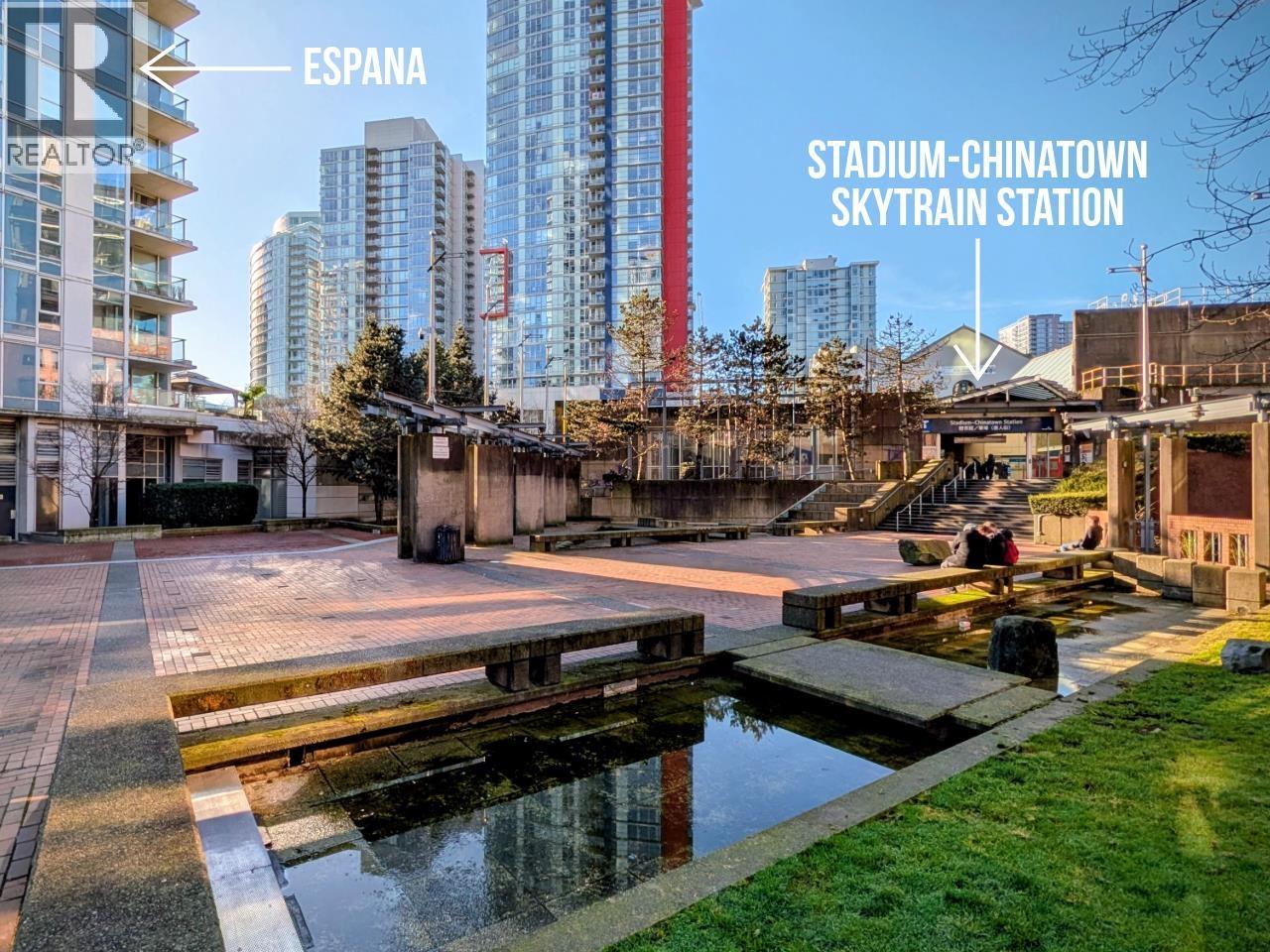 Welcome to Espana in vibrant Crosstown-steps from the stadiums, restaurants & nightlife, shopping, and the SkyTrain. This investor-friendly building permits long and short-term rentals, and its prime location close to BC Place and public transit offers strong revenue potential during the upcoming 2026 FIFA World Cup. This bright 2-bedroom, 2-bathroom corner unit has an open layout with large windows that fill the space with light. The home features a modern kitchen with stainless steel appliances and stone counters, a primary suite with en-suite bath and double closets, an office/flex space, ample storage, in-suite laundry, and a balcony with city & mountain views. Over 11,000 sq.ft. of amenities: concierge, pool, sauna, whirlpool, gym, theatre, and more. 1-parking & storage locker are included. Contact your REALTOR® to view, or stop by the OPEN HOUSE 1:30-3:00 PM ON SATURDAY, FEBRUARY 7. (32416859)
