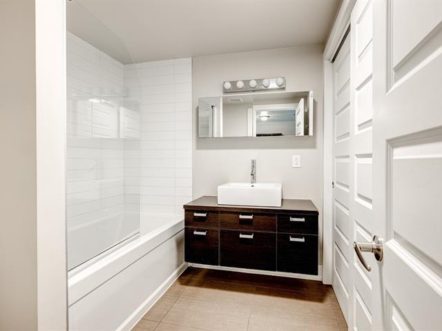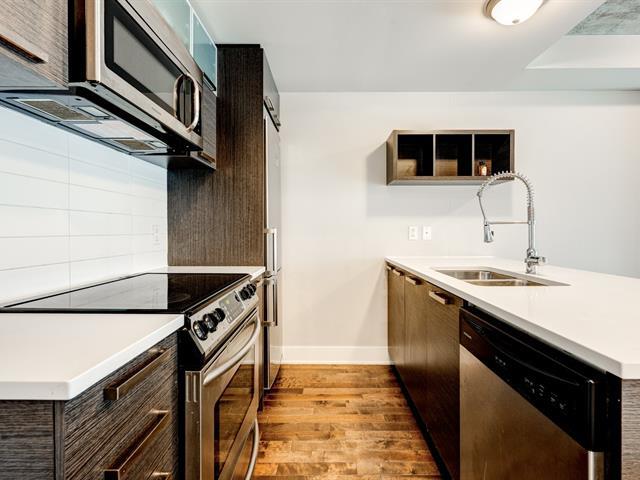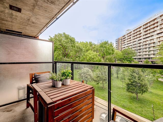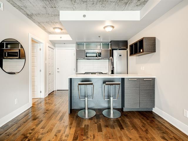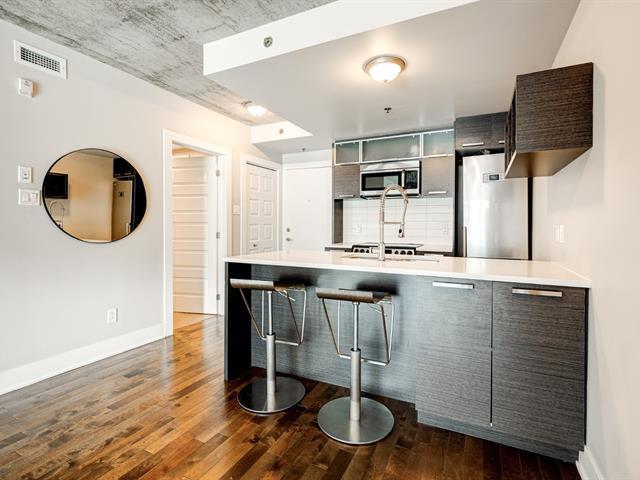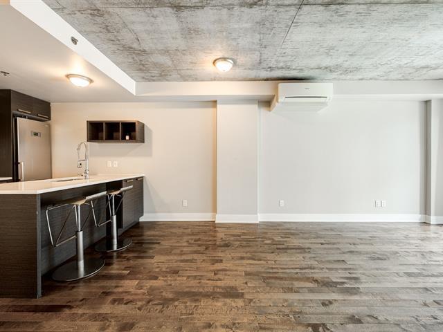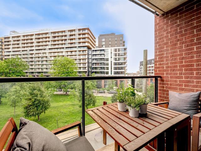 PRIME LOCATION** Prestigious condo located at Carré de la Montagne, in the heart of Griffintown and close to all amenities! Situated on the 4th floor of a modern building with a unique architectural design, this stylish urban condo offers high-end finishes, one bedroom, a dedicated office space, high exposed concrete ceilings, and a spacious bathroom with integrated laundry. Huge windows flood the living areas and bedroom with natural light, while the large glass balcony provides a beautiful view of St-Ann Park and southwest exposure. Ideally located, just steps from all services, the metro, the REM, and the REV (express bike network). (55908486)