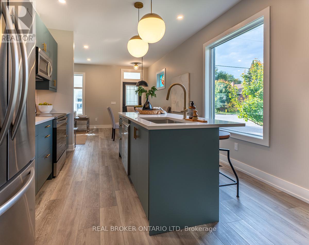 Finding a move in ready home on an extra wide corner lot in Carling Heights is rare. Finding one with space that offers the opportunity for an addition, lot severance or an ADU is even better. This is a property that works for you now and gives you real options to grow your value over time. Inside, the open kitchen, living, and dining area is made for everyday life. The kitchen is bright, modern, and finished with brand new stainless steel appliances and a huge island that easily handles baking days, homework sessions, and hosting friends. The living room fireplace makes it an easy place to relax when the weather cools off. The main floor layout is practical and hard to find. You've got a spacious primary bedroom with its own ensuite, two additional bedrooms, a full family bath, a dedicated home office, and a convenient laundry nook all on the same level. The enclosed front porch is bright and flexible, perfect as a mudroom, bonus office, or sunny hangout space. Stained glass windows, made by a previous owner, add character you just can't fake.Out back, the patio is ready for summer dinners while the kids play in the yard. Renovated from top to bottom, this is the kind of home you can move into right away, with a lot that gives you room to think bigger down the road. (42093133)