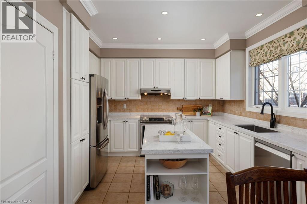 Beautifully maintained and updated Mattamy-built 'St Andrews' model home for sale in Oakville, ideally located on a private, pool-sized corner lot in the highly sought-after West Oak Trails community. Set within a top-rated school catchment with several schools within walking distance, and surrounded by parks, playgrounds, and scenic trails, this is an ideal family-friendly neighbourhood. Minutes to Oakville Trafalgar Memorial Hospital, shopping, dining, and everyday amenities, with quick access to the QEW, 407ETR and GO Station for commuters. Professionally landscaped grounds feature mature trees, lush gardens, an interlocking stone walkway (2017), and a fully fenced backyard oasis with landscape lighting, a large deck and lower patio-perfect for outdoor entertaining. This bright home offers 4 bedrooms, 2.5-bathrooms and an elegant, yet functional floor plan with oversized wi 9-foot ceilings, hardwood flooring, crown mouldings, and added pot lights. Upgraded model with dining room bay window, Palladian window in loft plus 6 additional south facing windows. A dramatic two-storey living room flows into the dining area, while the redesigned family room (2017) features a gas fireplace, custom built-ins, and serene backyard views. The updated kitchen (2025) showcases refaced cabinetry, quartz countertops, stainless steel appliances, pull-out organizers, and a generous breakfast area with a walkout. Upstairs includes a loft with a cathedral ceiling, four spacious bedrooms, and two luxurious bathrooms, including the primary suite with a renovated 5-piece ensuite (2020) featuring a freestanding soaker tub and glass shower. The immaculate lower level offers potential for additional living space and has a rough-in for a future bathroom. The list of improvements is extensive, making this home move-in ready with exceptional long-term value in one of Oakville's most desirable neighbourhoods. (70132649)