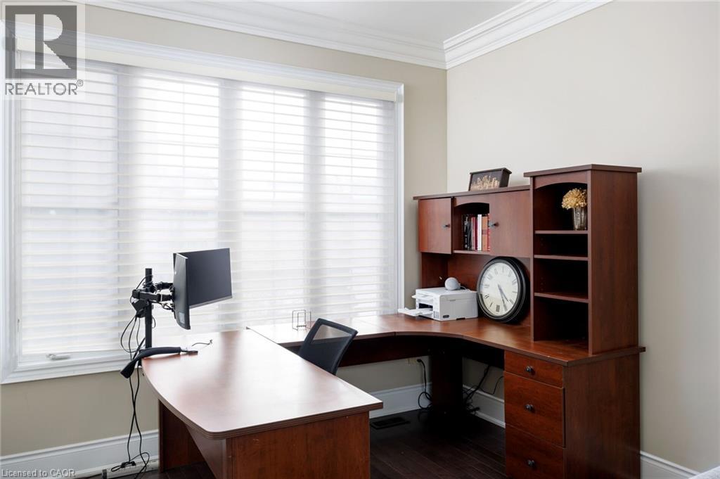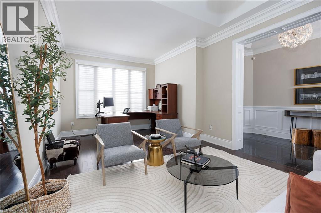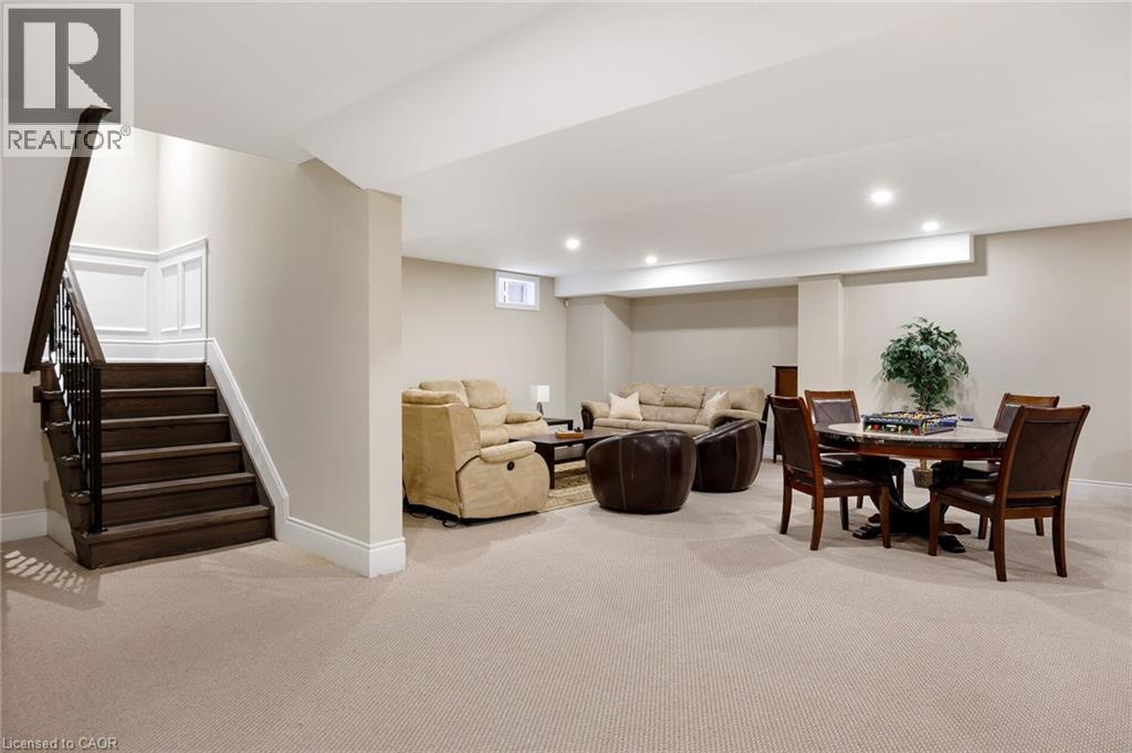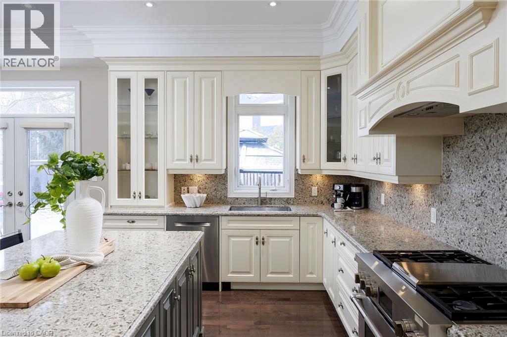 This prestigious southwest Oakville custom home offers luxury living on a large, private pie-shaped lot at the end of a quiet court off Lakeshore Road backing onto mature trees and the YMCA grounds. Ideally located between Oakville Harbour and Bronte Harbour, the property offers quick access to Lake Ontario waterfront parks and beaches, downtown Oakville, Bronte Village, and Appleby College, as well as convenient commuter access to the QEW and Bronte GO Station. The striking exterior features a stately stone façade, precast stone accents, a covered front entry, soffit lighting, and a stone-lined driveway leading to an attached double garage with inside entry. The deep, private backyard, with mature trees, features a newly installed stone patio and ample green space. Offering approximately 3,430 sq. ft. of finished living space, this 4+1 bedroom, 4.5-bathroom home impresses with 10-foot main-floor ceilings, smooth, coffered, and tray ceiling details, deep crown mouldings, custom cabinetry, upgraded lighting, medium-stained hardwood floors on two levels, and a solid oak staircase with iron pickets spanning three levels. Main-floor living includes a spacious living room, formal dining room, and an elegant family room with a coffered (waffle) ceiling and gas fireplace. The chef’s kitchen offers extensive custom cabinetry, stone counters and backsplash, under-cabinet lighting, an island with a breakfast bar, deluxe appliances, and a bright breakfast room with a walkout to the patio. All second-floor bedrooms feature ensuite bathroom access, including a luxurious primary suite with two walk-in closets and a spa-like 5-piece ensuite with a freestanding tub and glass shower. The professionally finished basement offers expansive open-concept living, including a recreation/games room, a fifth bedroom, and a 3-piece bathroom. (70132096)