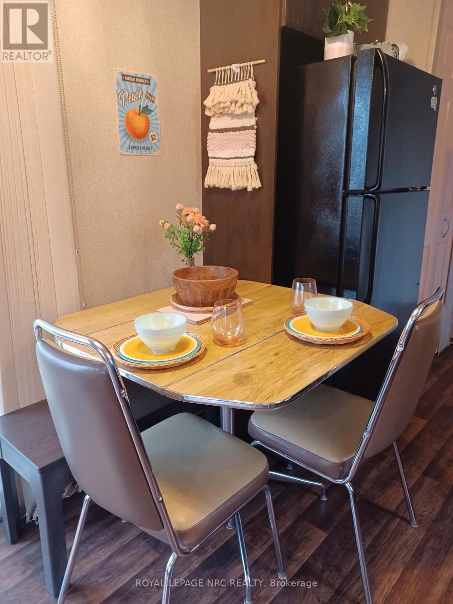 Exceptional Investment Opportunity in Niagara-on-the-Lake Introducing Unit 514 at 1501 Line 8 Road, a delightful and fully-furnished resort cottage that offers both comfort and rental potential. Situated in the sought-after Vine Ridge Resort, this two-bedroom, one-bathroom cottage is the perfect retreat for relaxation or investment. The resort operates from May 1st to October 31st and features a variety of impressive amenities, including an inground pool, splash pad, multi-sports courts, picnic areas, playground, Kids Club, and convenient on-site laundry facilities.Upon entering, you will be greeted by a bright and spacious interior with an abundance of natural light. The open-concept design is highlighted by neutral colours throughout, complemented by modern laminate flooring and stylish lighting fixtures. The well-equipped kitchen boasts laminate countertops, black appliances, ample storage, and a breakfast bar with seating for two perfect for casual dining. The living room is generous in size and offers vaulted ceilings, along with direct access to the expansive deck.The two bedrooms have been thoughtfully designed, including a primary bedroom with plentiful closet space and a second bedroom with inventive sleeping arrangements, featuring a bunk bed. The four-piece bathroom adds further convenience and comfort to the space.The oversized deck is ideal for both entertaining and unwinding, featuring a hardtop awning, an outdoor dining set, Muskoka chairs, and a fire pit an excellent place to enjoy relaxing evenings outdoors.This remarkable location is nestled in the heart of Wine Country, just minutes away from Niagara Falls, Niagara-on-the-Lake, local wineries, shopping outlets, and golf courses. Whether you are seeking a peaceful getaway or a lucrative investment property, this cottage is truly a unique opportunity. Do not miss your chance to own this exceptional vacation home! Fees Paid for the season. Nothing to do but enjoy! (42093564)