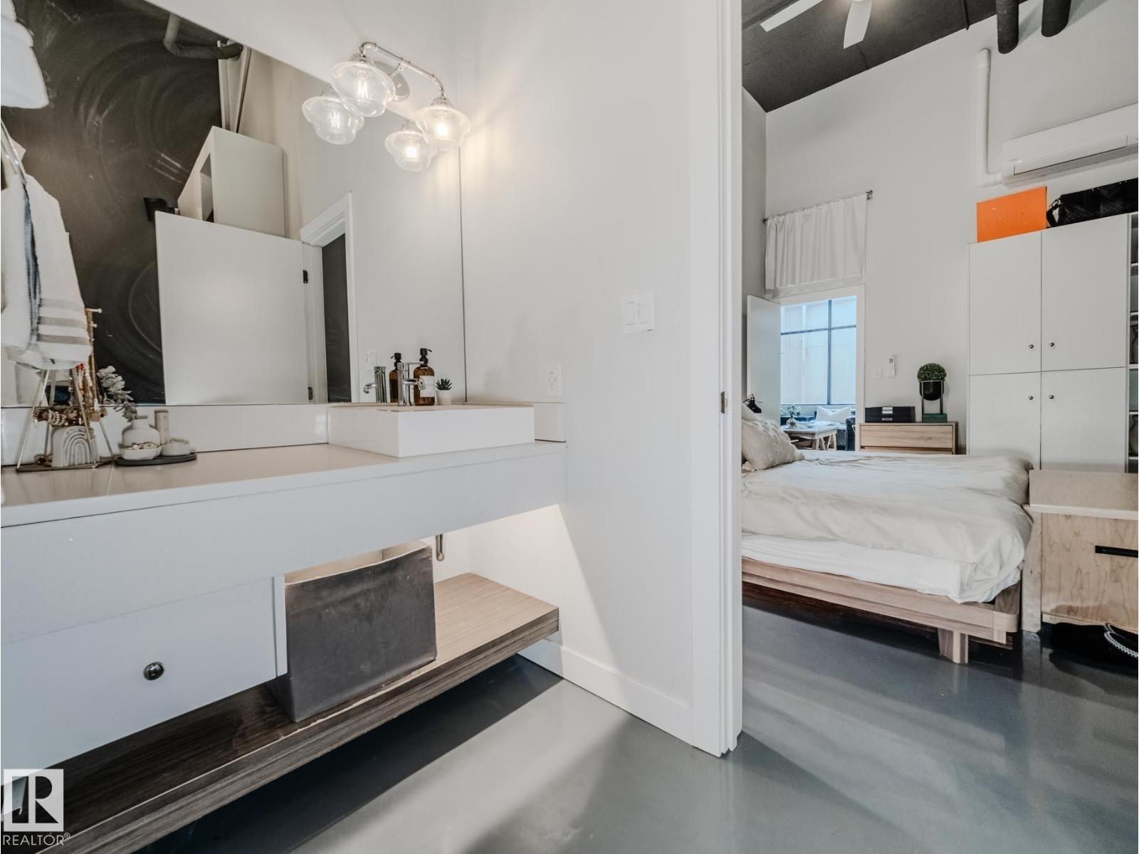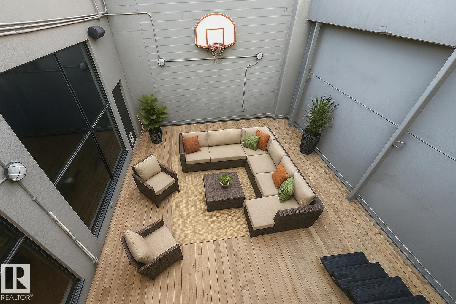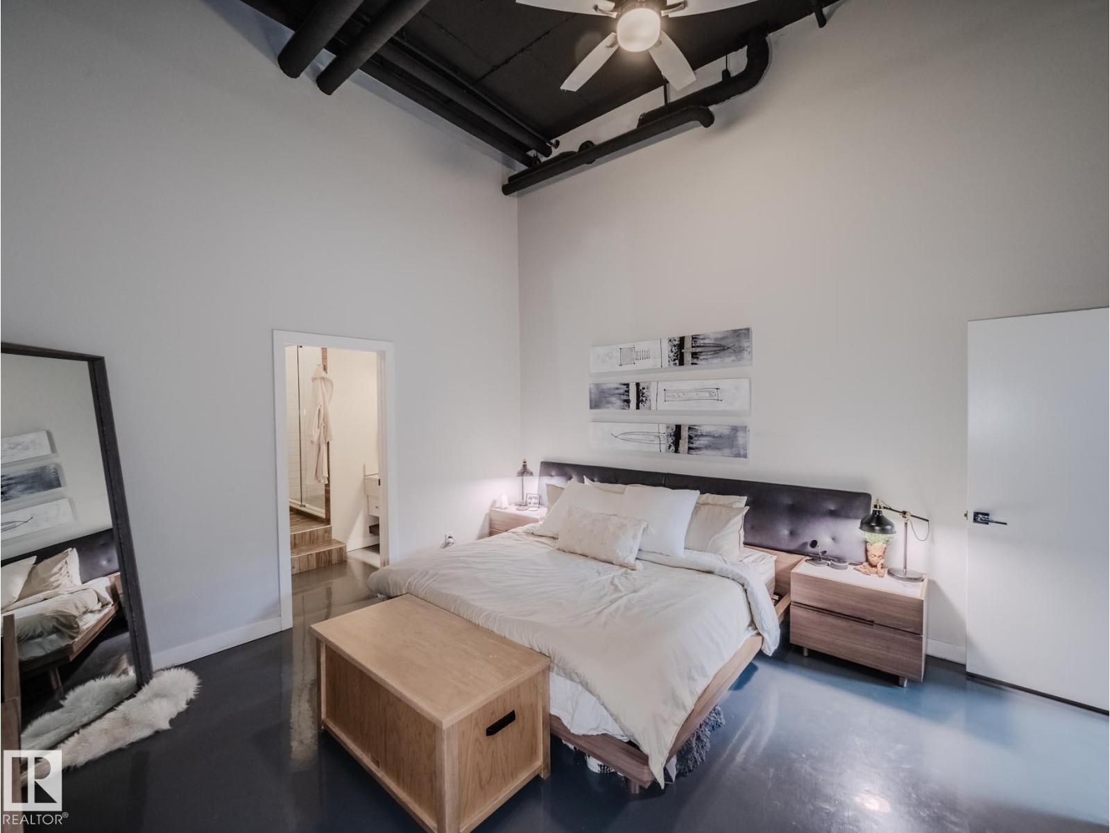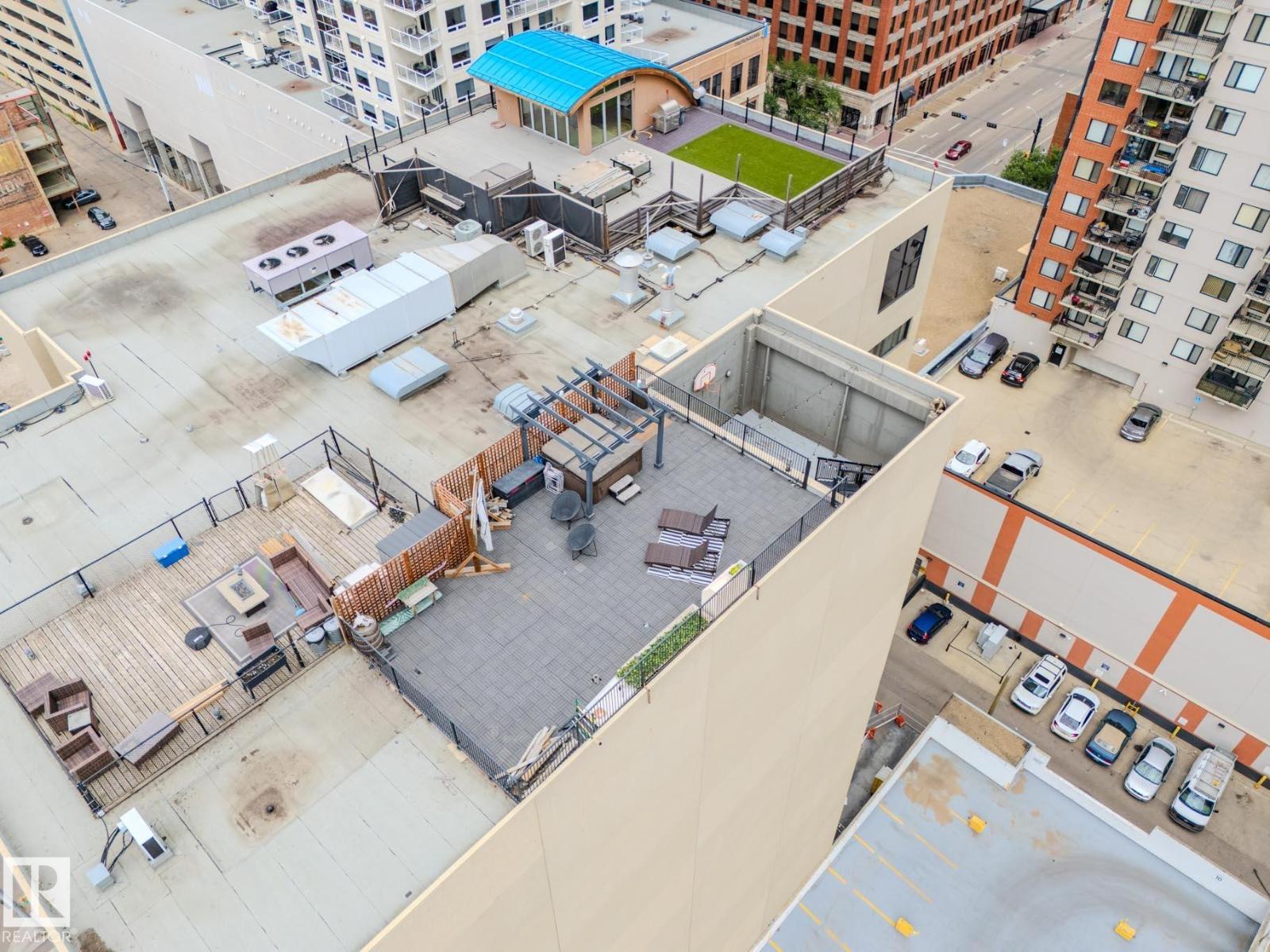 Discover this stunning downtown Edmonton PENTHOUSE LOFT featuring soaring 14-foot ceilings and an impressive open concept design. The spacious kitchen offers ample counter space, abundant storage, DUAL FRIDGES, and STAINLESS STEEL APPLIANCES—perfect for entertaining. The bright living room boasts large windows that flood the space with natural light and connect seamlessly to the open-to-below loft, ideal for an office or den. The large primary bedroom includes custom built-in closets and a SPA-LIKE ENSUITE with walk-in shower. A 4-piece bathroom, generous storage room, and IN-SUITE LAUNDRY add convenience. Enjoy outdoor living with a BRAND NEW 500sqft courtyard patio with a basketball hoop, plus a private 1,000 sqft ROOF TOP PATIO with outdoor TV and HOT TUB. Walk to Rogers Place and the vibrant Ice District. Titled UNDERGROUND PARKING, LARGE TITLED STORAGE LOCKER, SURROUND SOUND, AIR CONDITIONING and a pet-friendly building complete this one-of-a-kind urban retreat. (33802741)