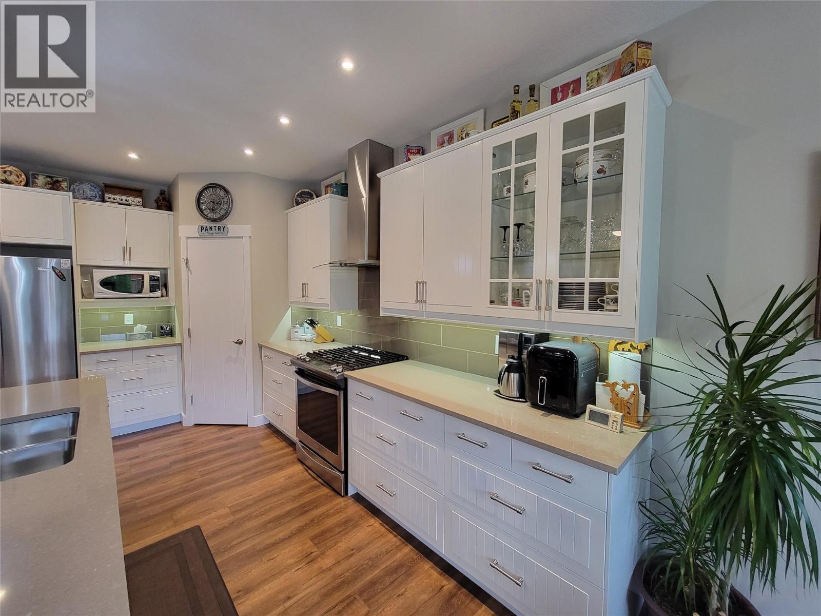 Extensively upgraded energy efficient home, located on the desirable K-View Crescent in Keremeos. Nearly $50,000 in upgrades in the past two years: solar panels, gas furnace, heat pump, air exchanger, Rinnai hot water on demand, water softener & primary bedroom flooring. 3 bed 2 bath on the main floor, with a loft above boasting incredible mountain views. This extra space could be used as a den, office or storage area. Beautiful kitchen features quartz countertops, gas range & corner pantry, open to the living room with gas fireplace. The covered back patio and fenced yard has been meticulously maintained. Composite decking and 15x15 ft awning extends to allow for even more shade on those hot summer days. Attached double garage has 2 individual doors, handy for the car enthusiast and long enough on the right side to park your pickup truck. Very low monthly energy costs - inquire for more details. Call your agent today for a viewing! Measurements are approximate. (39705506)